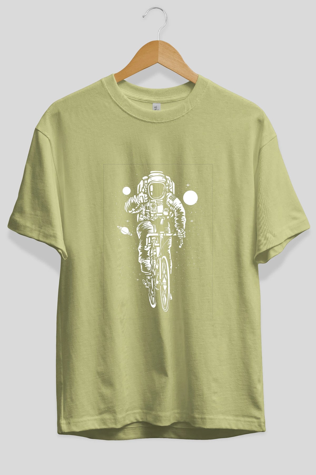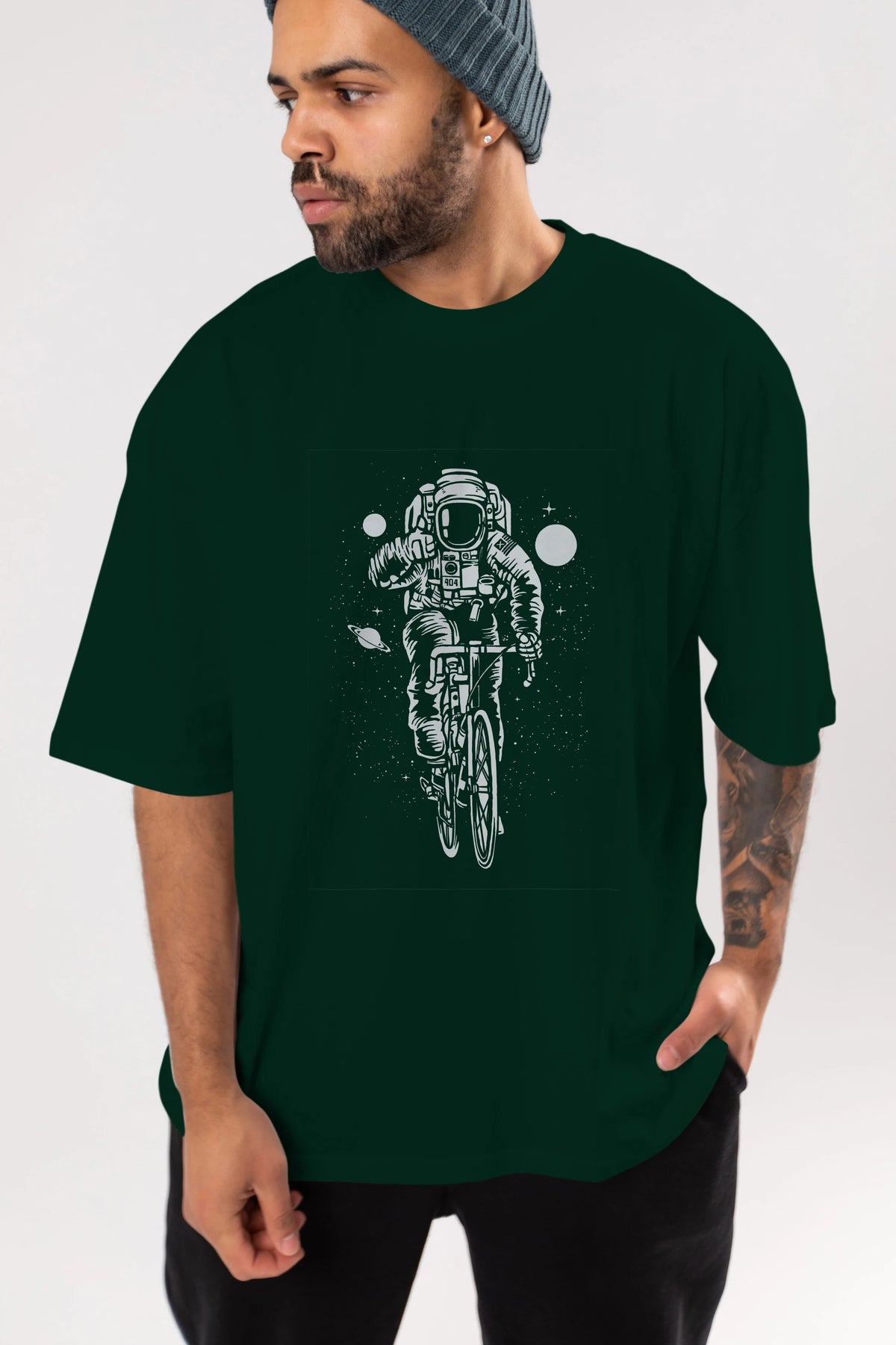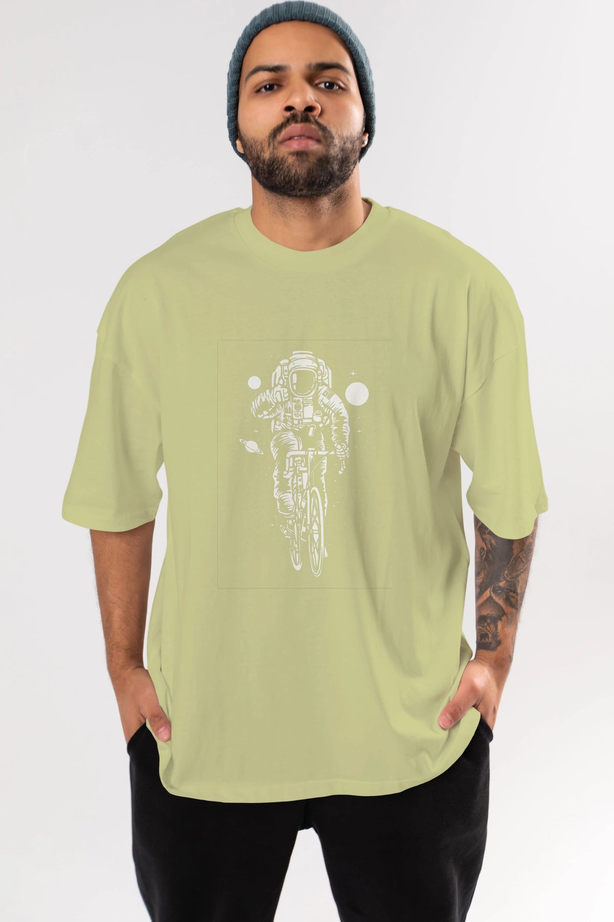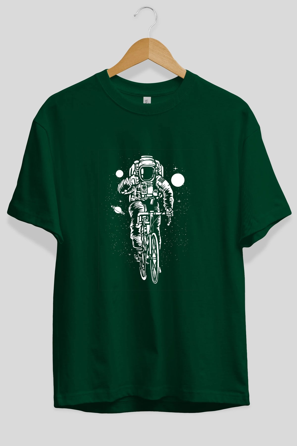 Astronaut Bicycle Ön Baskılı Oversize t-shirt Erkek Kadın Unisex %100 Pamuk tişort