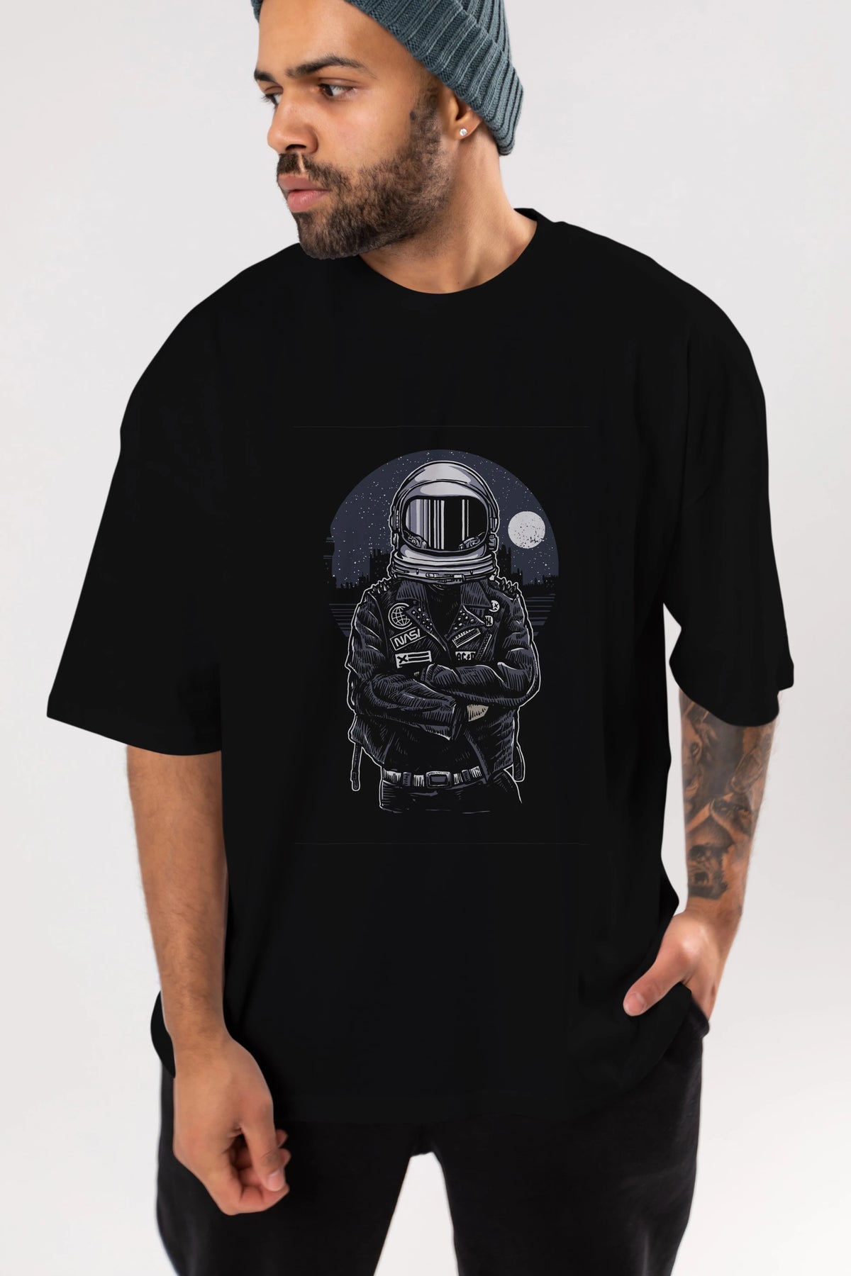 Astronaut Rebel Ön Baskılı Oversize t-shirt Erkek Kadın Unisex %100 Pamuk tişort