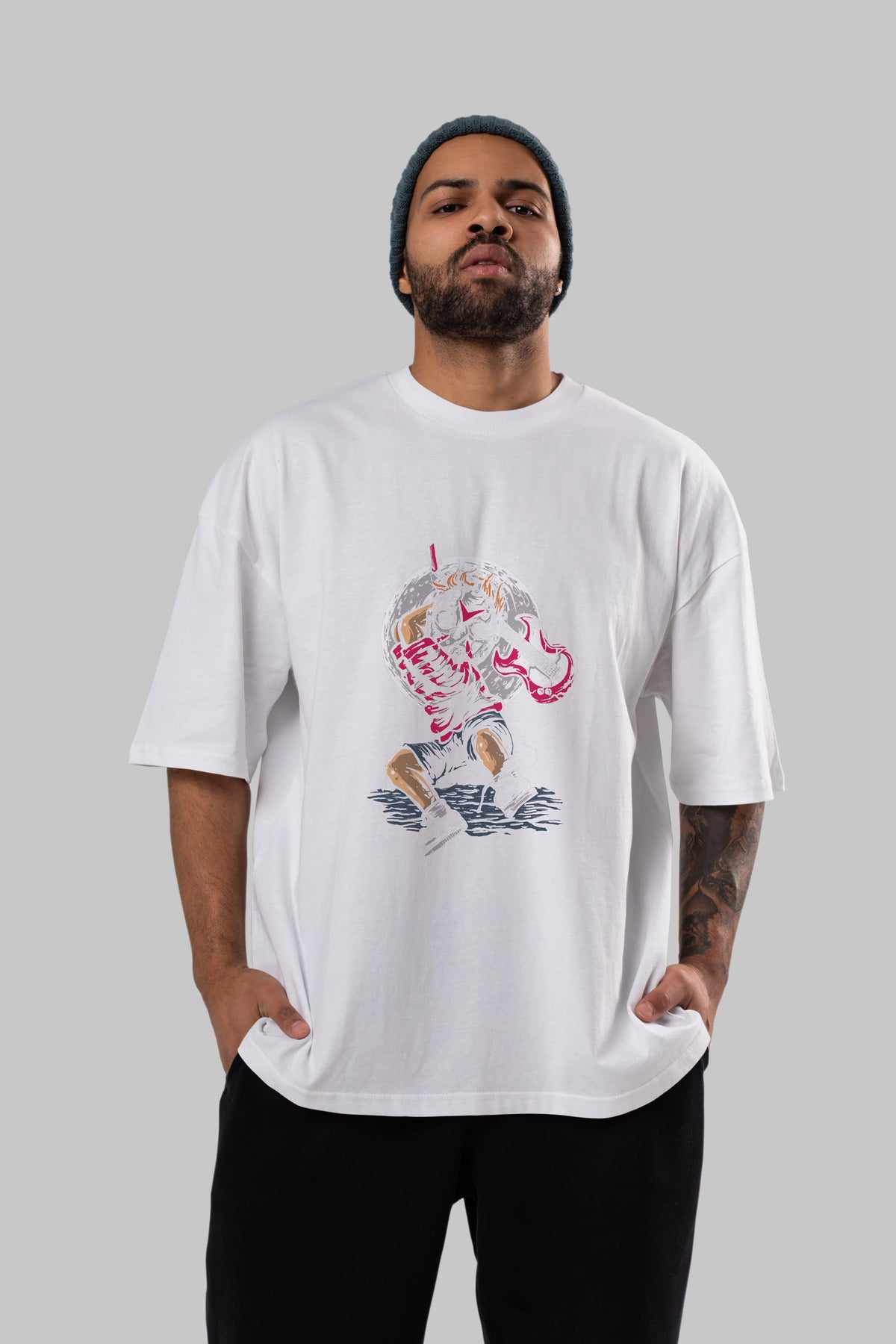 Unisex Baskılı Oversize t-shirt, gardırobunuza mükemmel bir ektir. Yumuşak ve hafif kumaştan üretilen bu şık tişort, kısa kollu ve Oversize uyumu ile tamamlanan klasik bir tasarımına sahiptir. Canlı baskılı grafikler, kalabalığın arasından şık bir şekilde sıyrılmanızı sağlayacaktır. Günlük giyim veya özel günler için mükemmel olan bu çok yönlü tişört, kısa sürede favorilerinizden biri haline gelecektir.