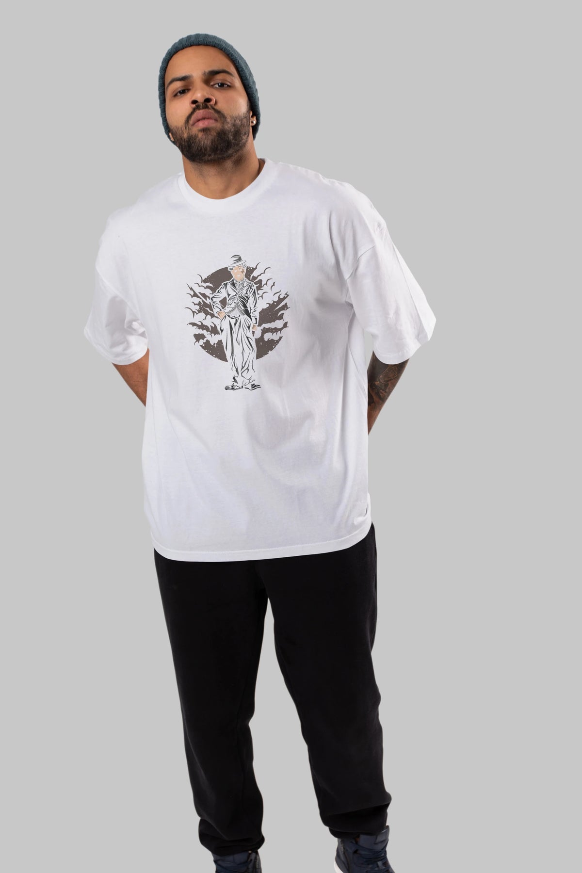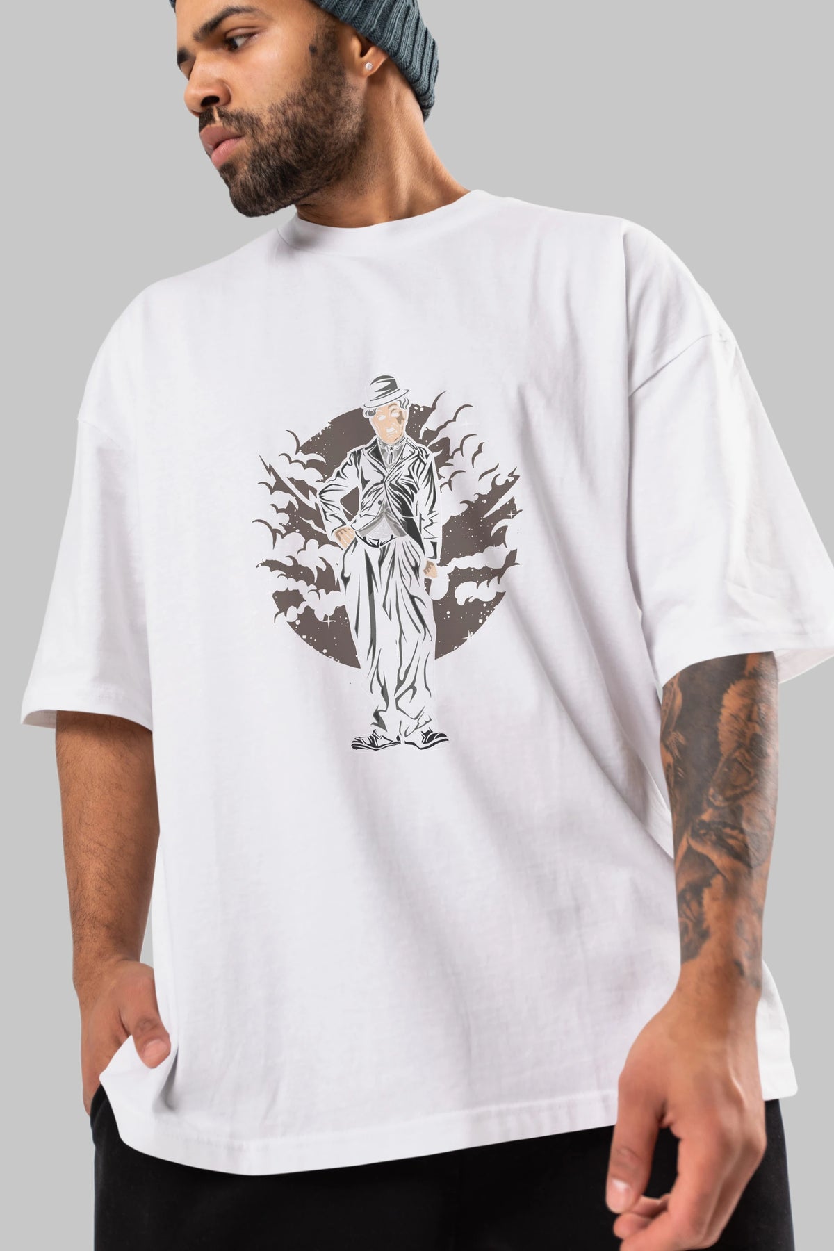 CHAPLIN Ön Baskılı Oversize t-shirt Erkek Kadın Unisex %100 Pamuk tişort