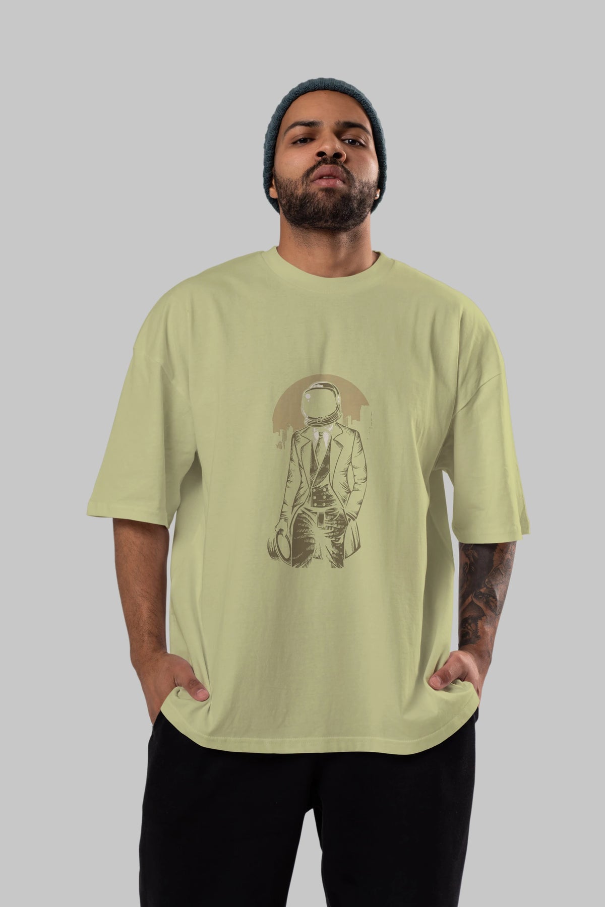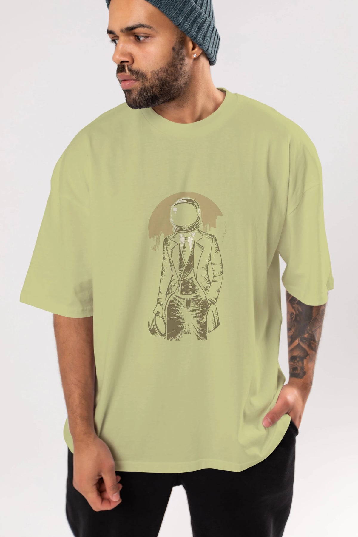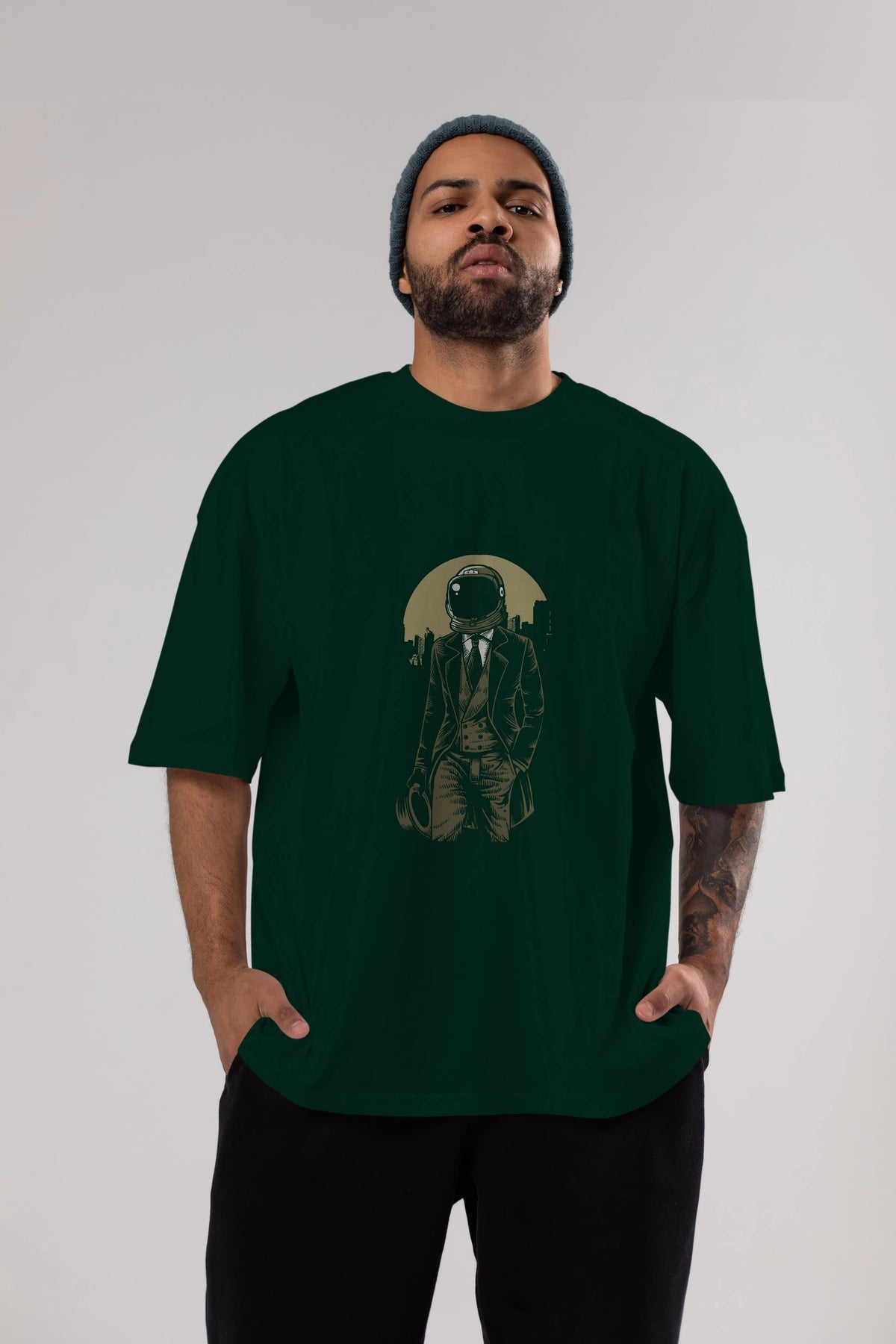 Classic Astronaut Ön Baskılı Oversize t-shirt Erkek Kadın Unisex %100 Pamuk tişort