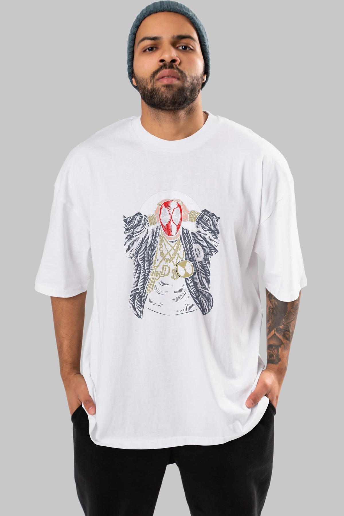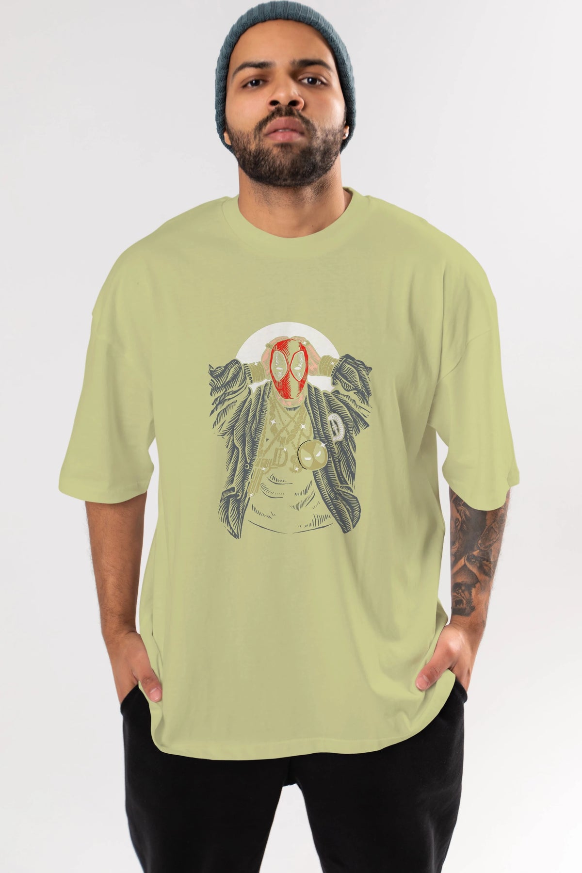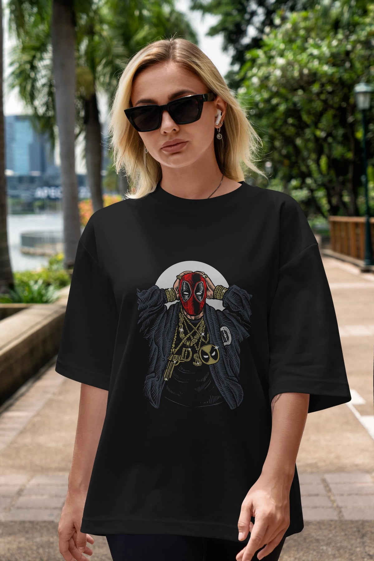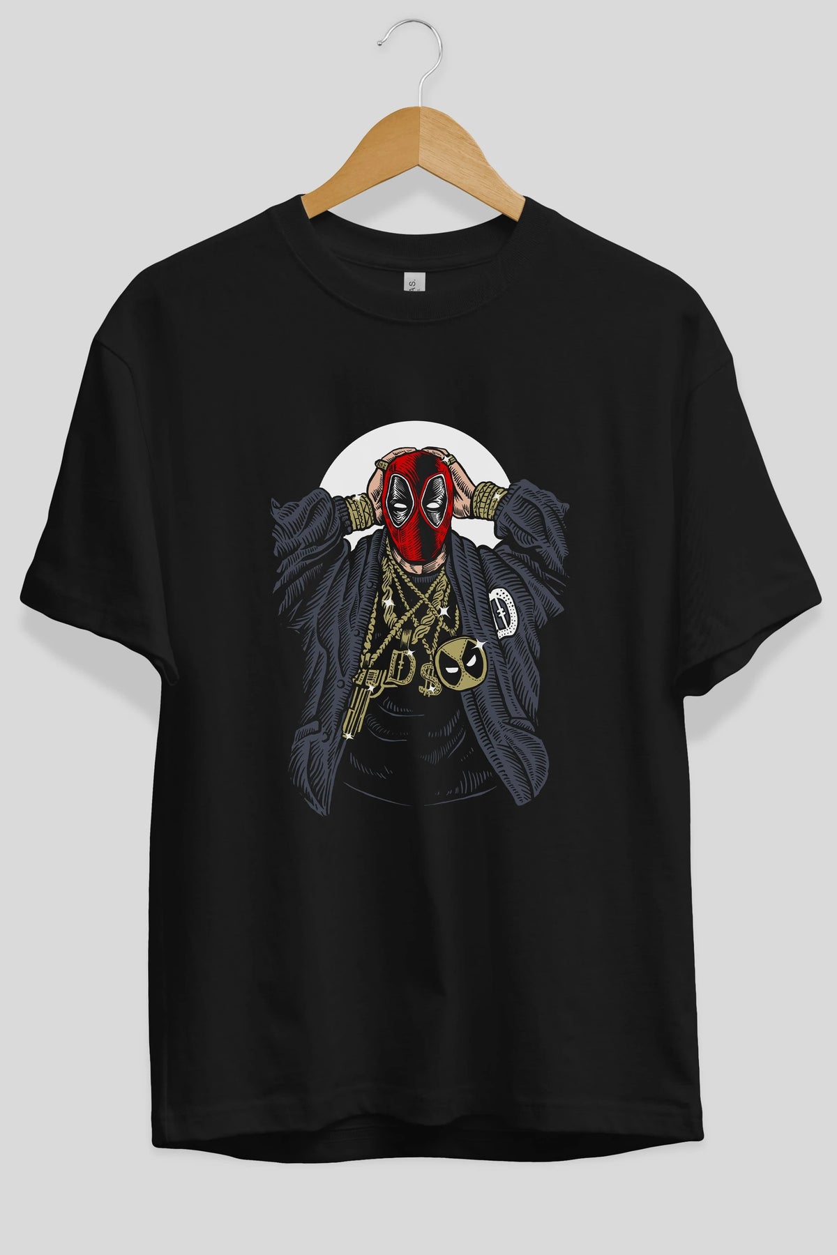 Deadpool Gangsta Ön Baskılı Oversize t-shirt Erkek Kadın Unisex %100 Pamuk tişort
