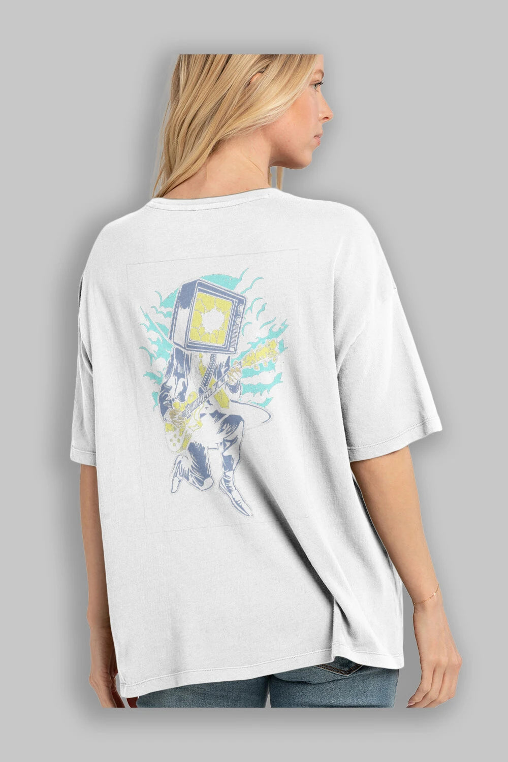 Hem erkekler hem de kadınlar için uygun, taze, modern bir baskıya sahip baskılı oversize t-shirt.