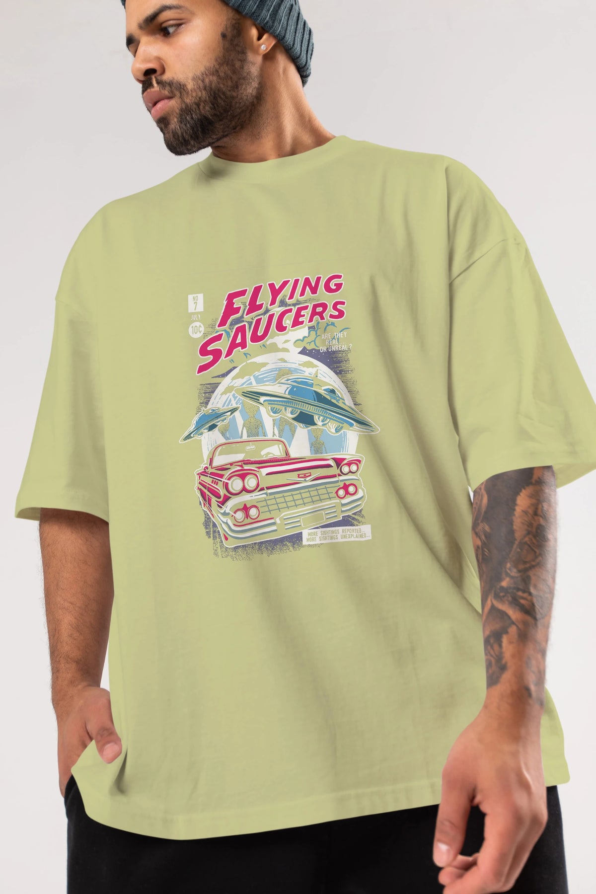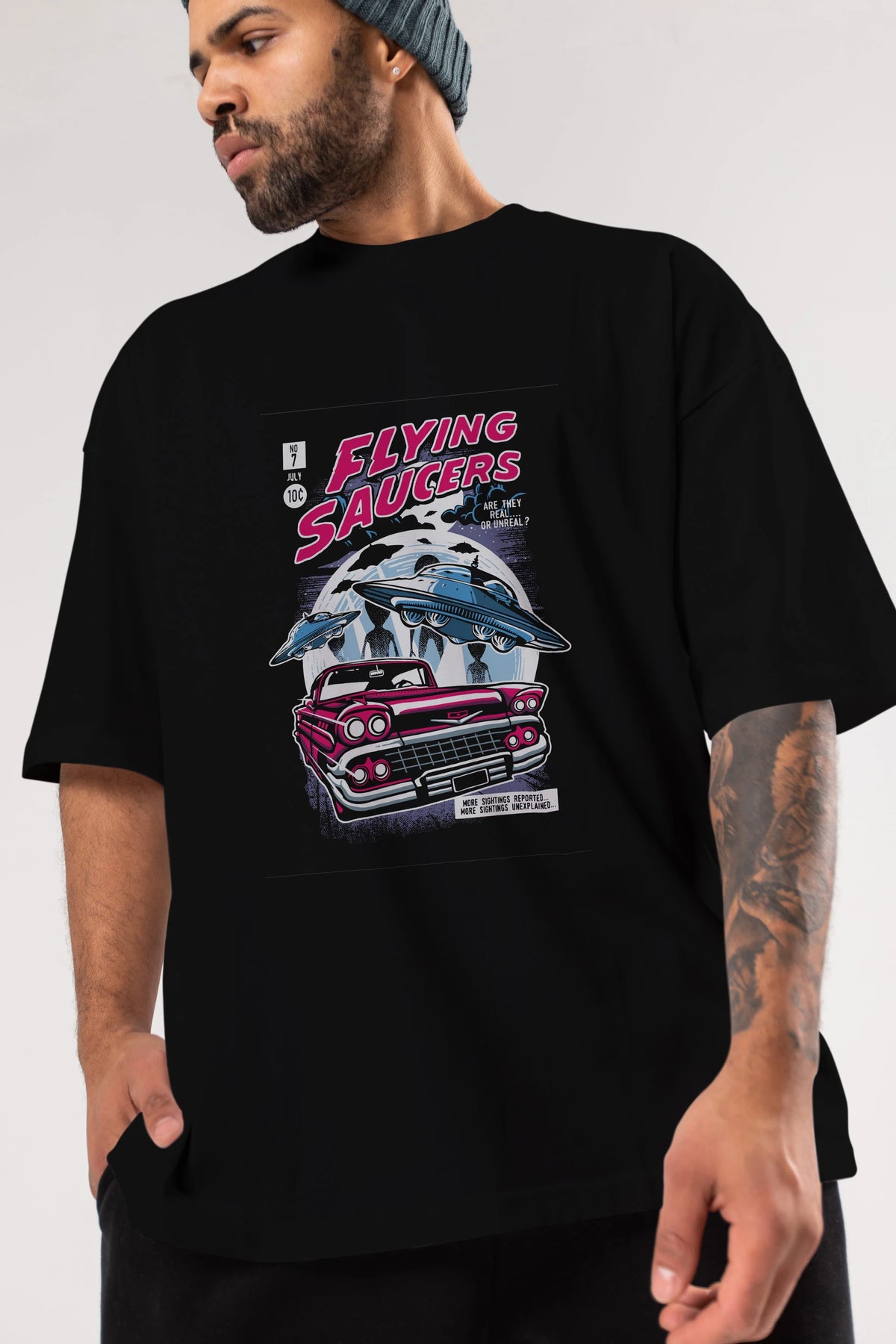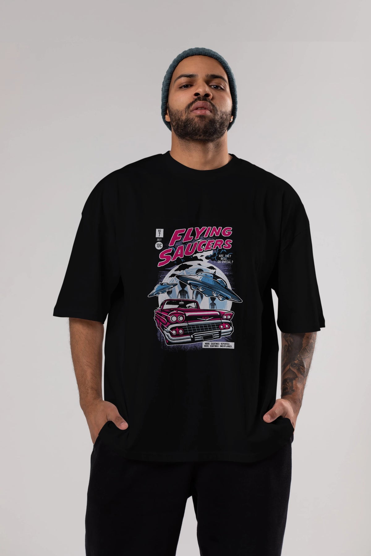 Flying Saucers Ön Baskılı Oversize t-shirt Erkek Kadın Unisex %100 Pamuk tişort