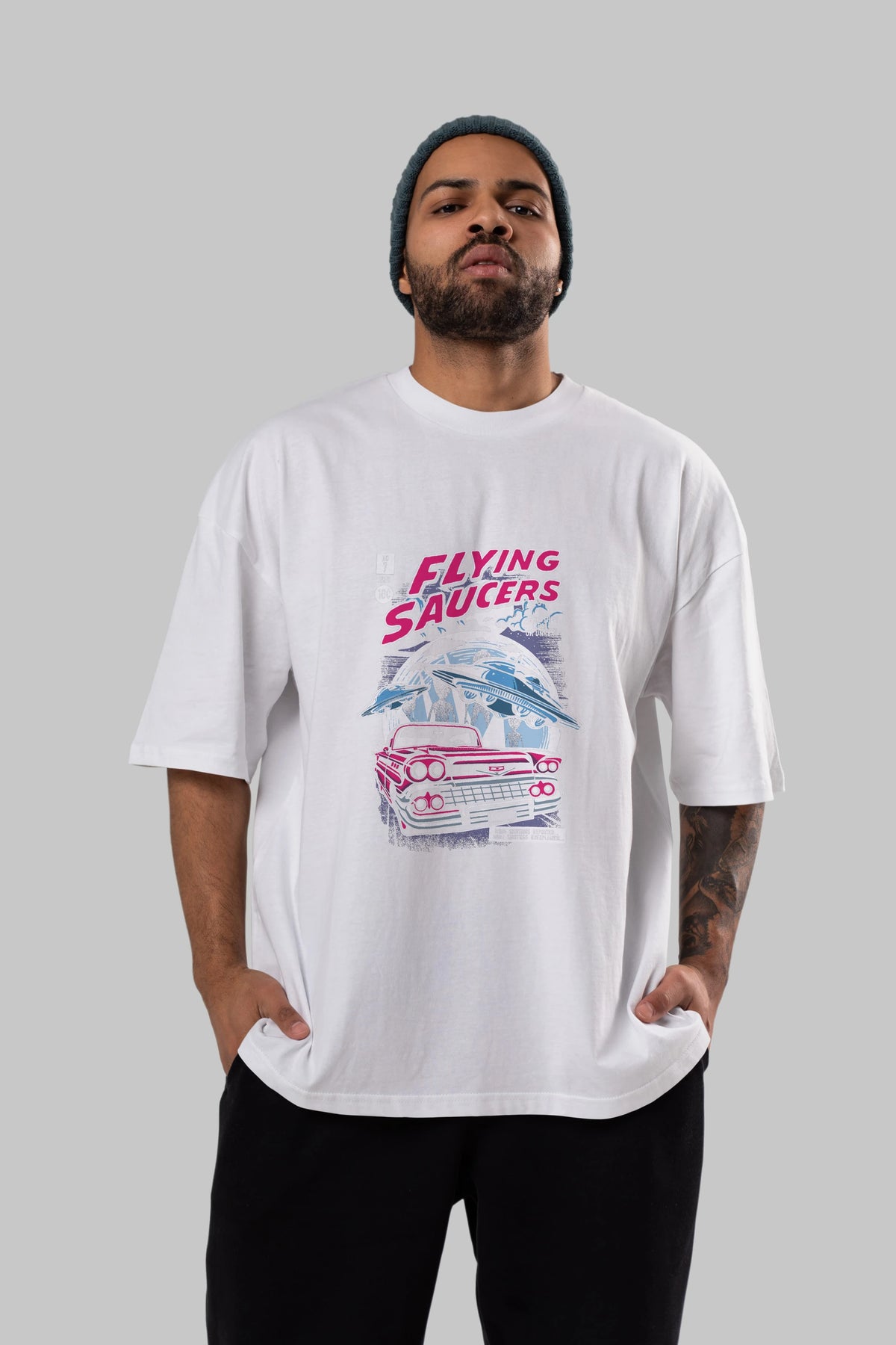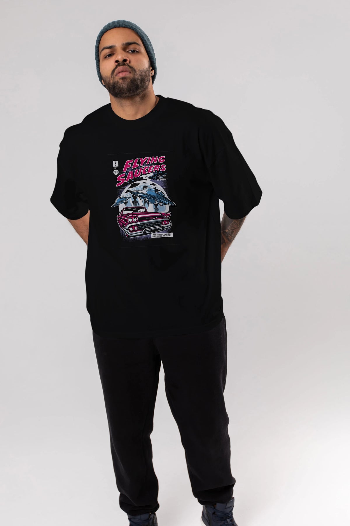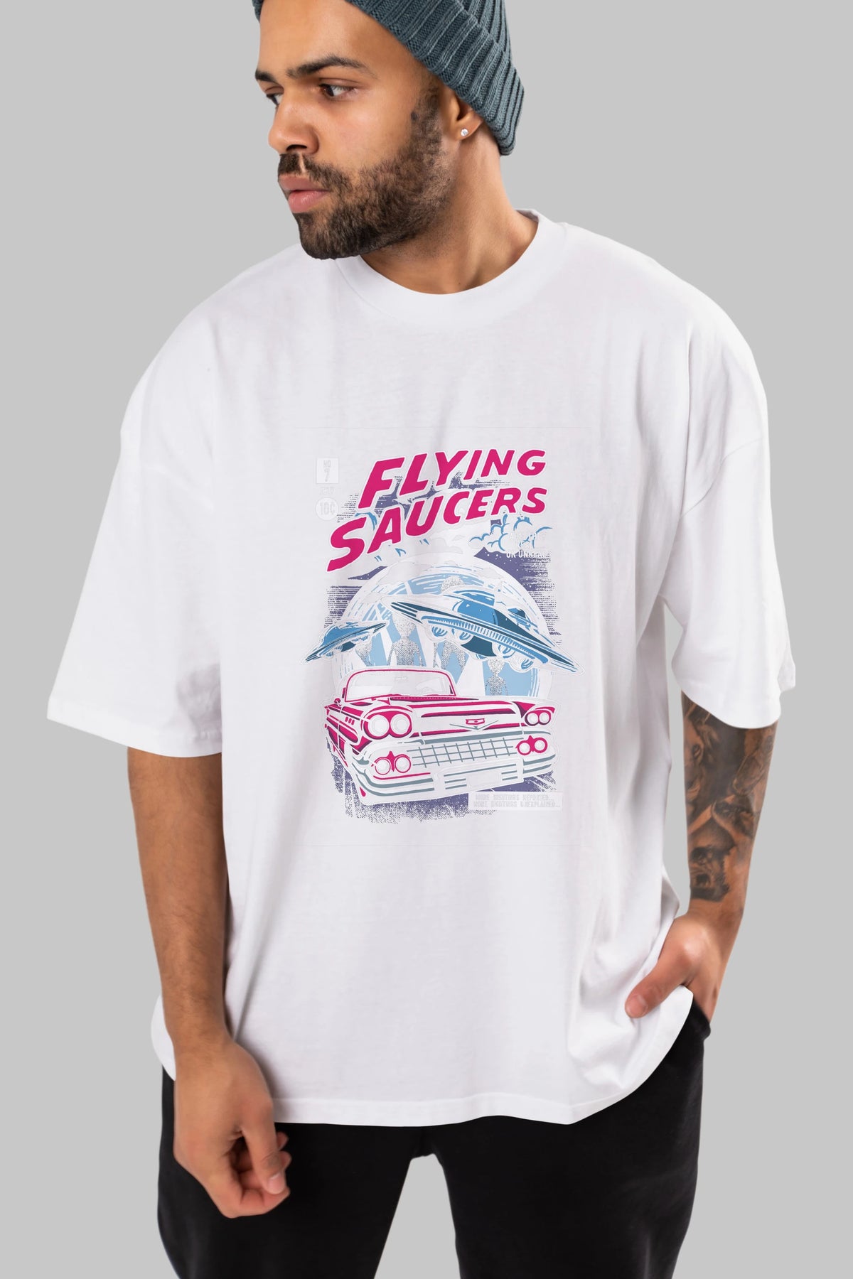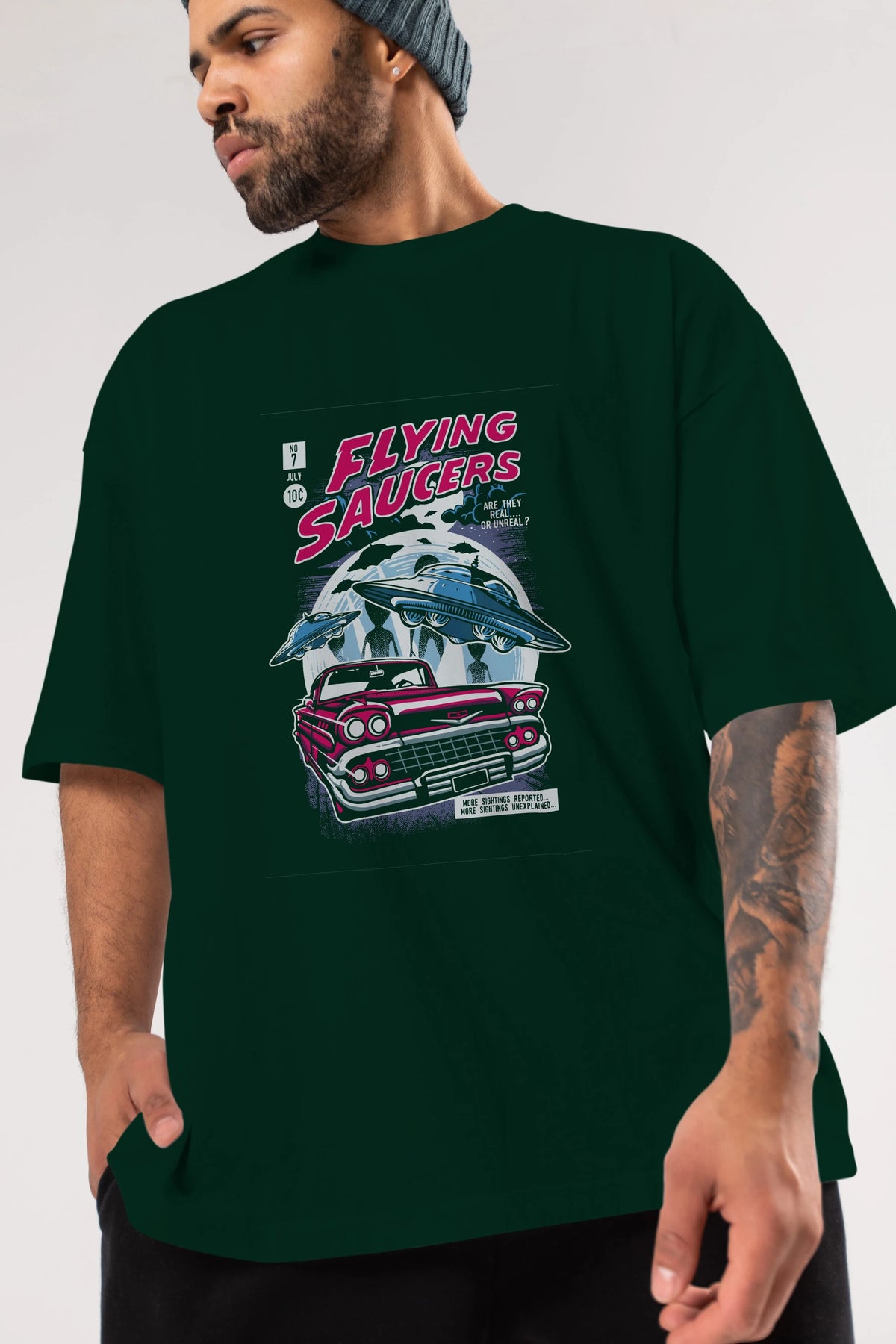 Flying Saucers Ön Baskılı Oversize t-shirt Erkek Kadın Unisex %100 Pamuk tişort