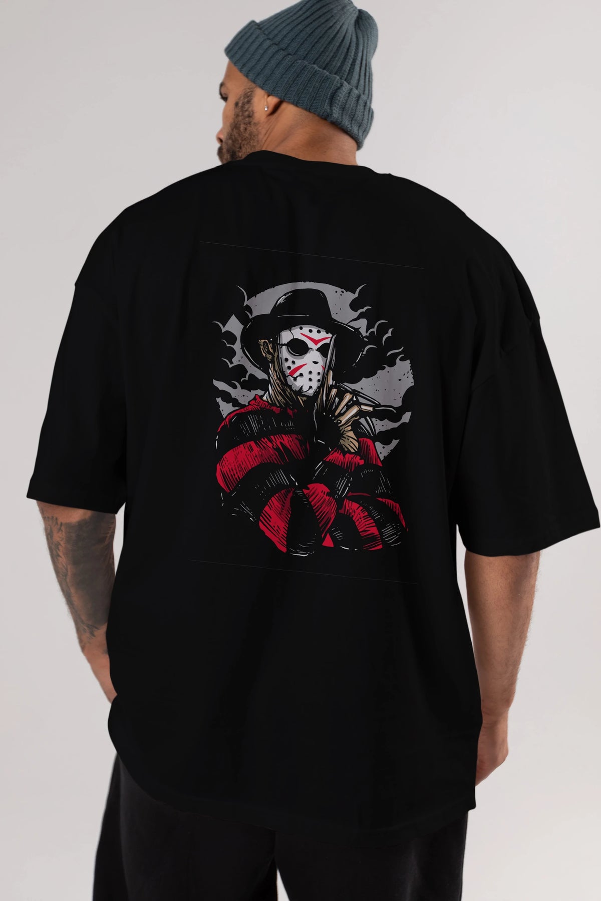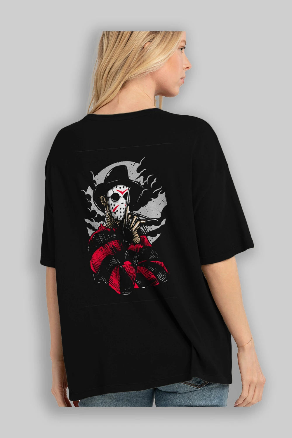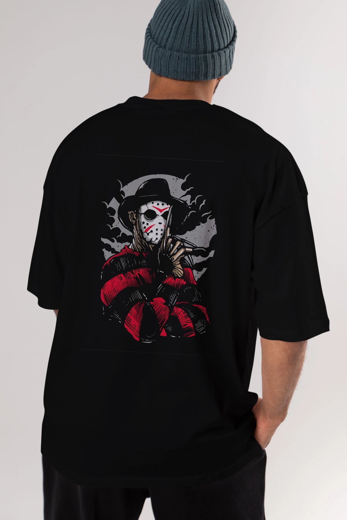Freddy VS Jason (2) Arka Baskılı Oversize t-shirt Erkek Kadın Unisex %100 Pamuk