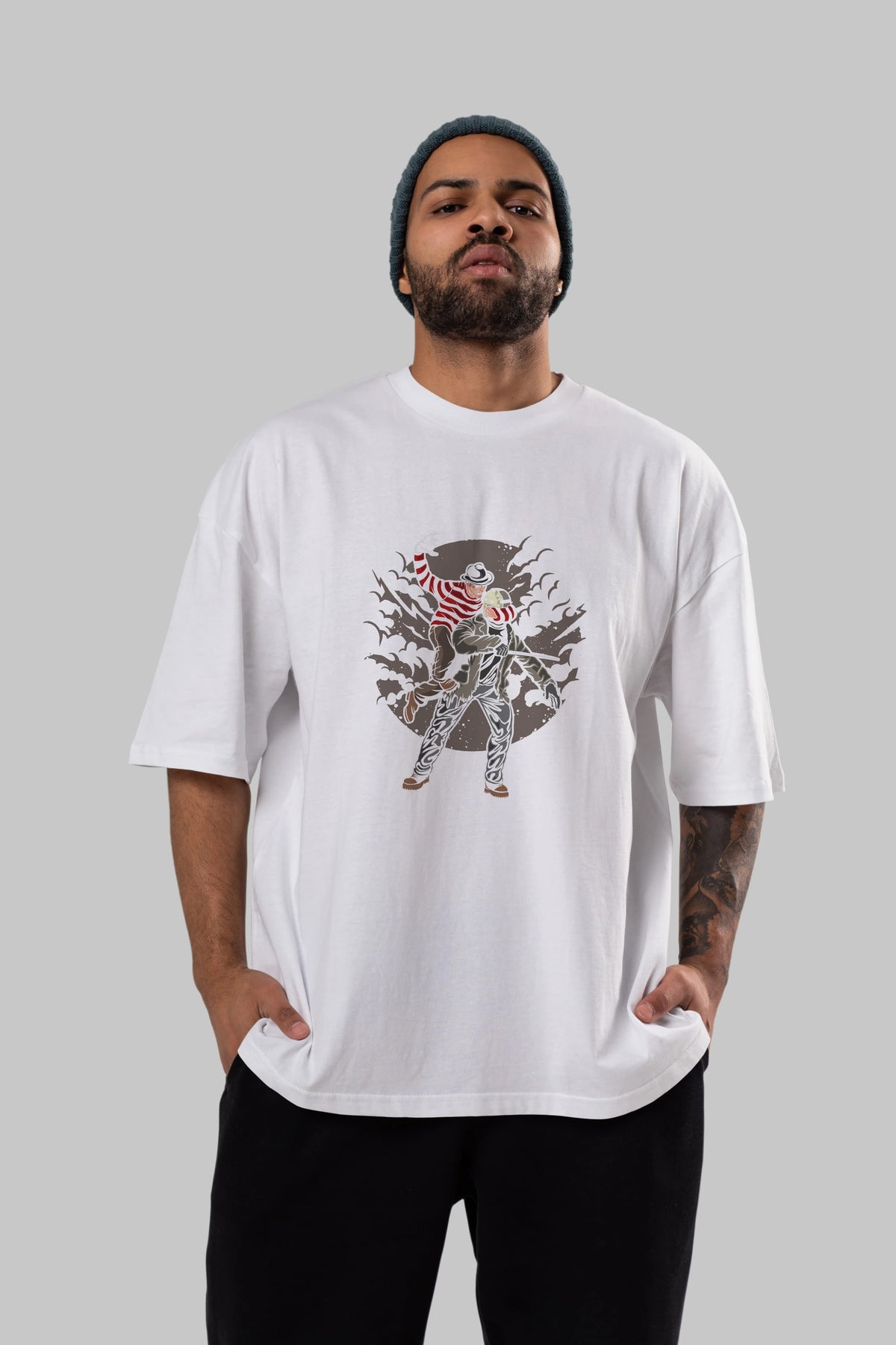 Unisex Baskılı Oversize t-shirt, gardırobunuza mükemmel bir ektir. Yumuşak ve hafif kumaştan üretilen bu şık tişort, kısa kollu ve Oversize uyumu ile tamamlanan klasik bir tasarımına sahiptir. Canlı baskılı grafikler, kalabalığın arasından şık bir şekilde sıyrılmanızı sağlayacaktır. Günlük giyim veya özel günler için mükemmel olan bu çok yönlü tişört, kısa sürede favorilerinizden biri haline gelecektir.
