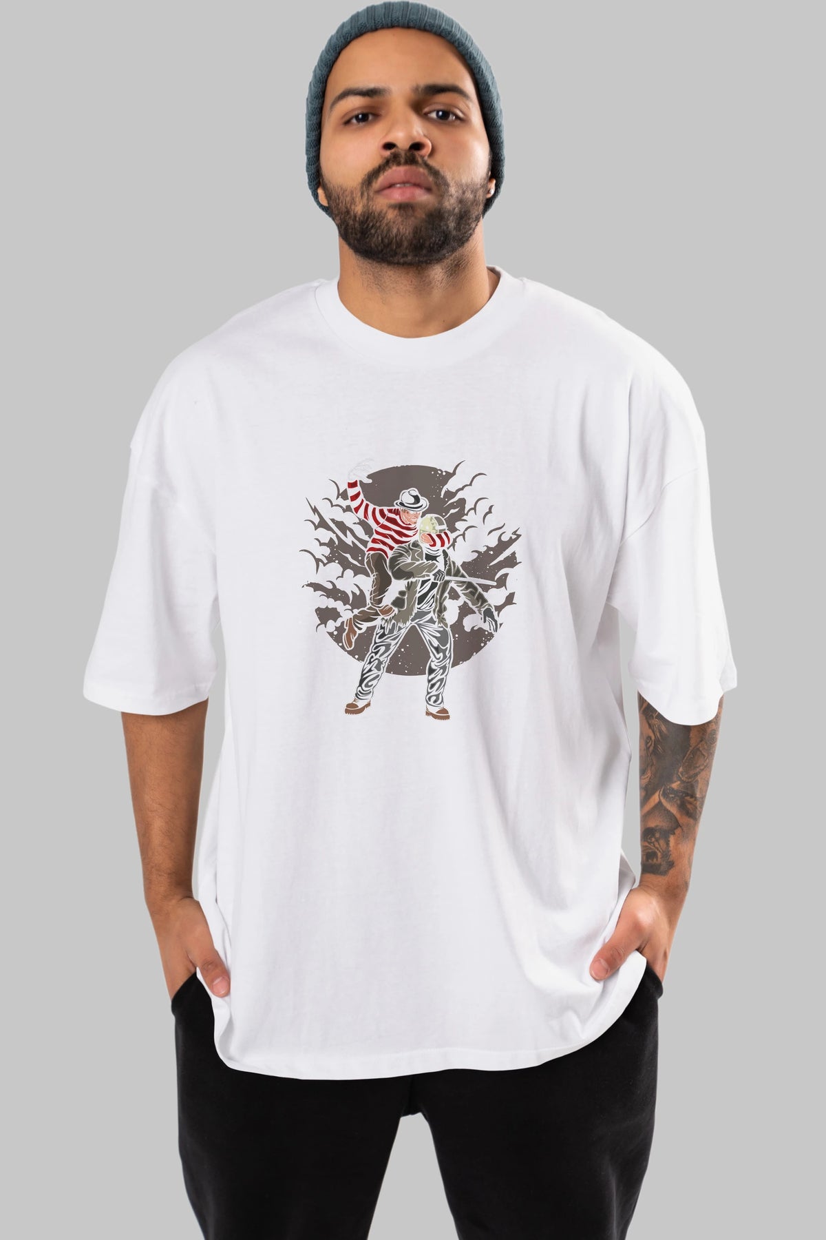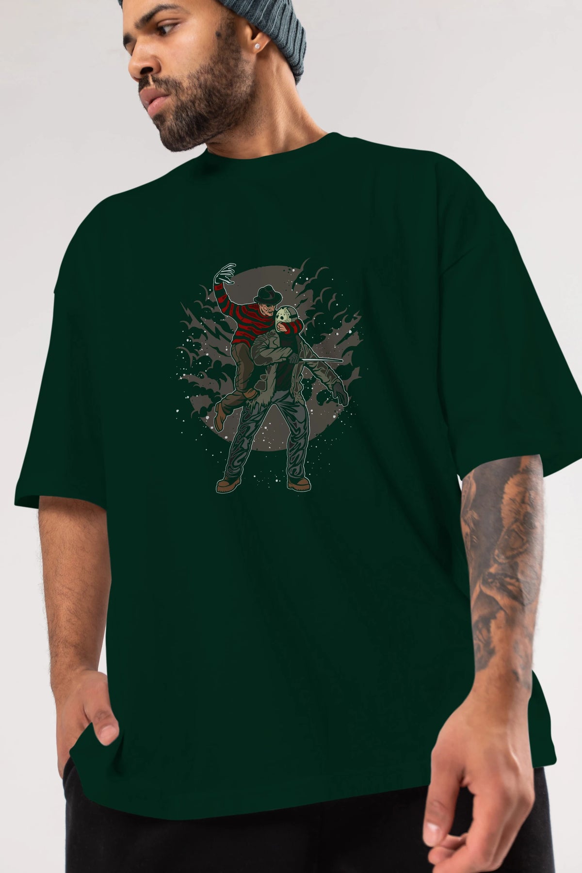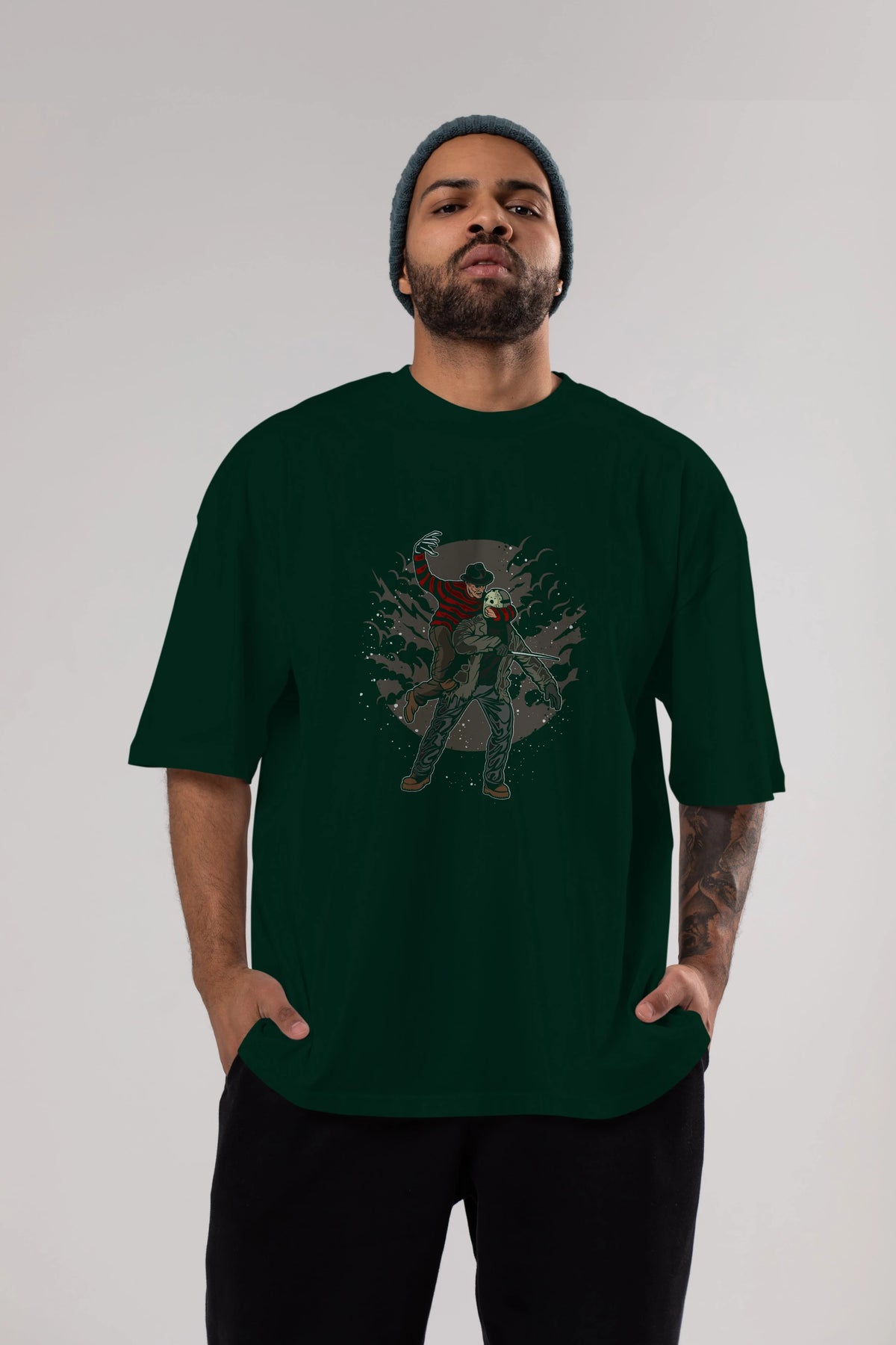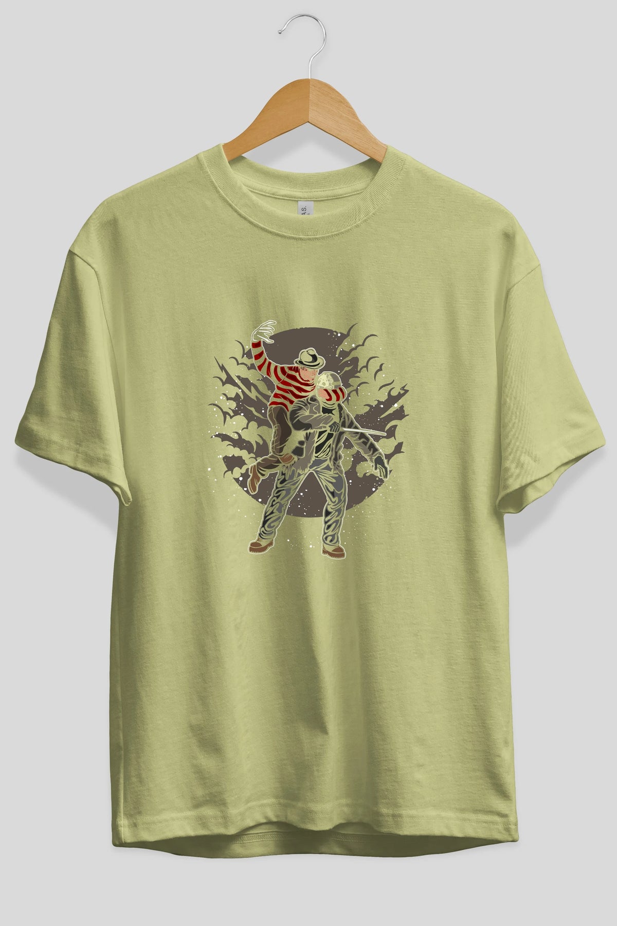 FREDDY VS JASON Ön Baskılı Oversize t-shirt Erkek Kadın Unisex %100 Pamuk tişort