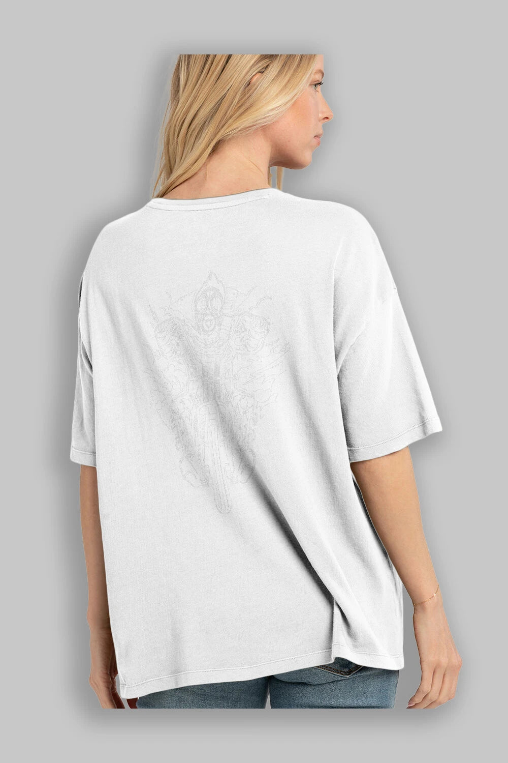 Hem erkekler hem de kadınlar için uygun, taze, modern bir baskıya sahip baskılı oversize t-shirt.