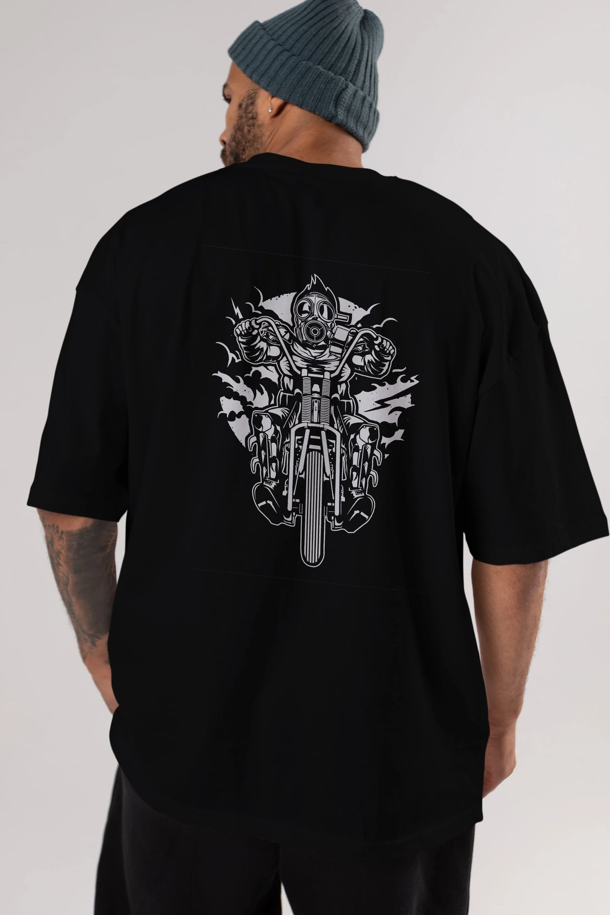 Gasmask Chopper Arka Baskılı Oversize t-shirt Erkek Kadın Unisex %100 Pamuk