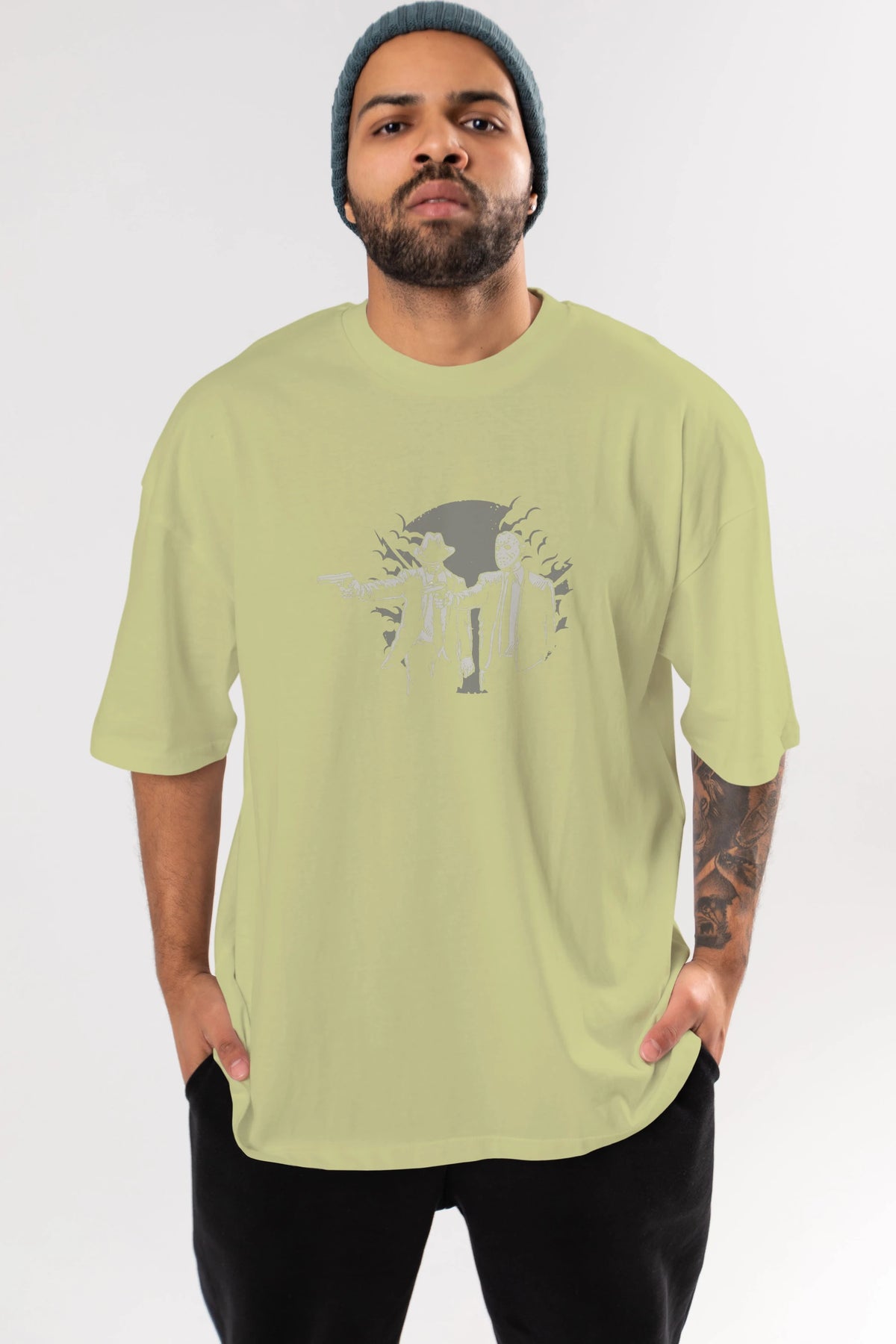 Unisex Baskılı Oversize t-shirt, gardırobunuza mükemmel bir ektir. Yumuşak ve hafif kumaştan üretilen bu şık tişort, kısa kollu ve Oversize uyumu ile tamamlanan klasik bir tasarımına sahiptir. Canlı baskılı grafikler, kalabalığın arasından şık bir şekilde sıyrılmanızı sağlayacaktır. Günlük giyim veya özel günler için mükemmel olan bu çok yönlü tişört, kısa sürede favorilerinizden biri haline gelecektir.
