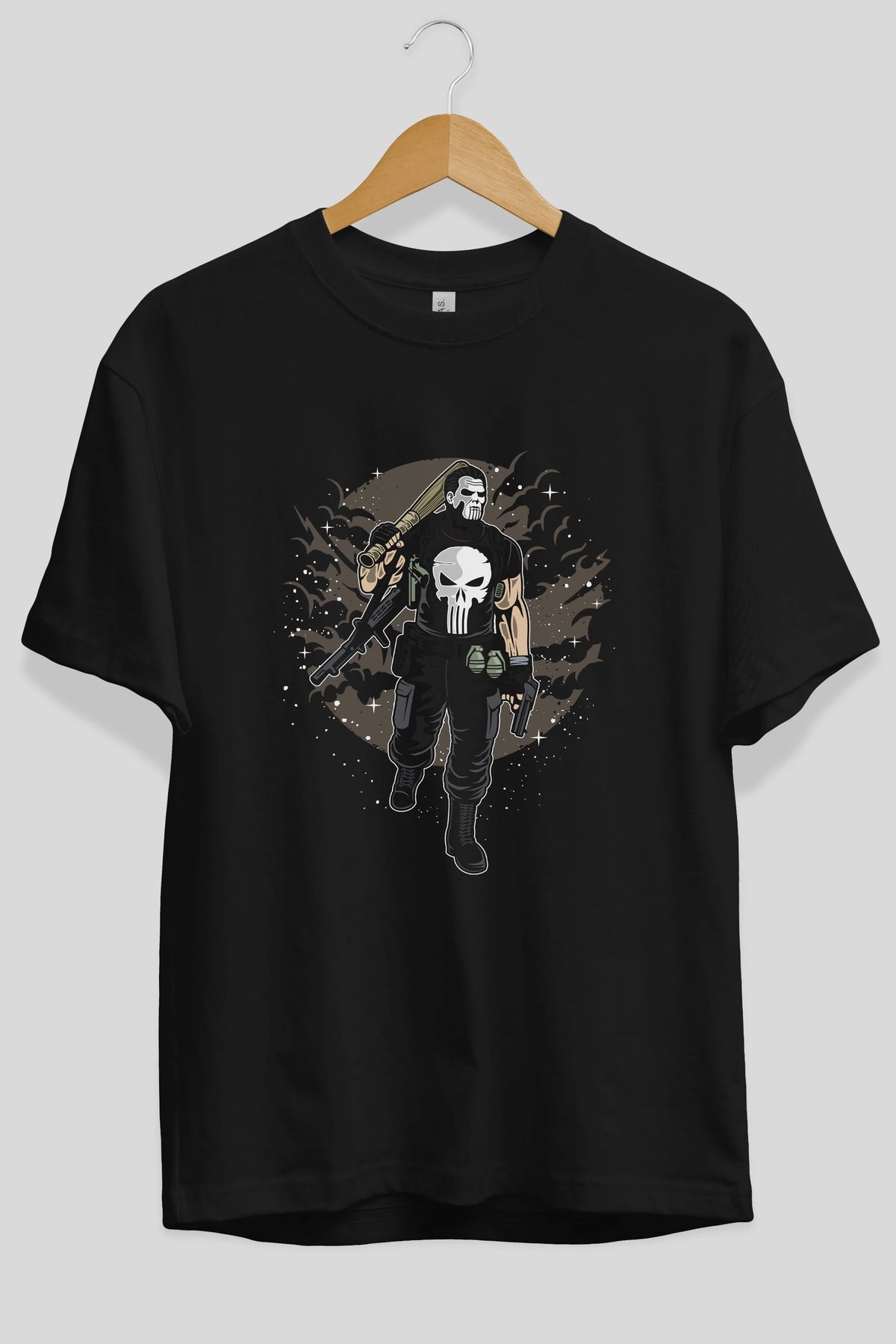 Punisher Ön Baskılı Oversize t-shirt Erkek Kadın Unisex %100 Pamuk tişort