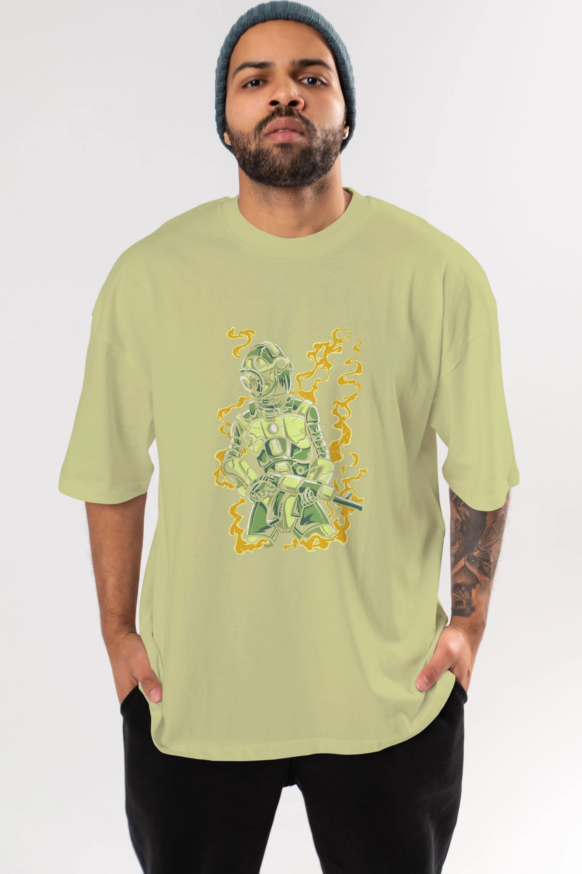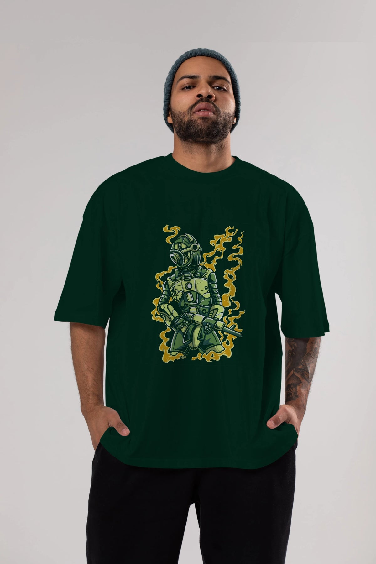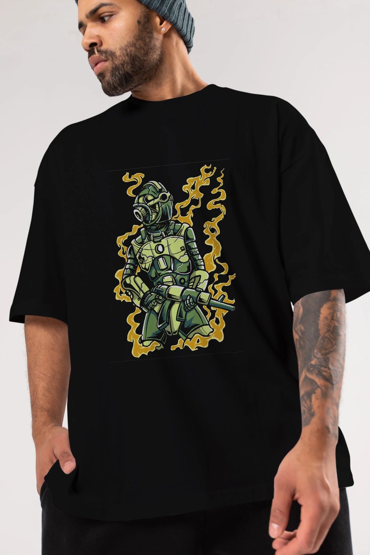 Robot Soldier Ön Baskılı Oversize t-shirt Erkek Kadın Unisex %100 Pamuk tişort