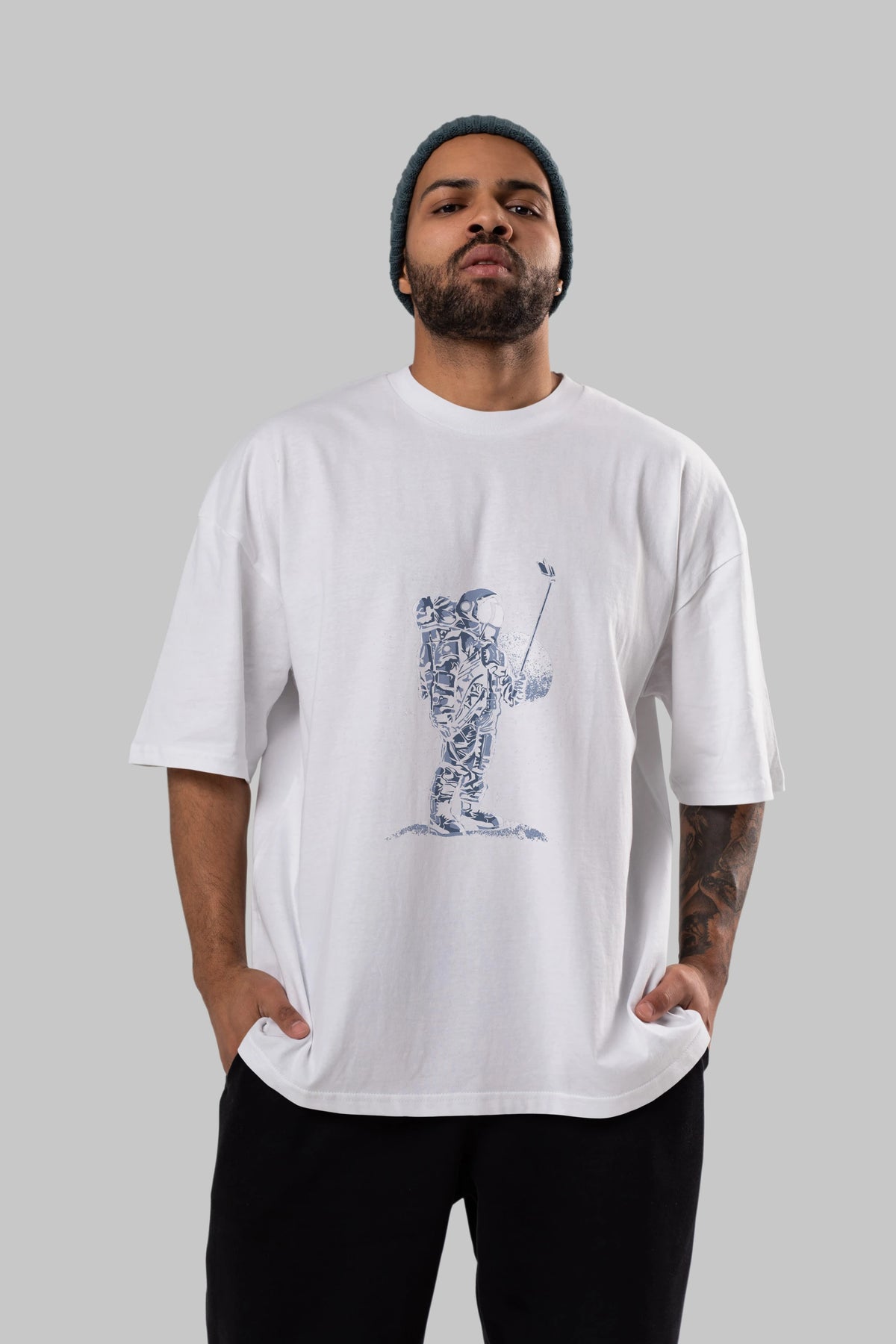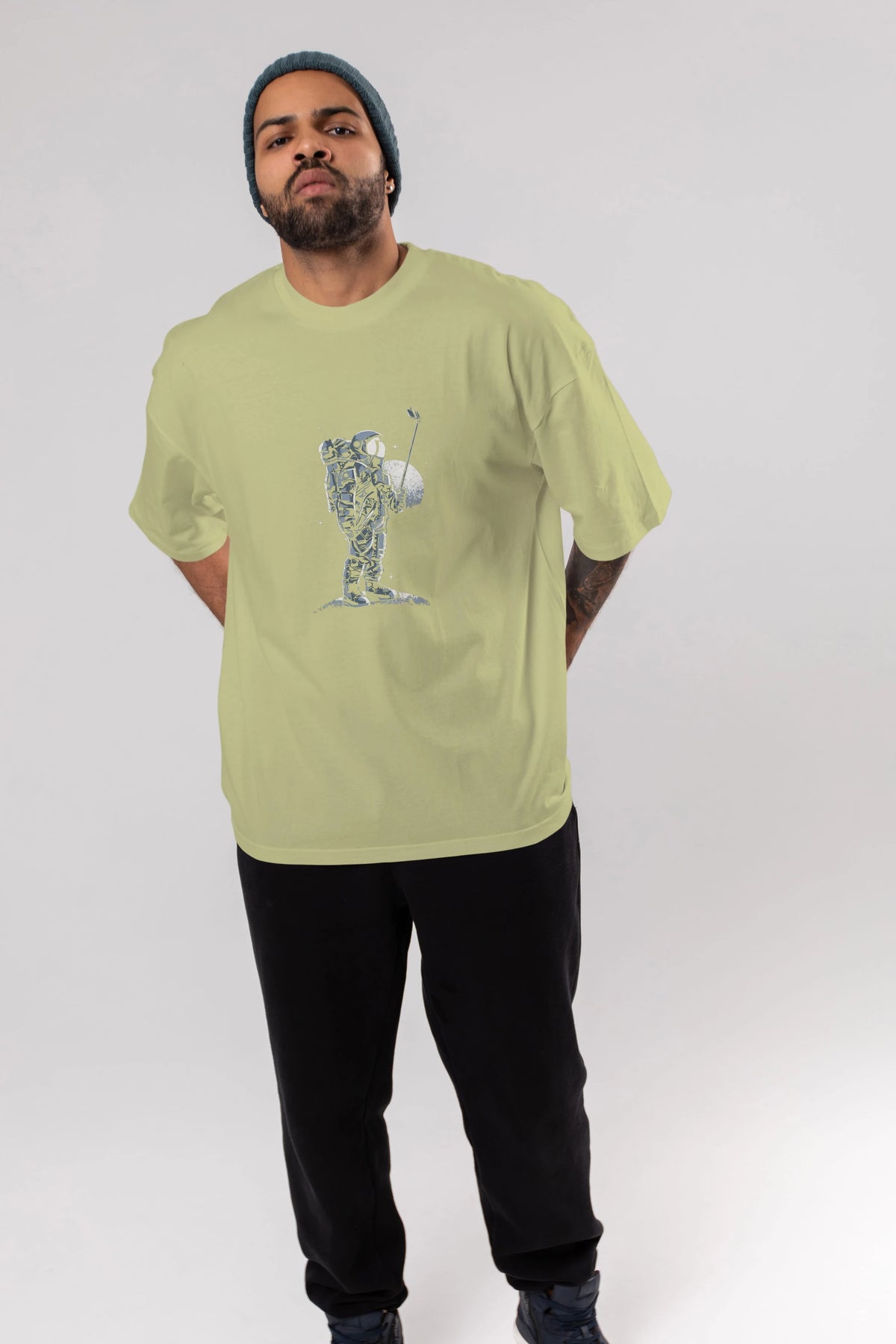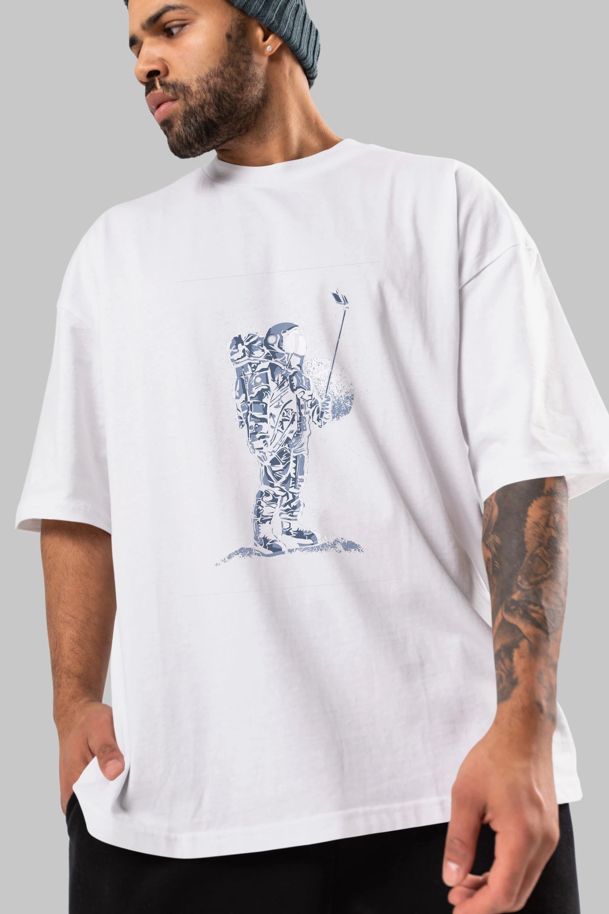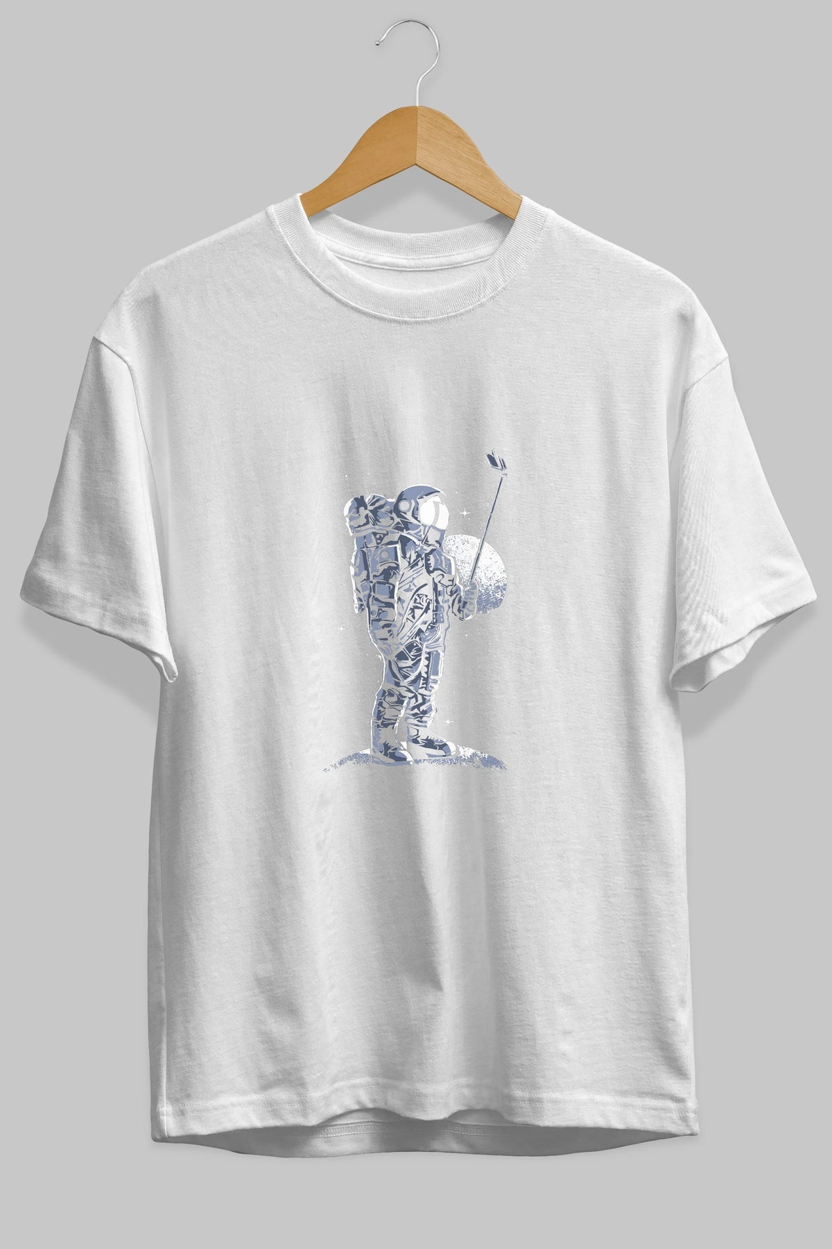 Selfie Astronaut Ön Baskılı Oversize t-shirt Erkek Kadın Unisex %100 Pamuk tişort