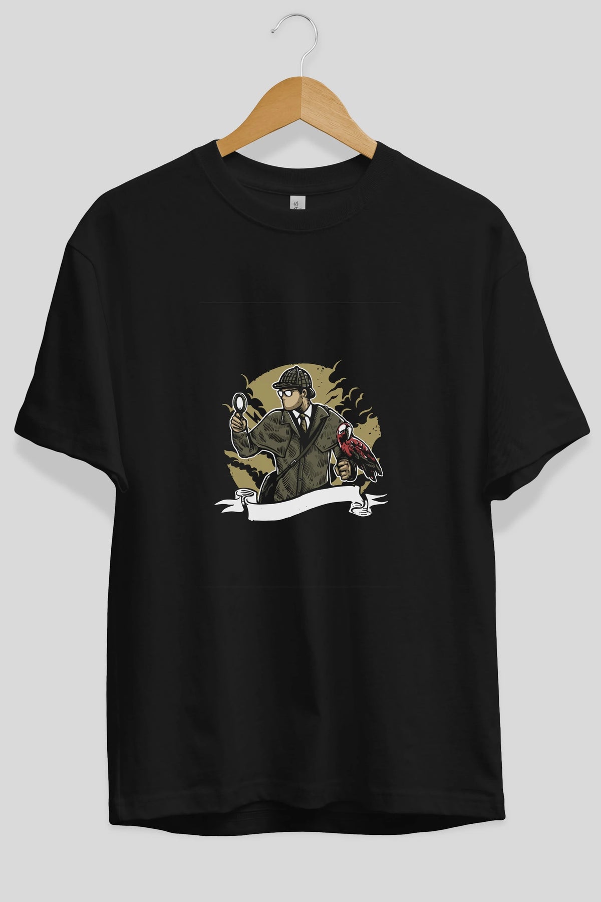 Sherlock Holmes Ön Baskılı Oversize t-shirt Erkek Kadın Unisex %100 Pamuk tişort
