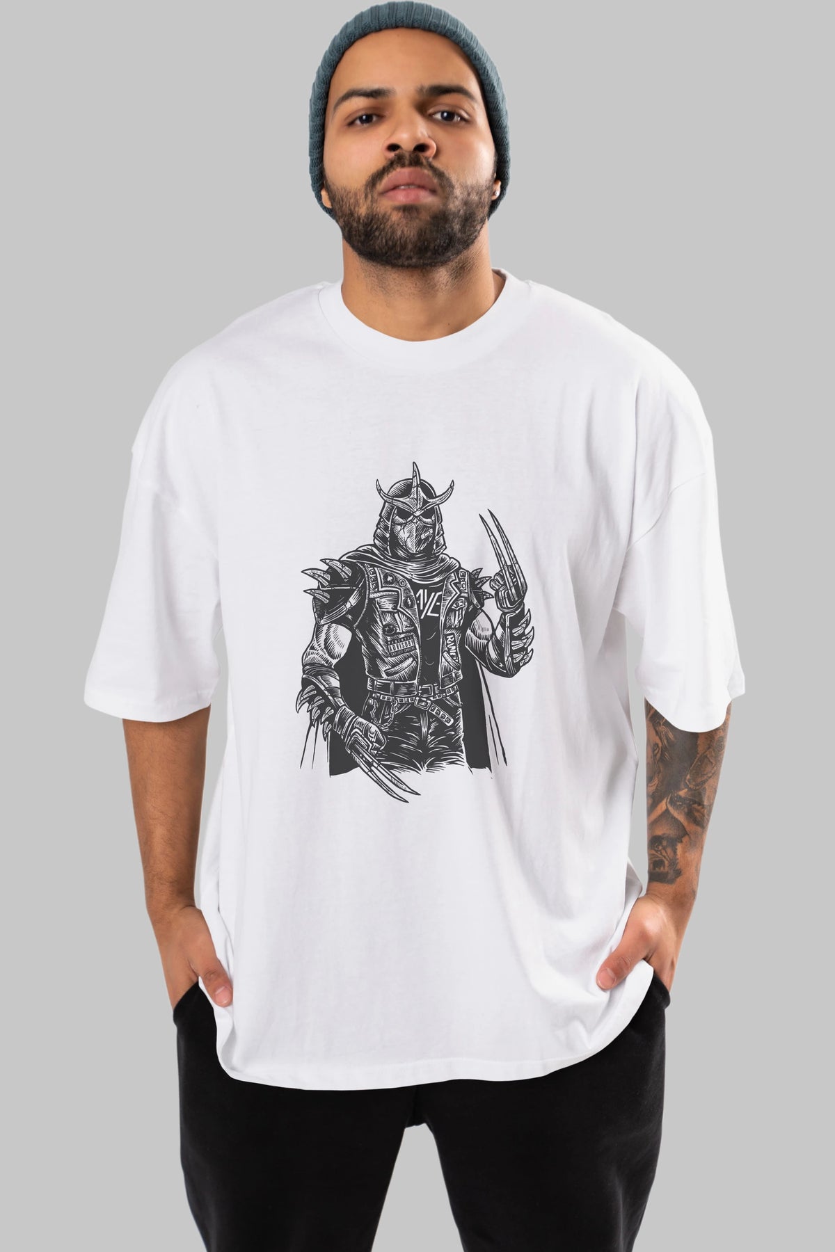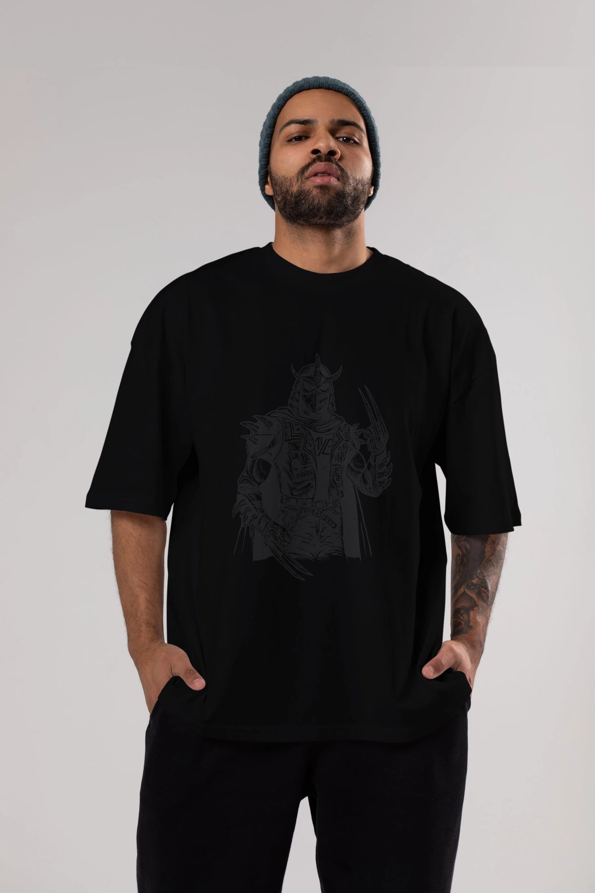 Shredder Punk Ön Baskılı Oversize t-shirt Erkek Kadın Unisex %100 Pamuk tişort