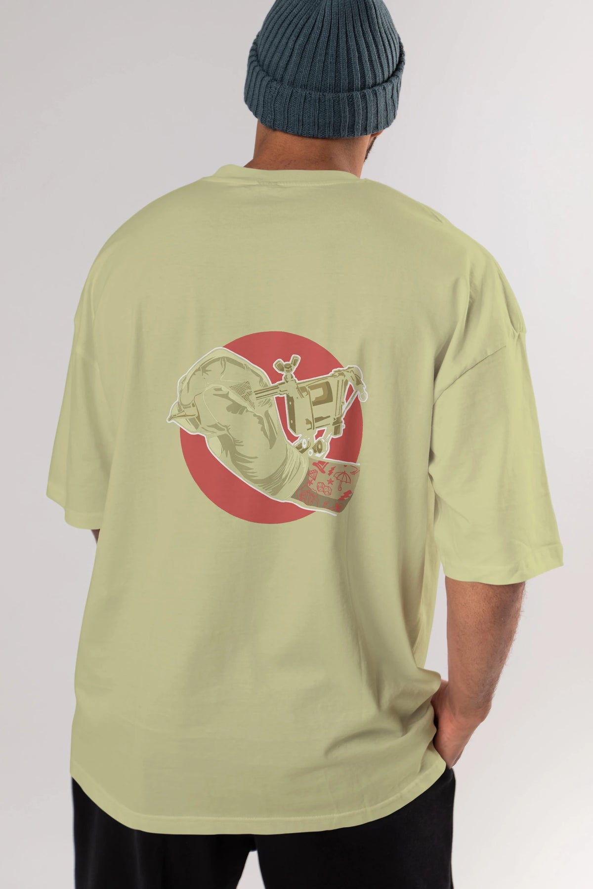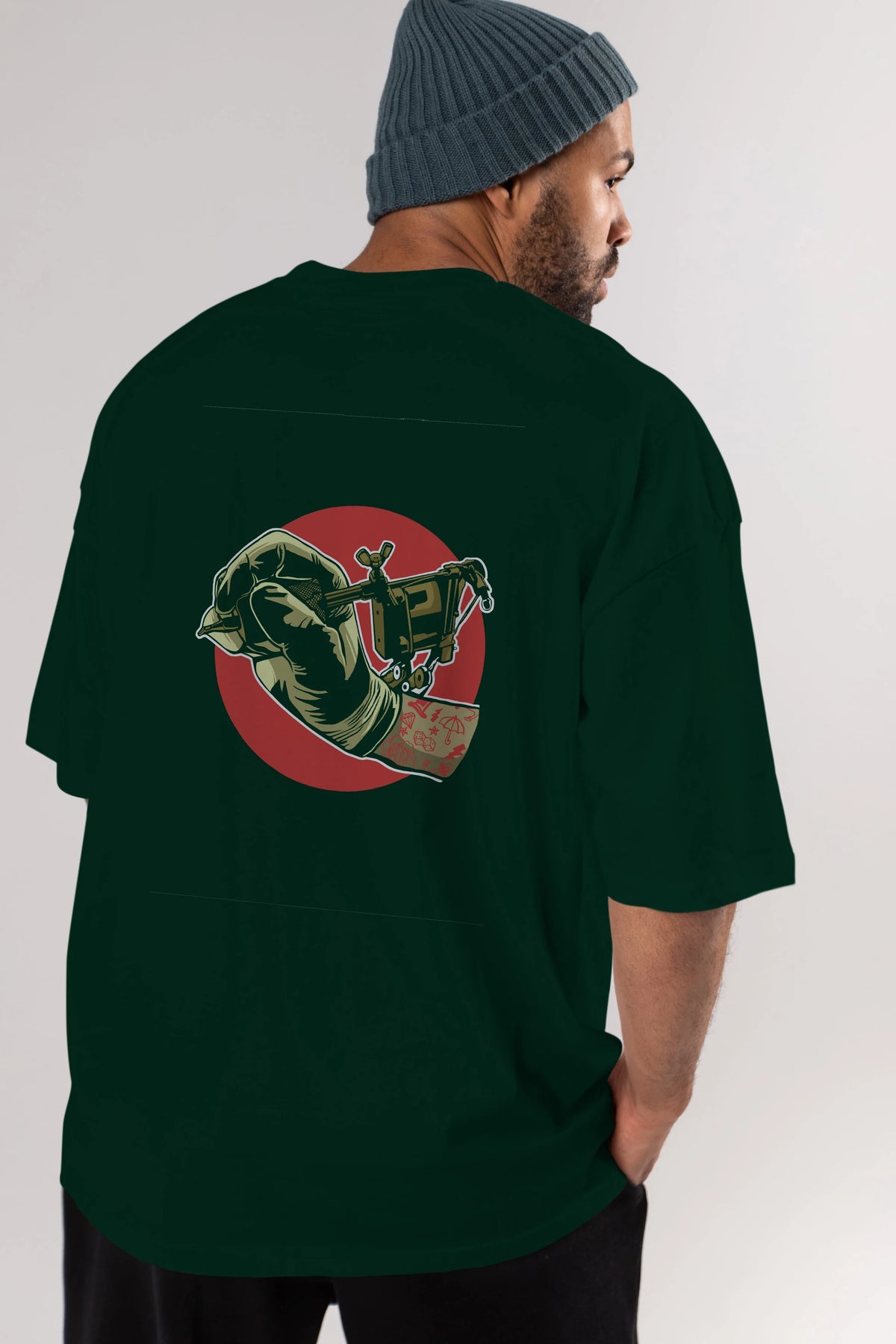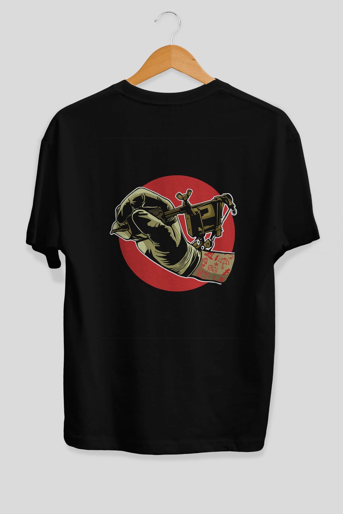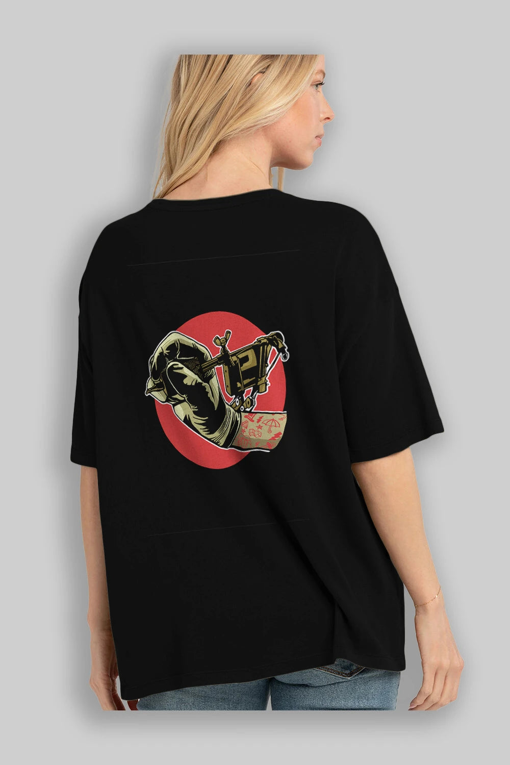 Tattoo Machine ] Arka Baskılı Oversize t-shirt Erkek Kadın Unisex %100 Pamuk