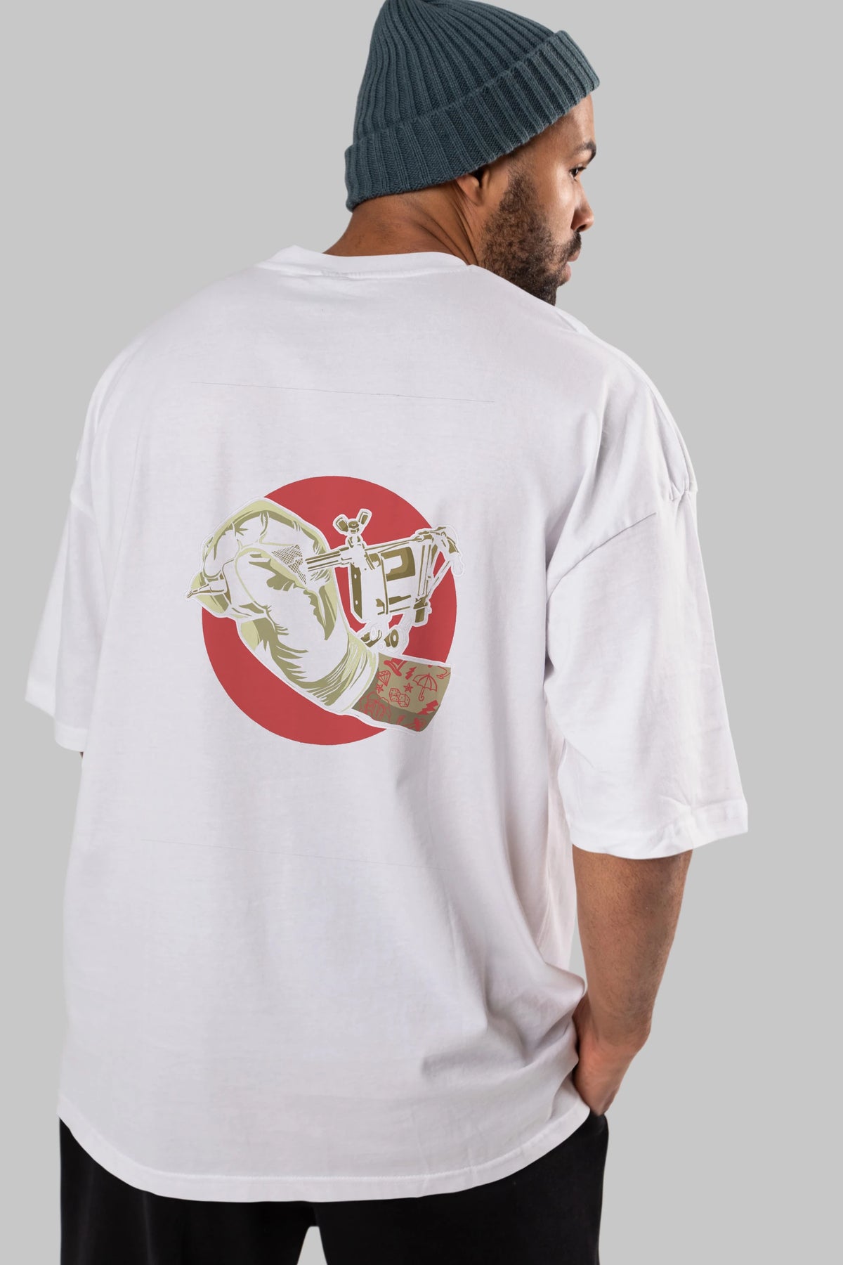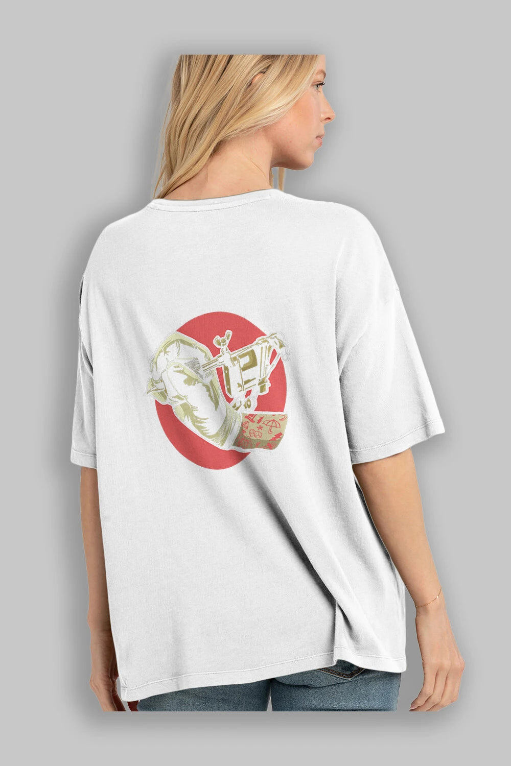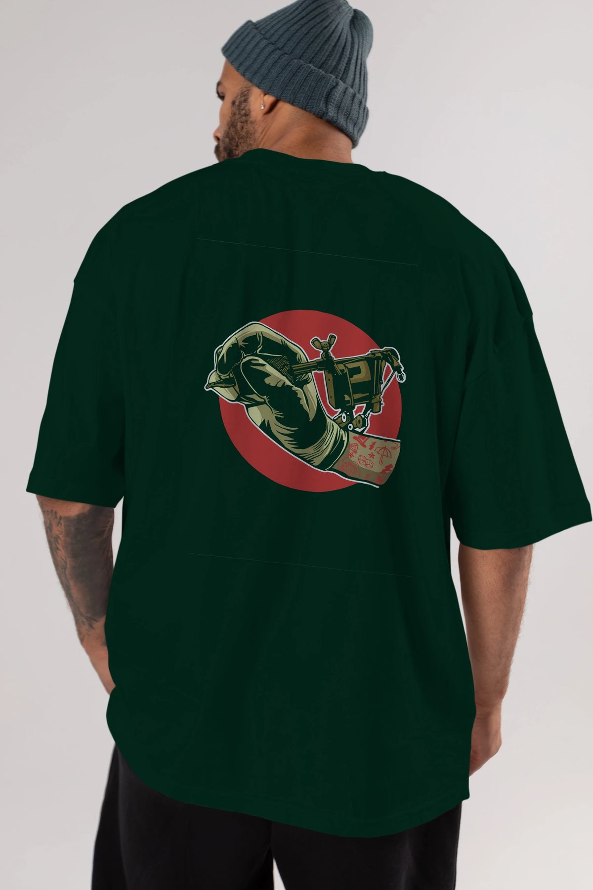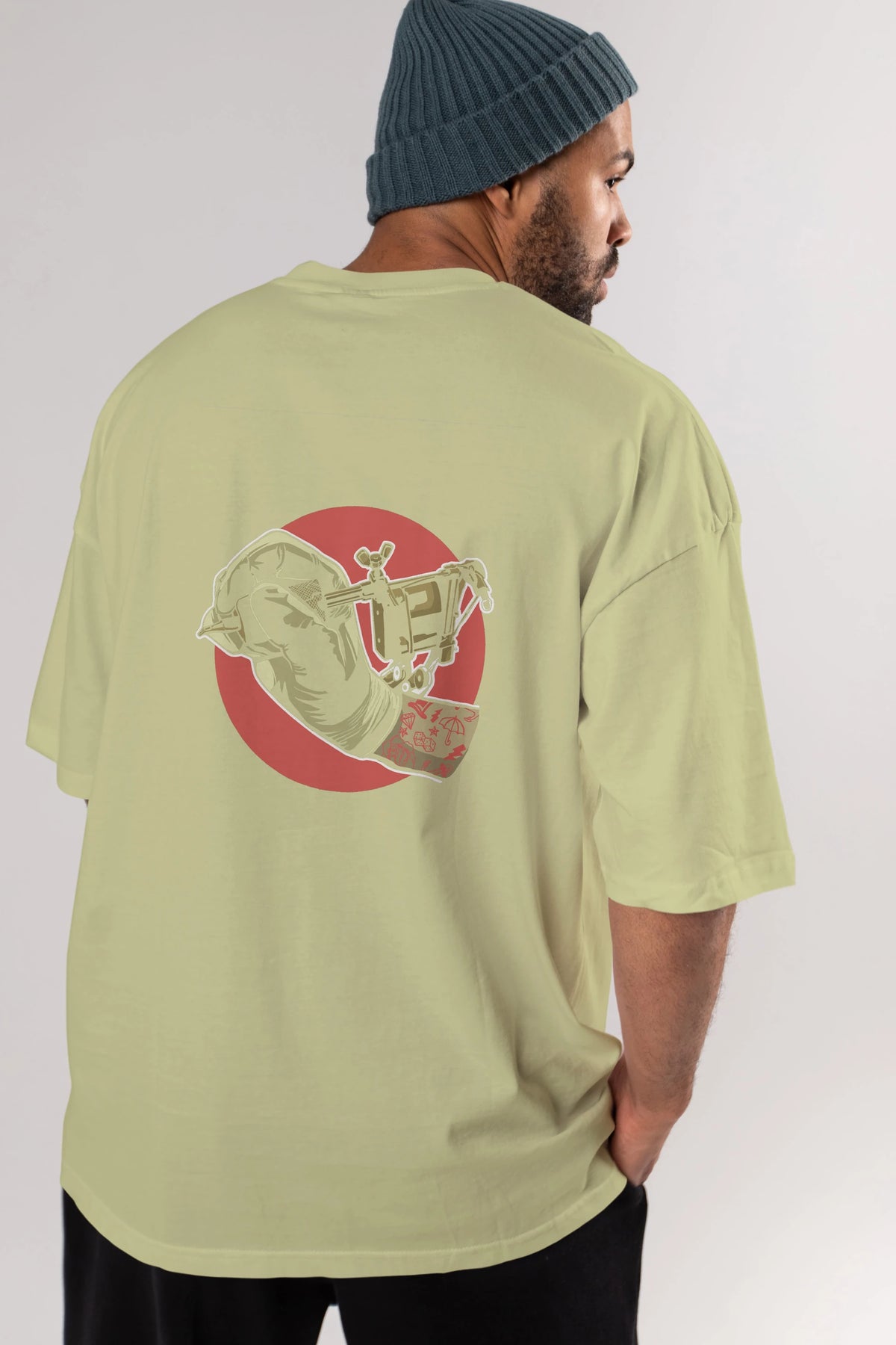 Tattoo Machine ] Arka Baskılı Oversize t-shirt Erkek Kadın Unisex %100 Pamuk