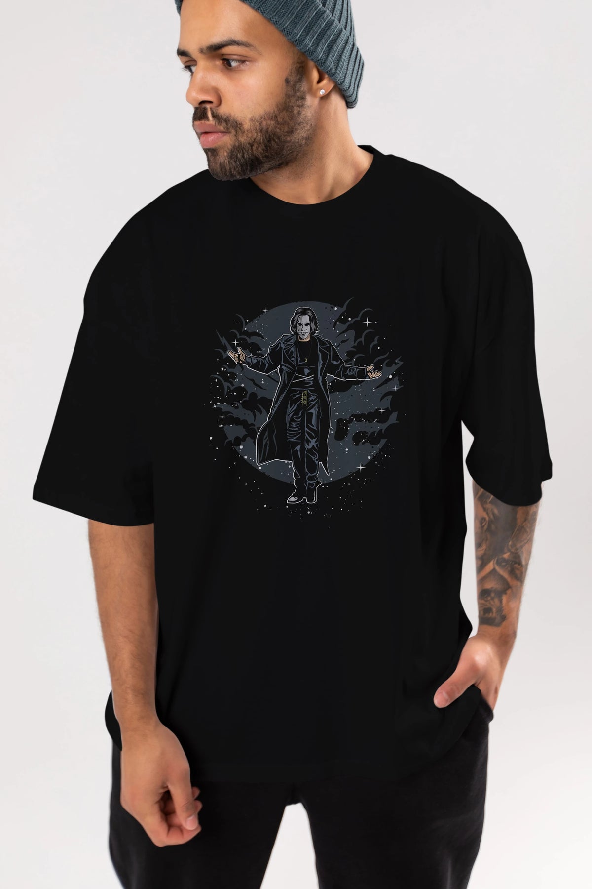 The Crow Ön Baskılı Oversize t-shirt Erkek Kadın Unisex %100 Pamuk tişort