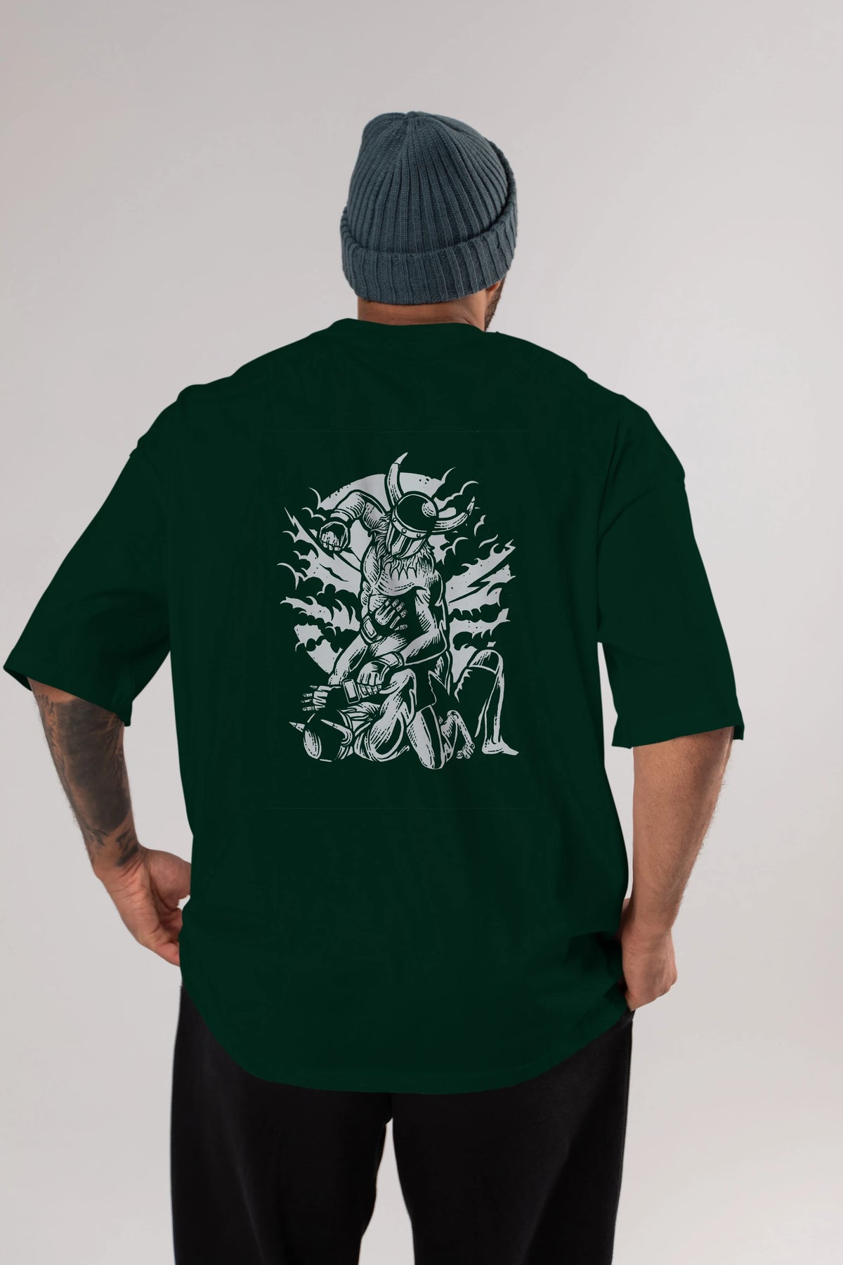 Viking MMA Fighter Arka Baskılı Oversize t-shirt Erkek Kadın Unisex %100 Pamuk