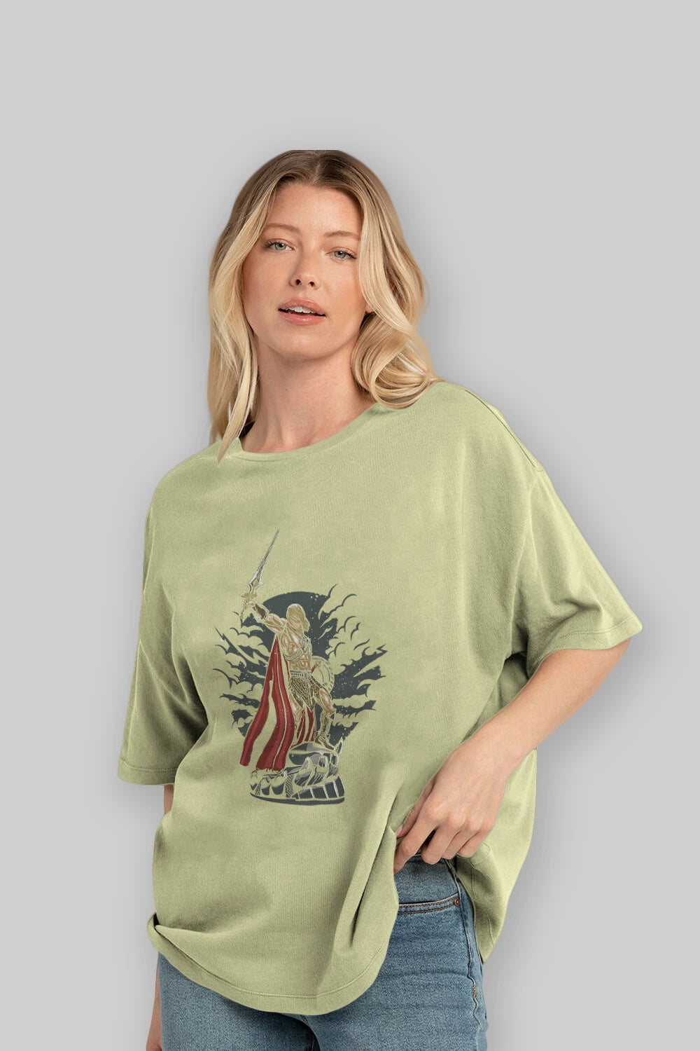 Hem erkekler hem de kadınlar için uygun, taze, modern bir baskıya sahip baskılı oversize t-shirt.