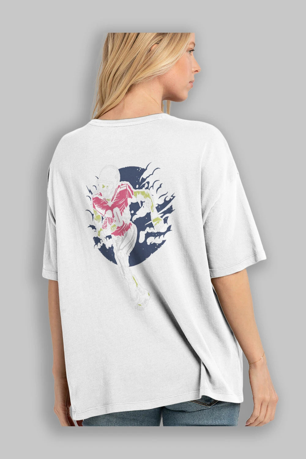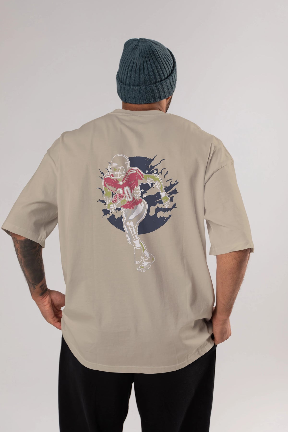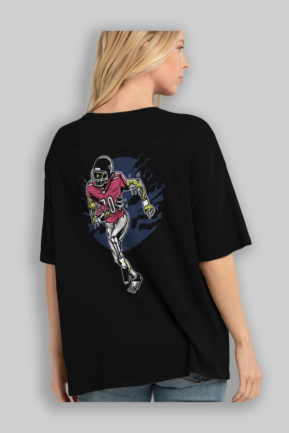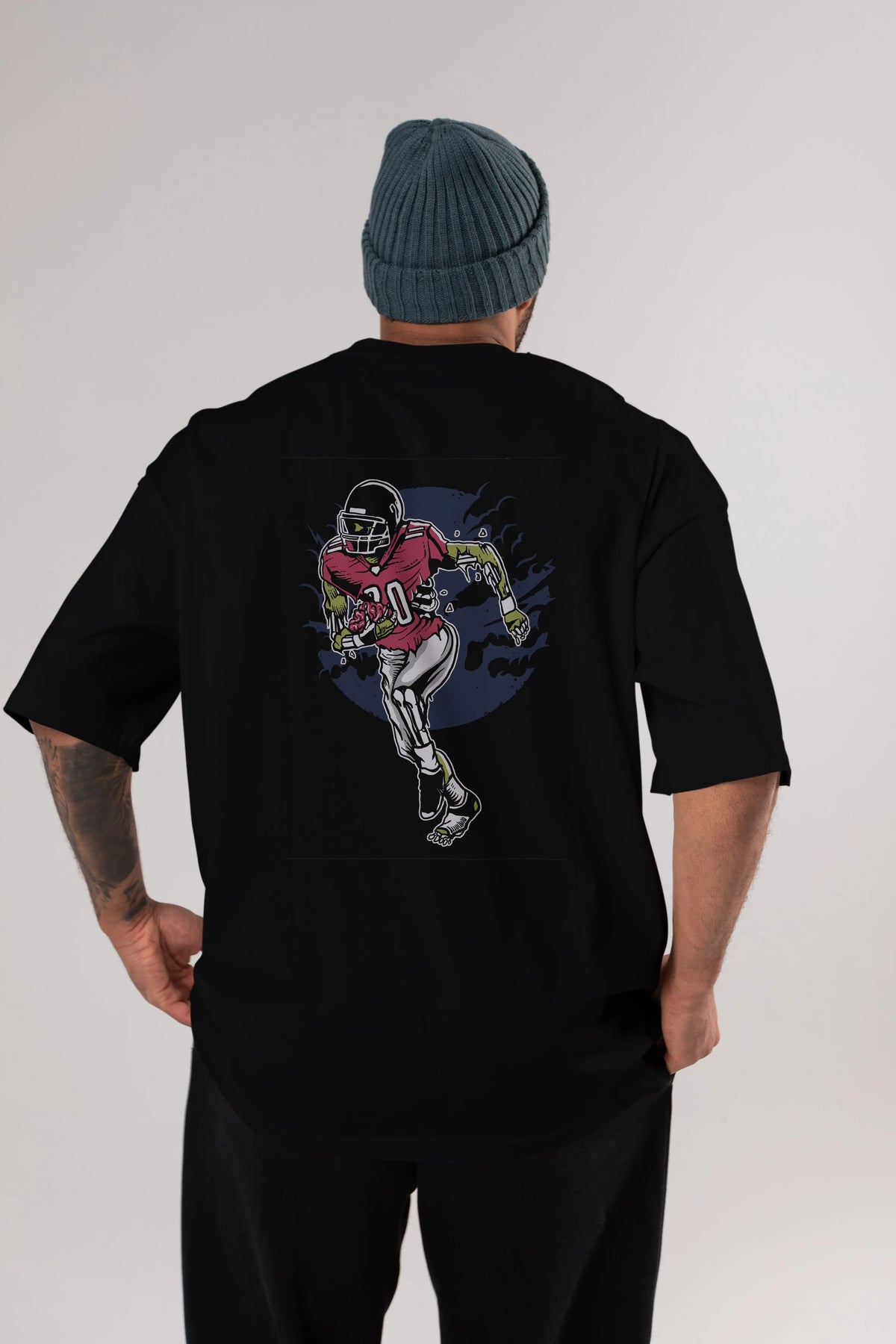 Zombie Football Arka Baskılı Oversize t-shirt Erkek Kadın Unisex %100 Pamuk