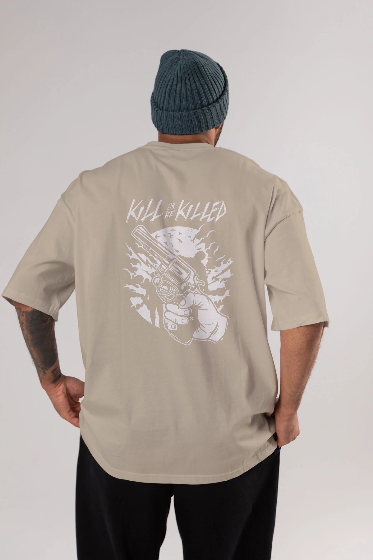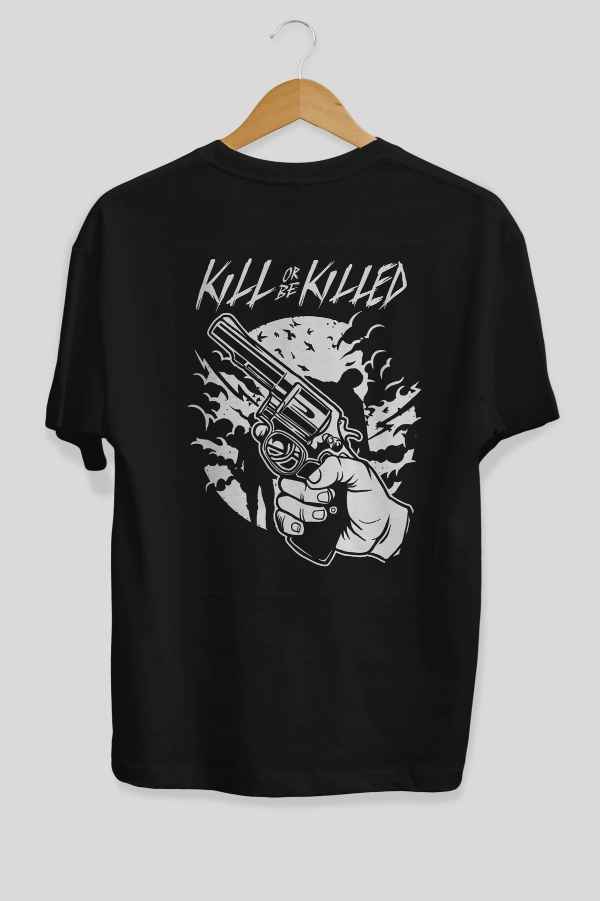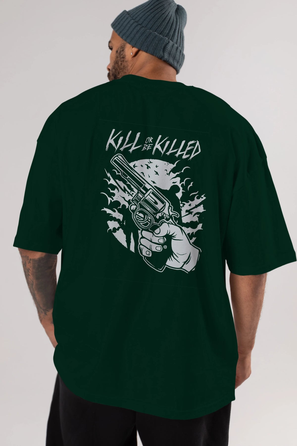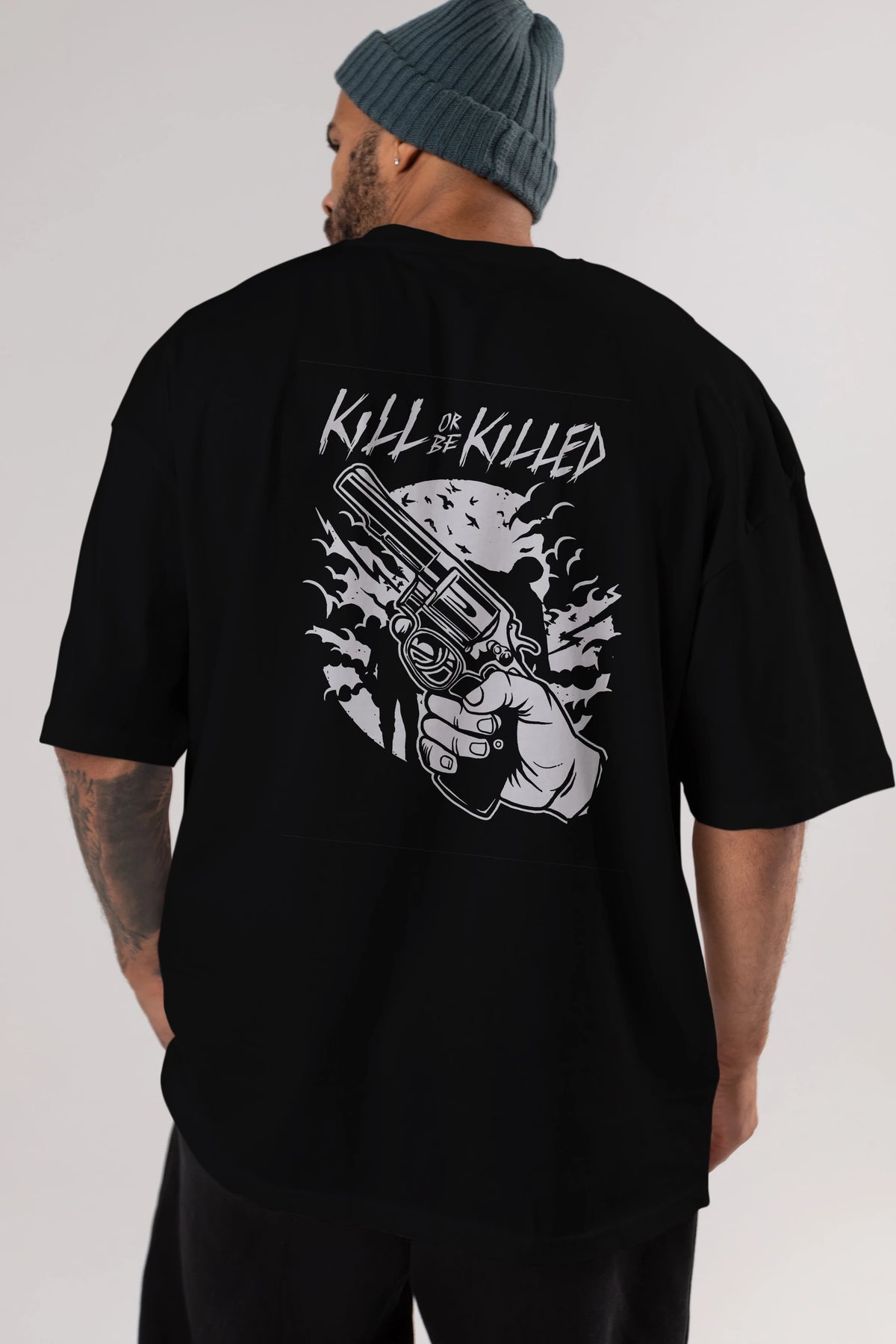 Zombie Shooter Arka Baskılı Oversize t-shirt Erkek Kadın Unisex %100 Pamuk