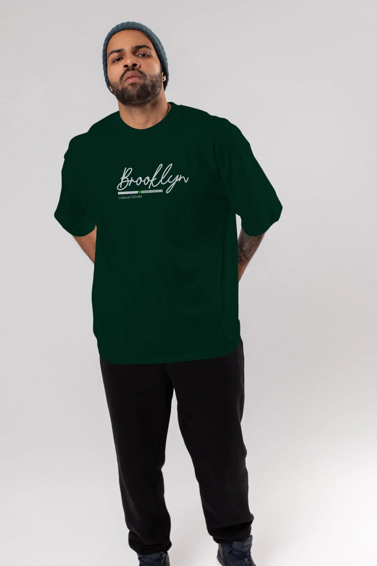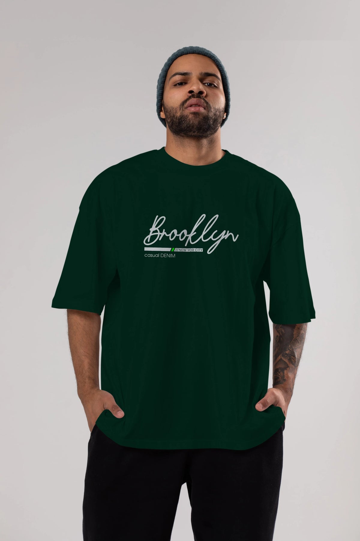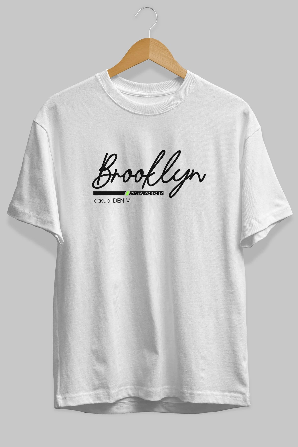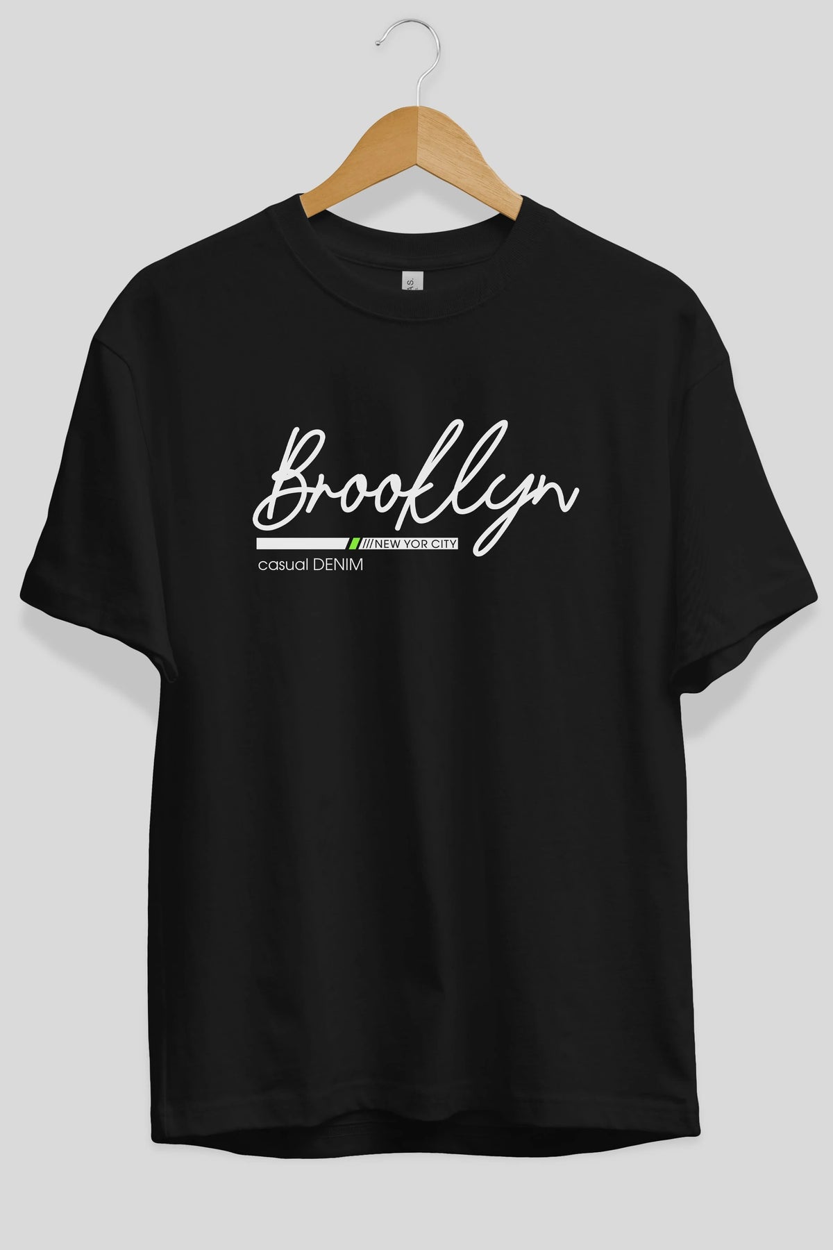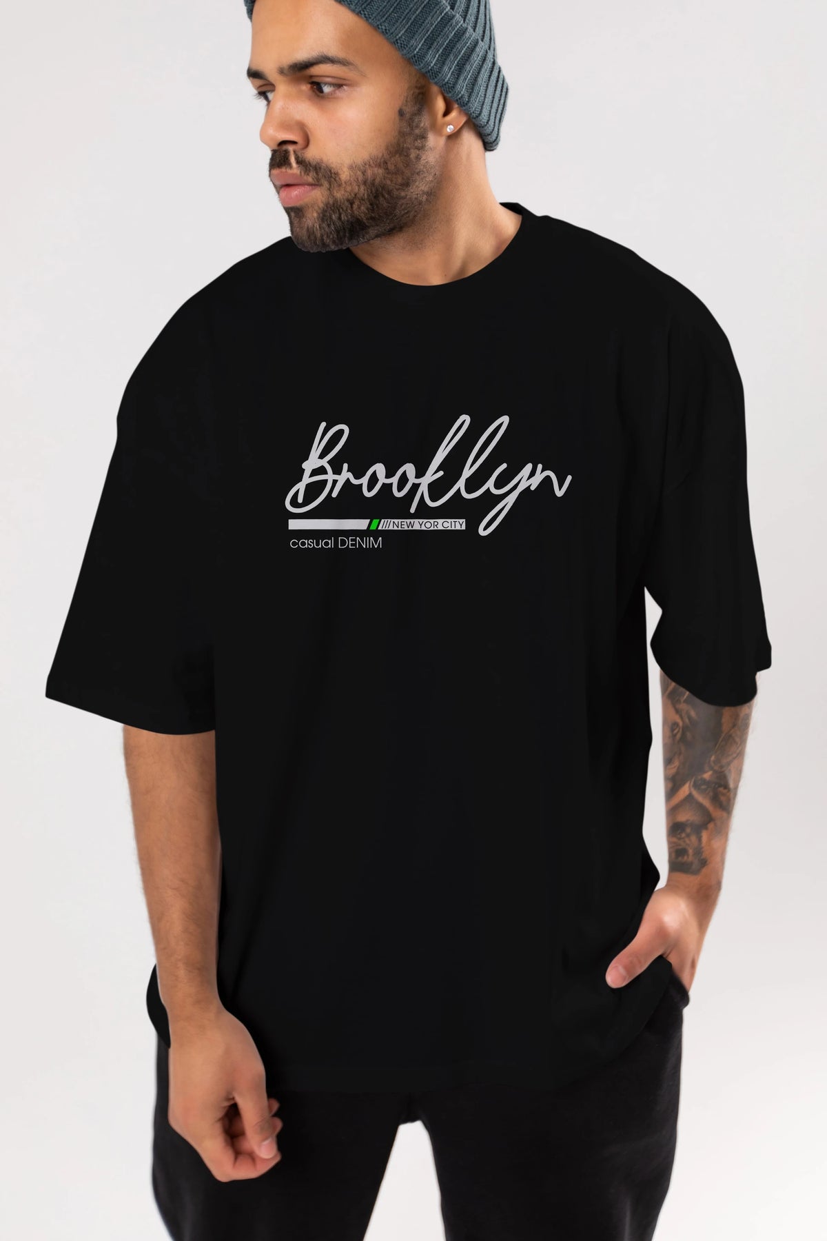 Brooklyn Denim Ön Baskılı Oversize t-shirt Erkek Kadın Unisex