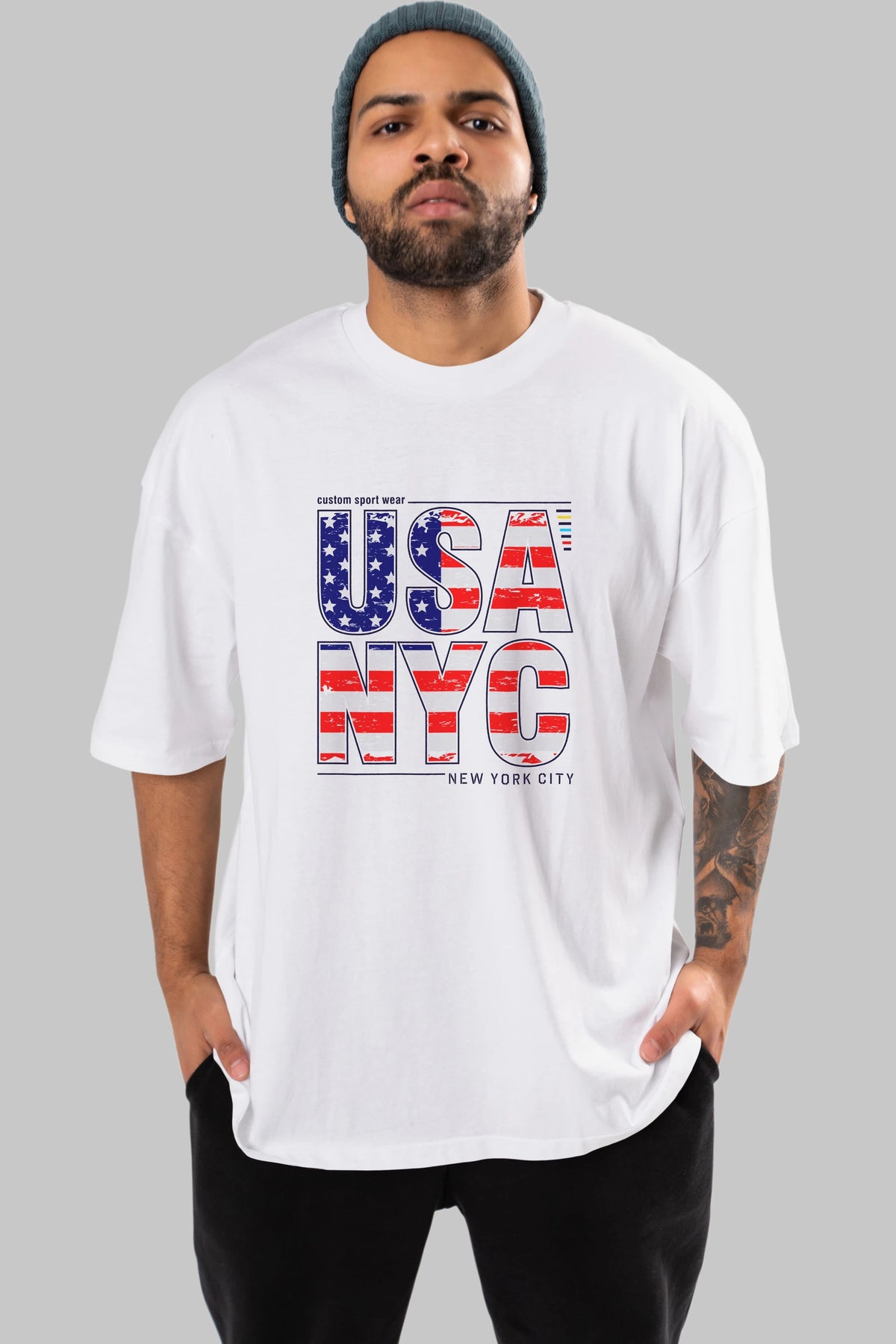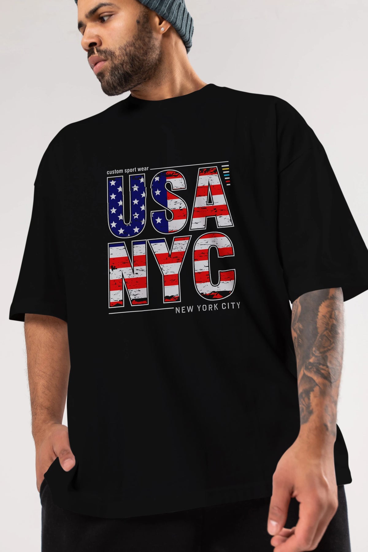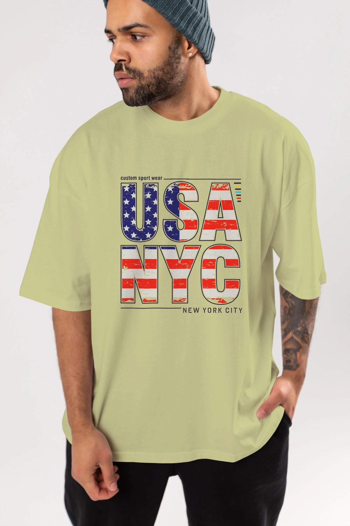 Usa NYC Ön Baskılı Oversize t-shirt Erkek Kadın Unisex