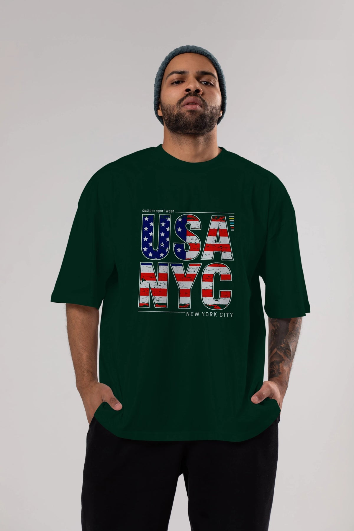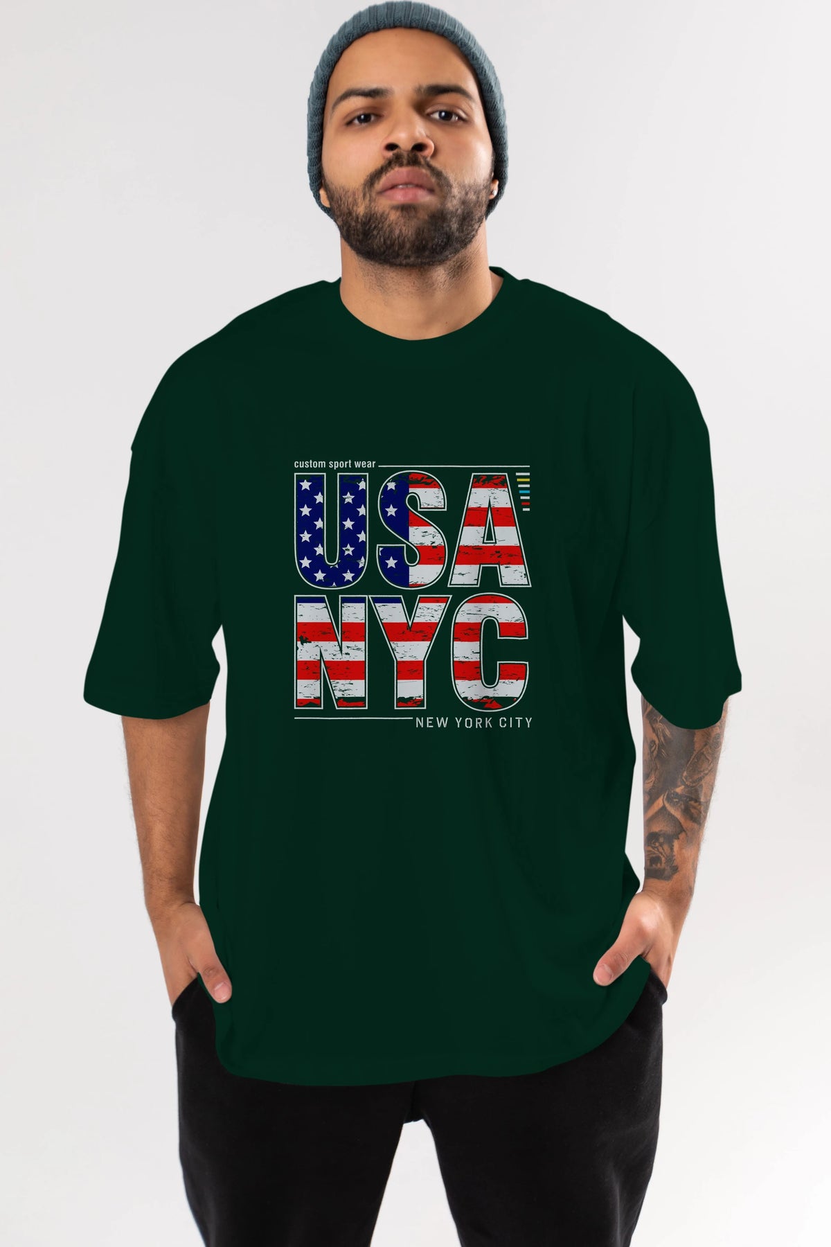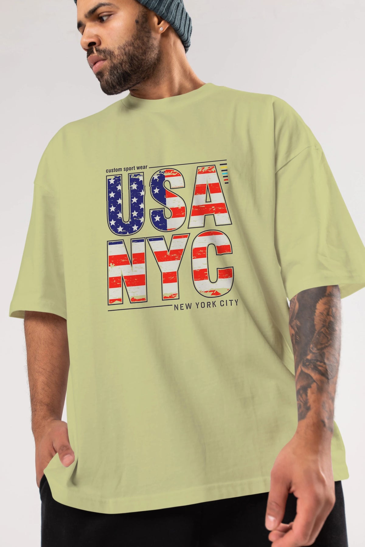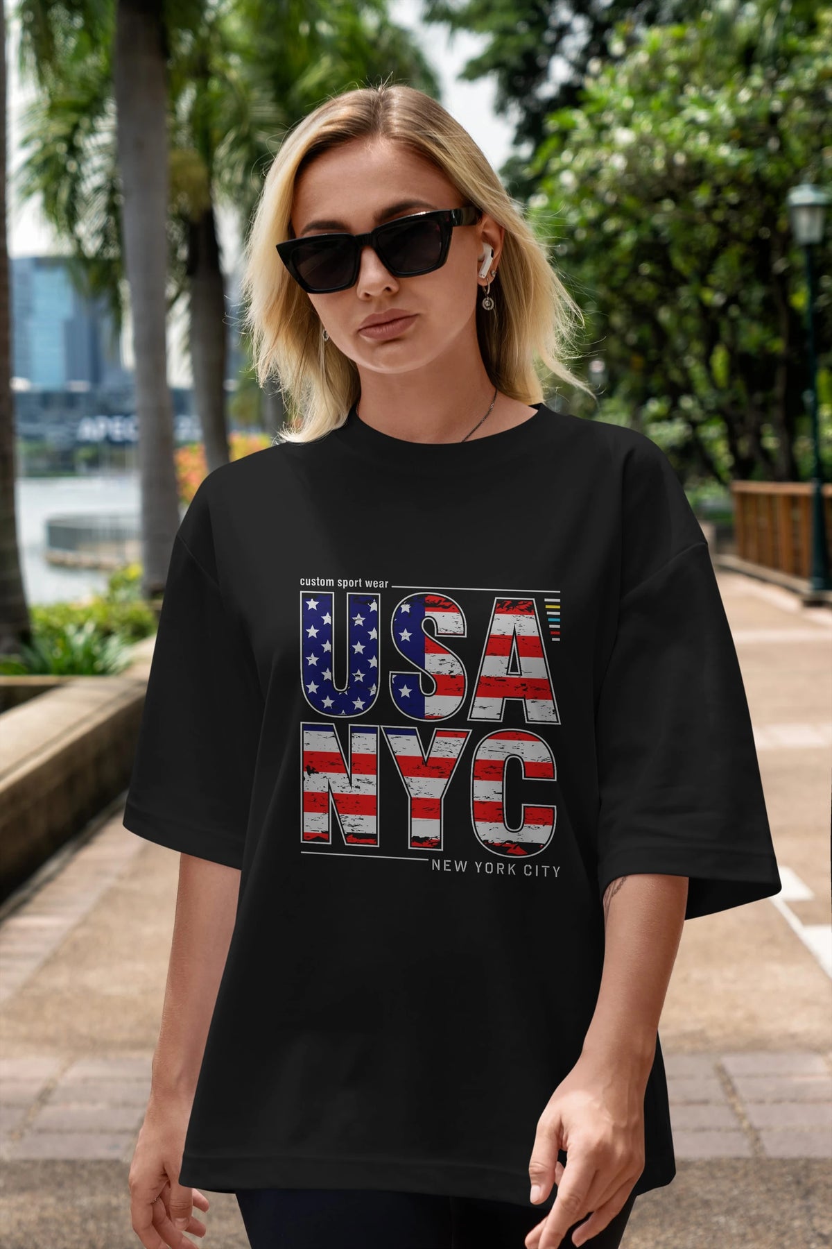 Usa NYC Ön Baskılı Oversize t-shirt Erkek Kadın Unisex