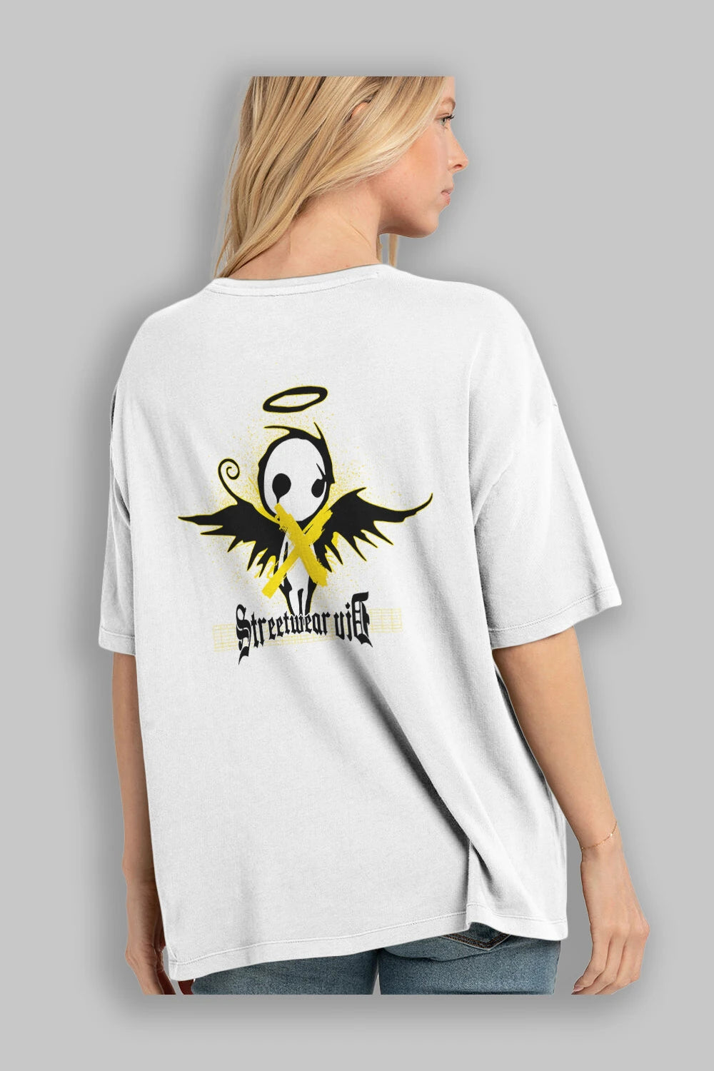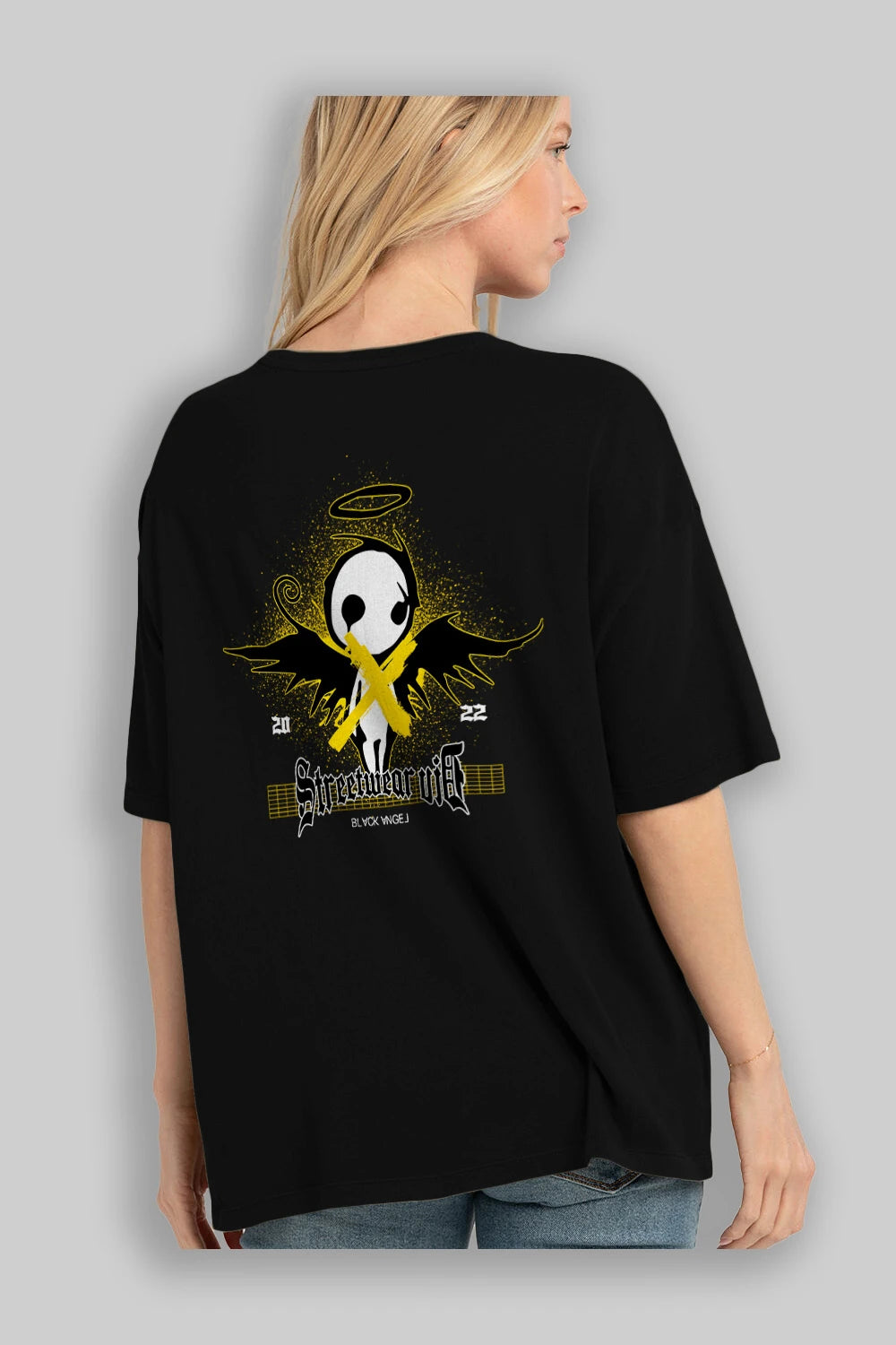 Black Angel Arka Baskılı Oversize t-shirt Erkek Kadın Unisex