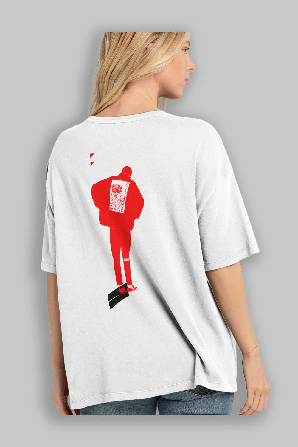 Hem erkekler hem de kadınlar için uygun, taze, modern bir baskıya sahip baskılı oversize t-shirt.