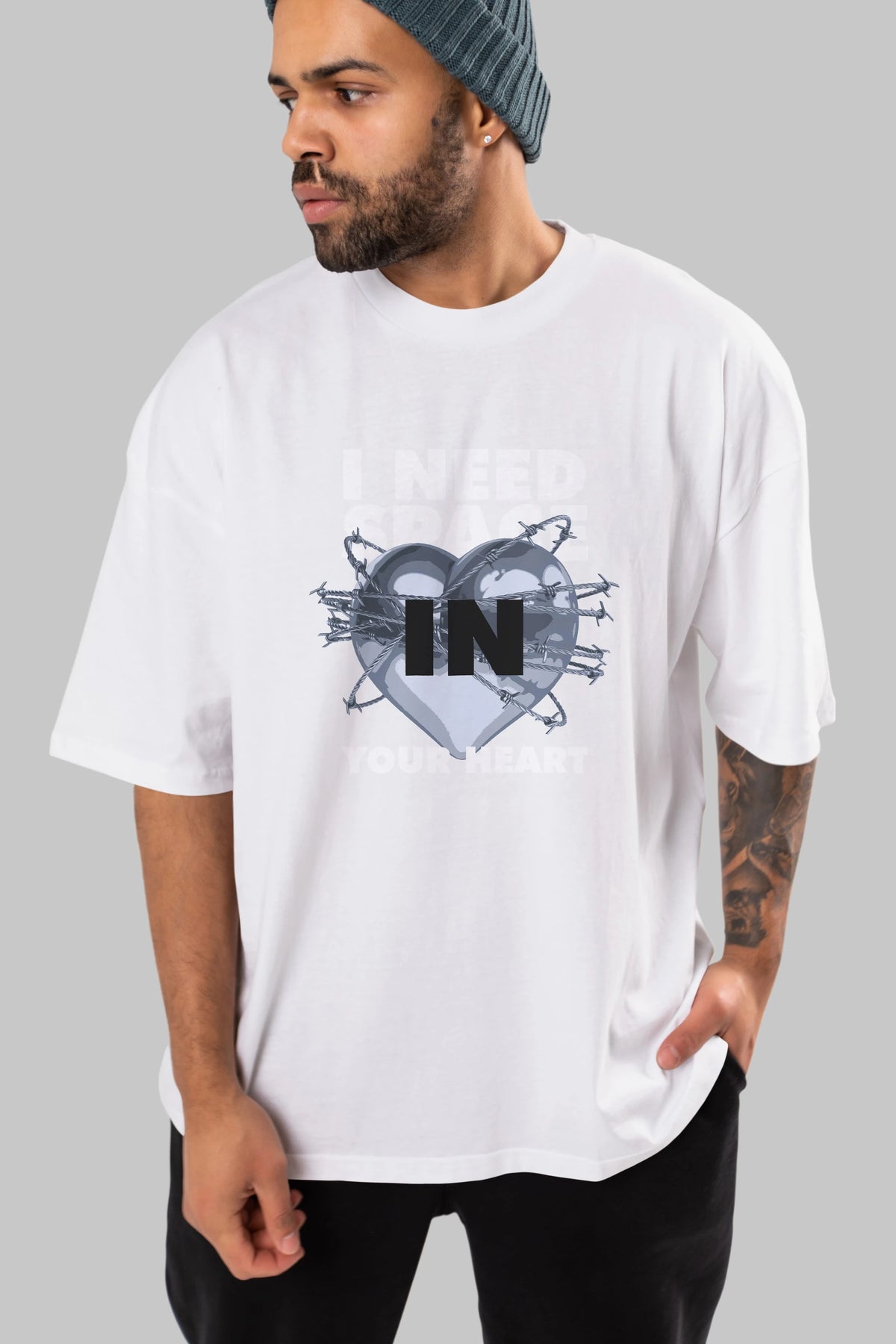 I Need Space Your Heart Ön Baskılı Oversize t-shirt Erkek Kadın Unisex