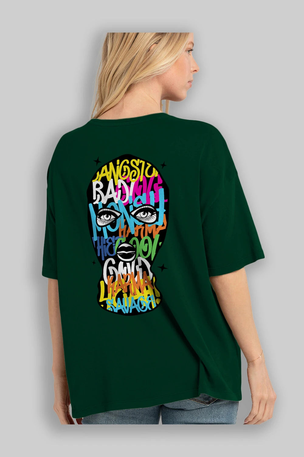 Hem erkekler hem de kadınlar için uygun, taze, modern bir baskıya sahip baskılı oversize t-shirt.