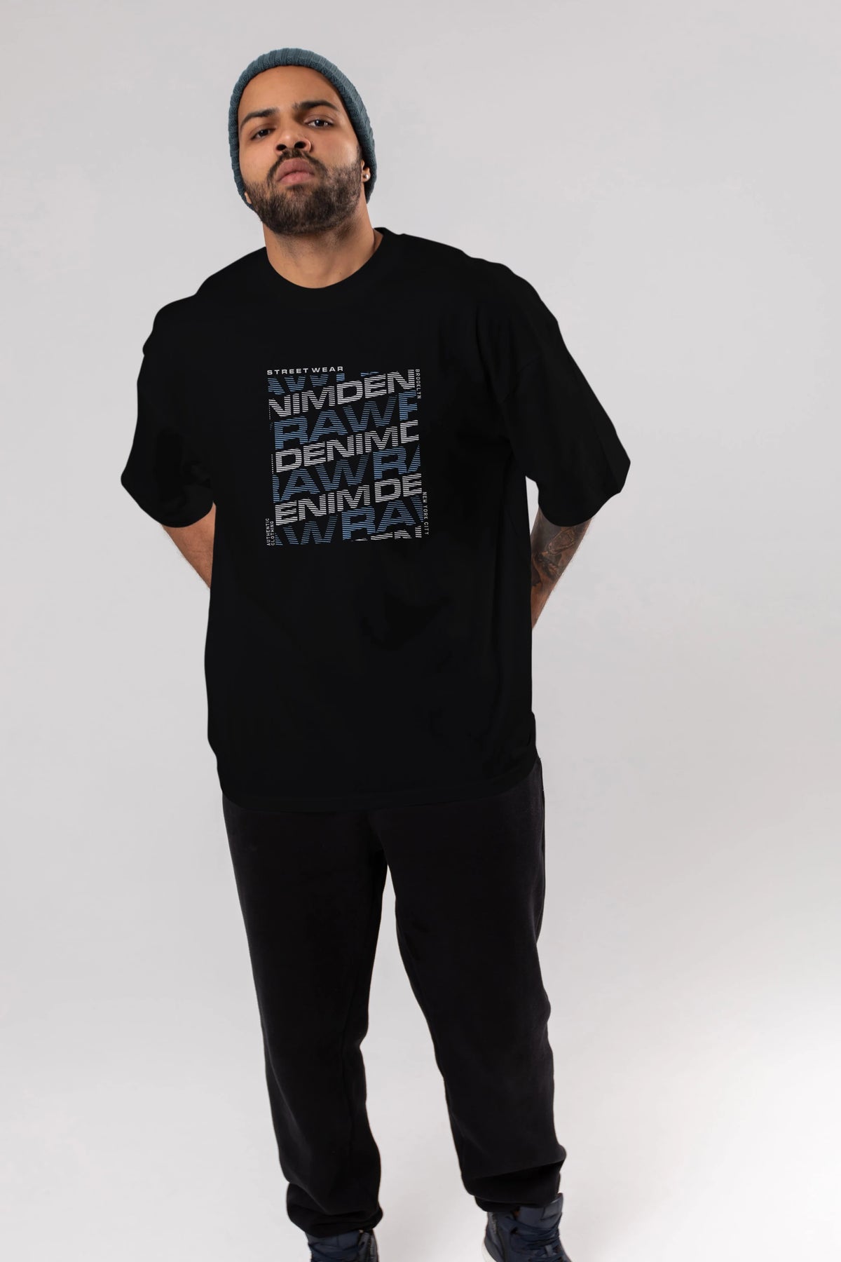 Raw Denim Ön Baskılı Oversize t-shirt Erkek Kadın Unisex