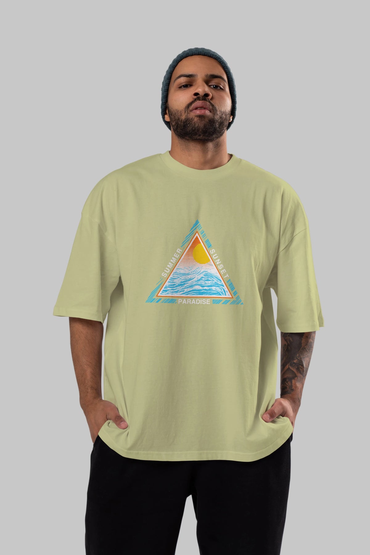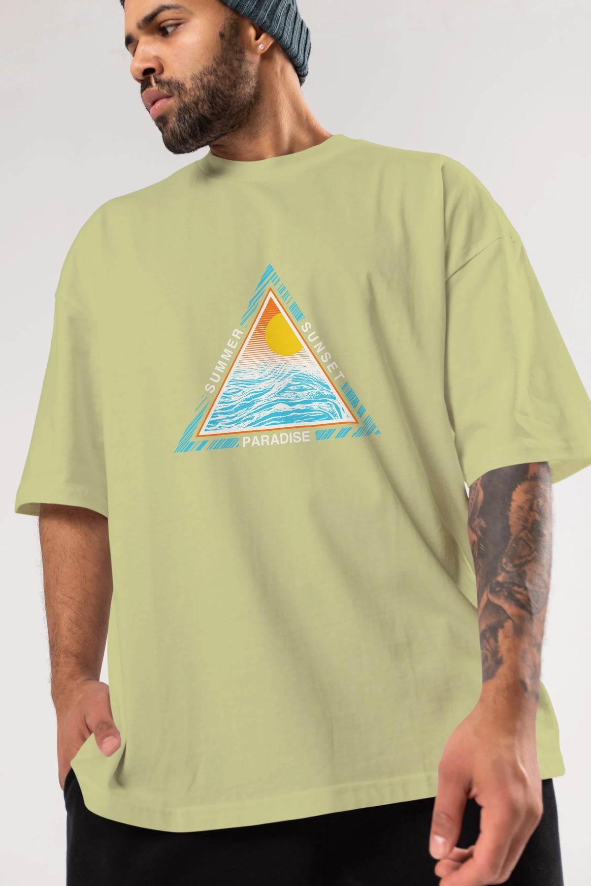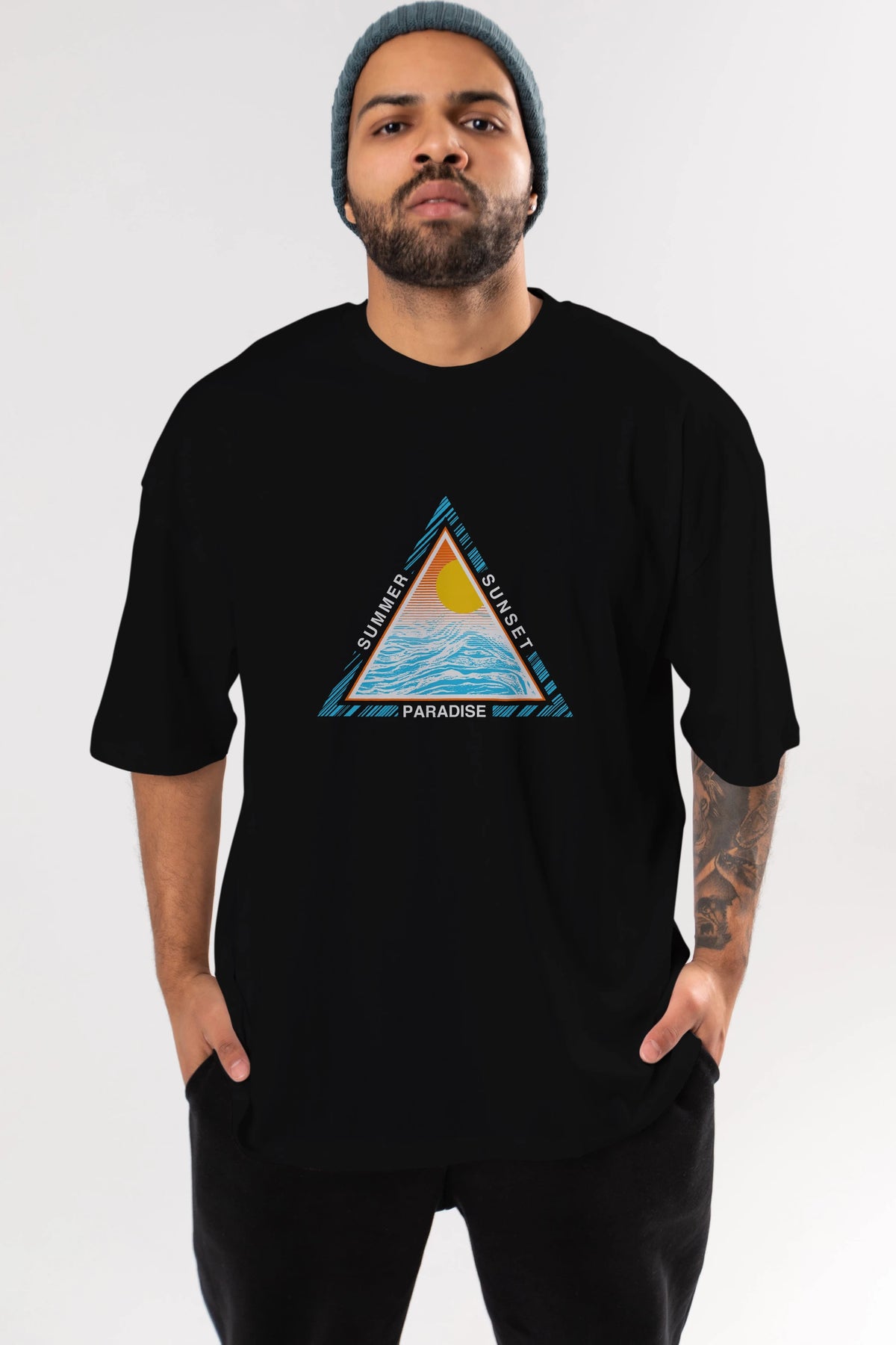 Summer Sunset Paradise Ön Baskılı Oversize t-shirt Erkek Kadın Unisex