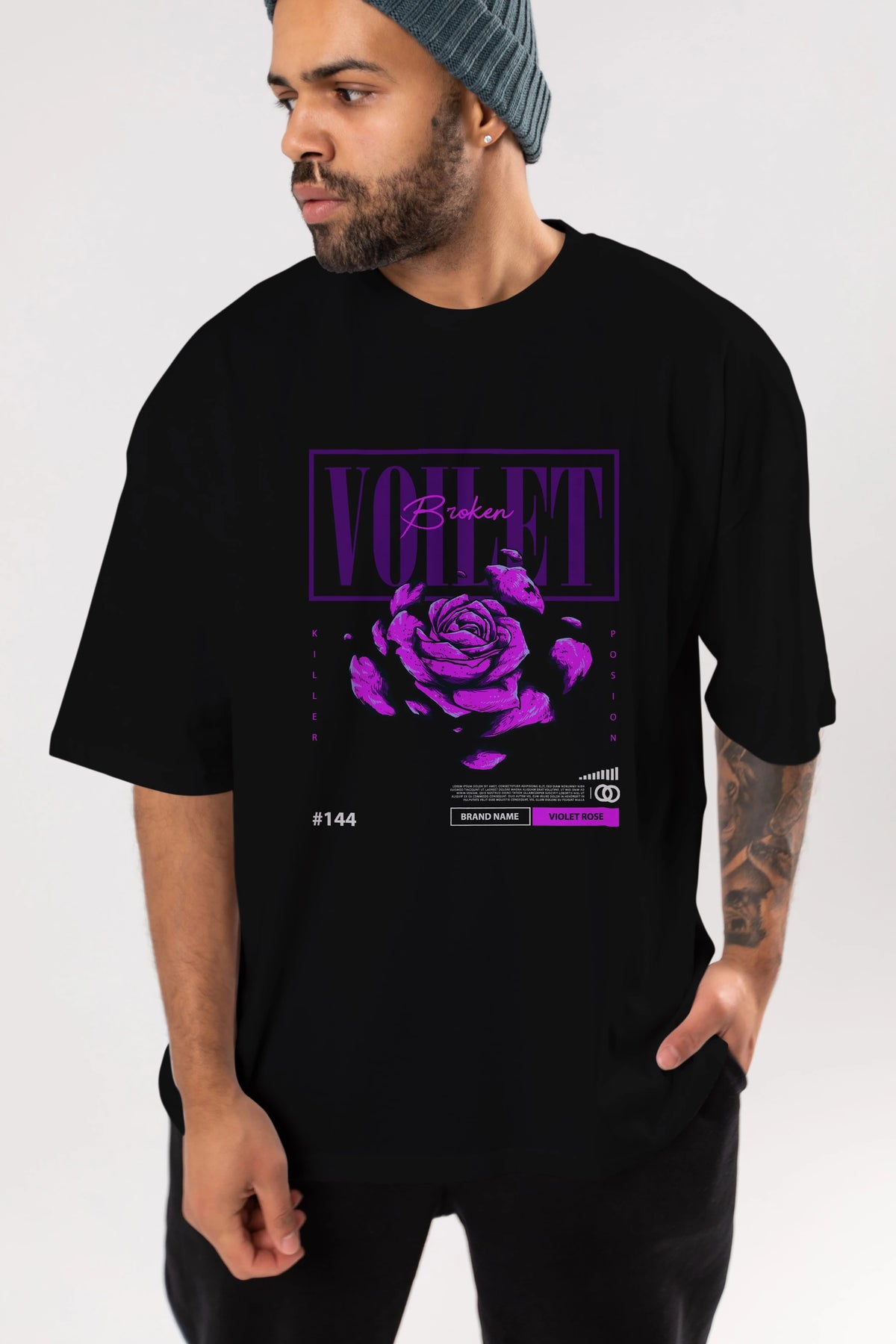 Voilet Broken Ön Baskılı Oversize t-shirt Erkek Kadın Unisex