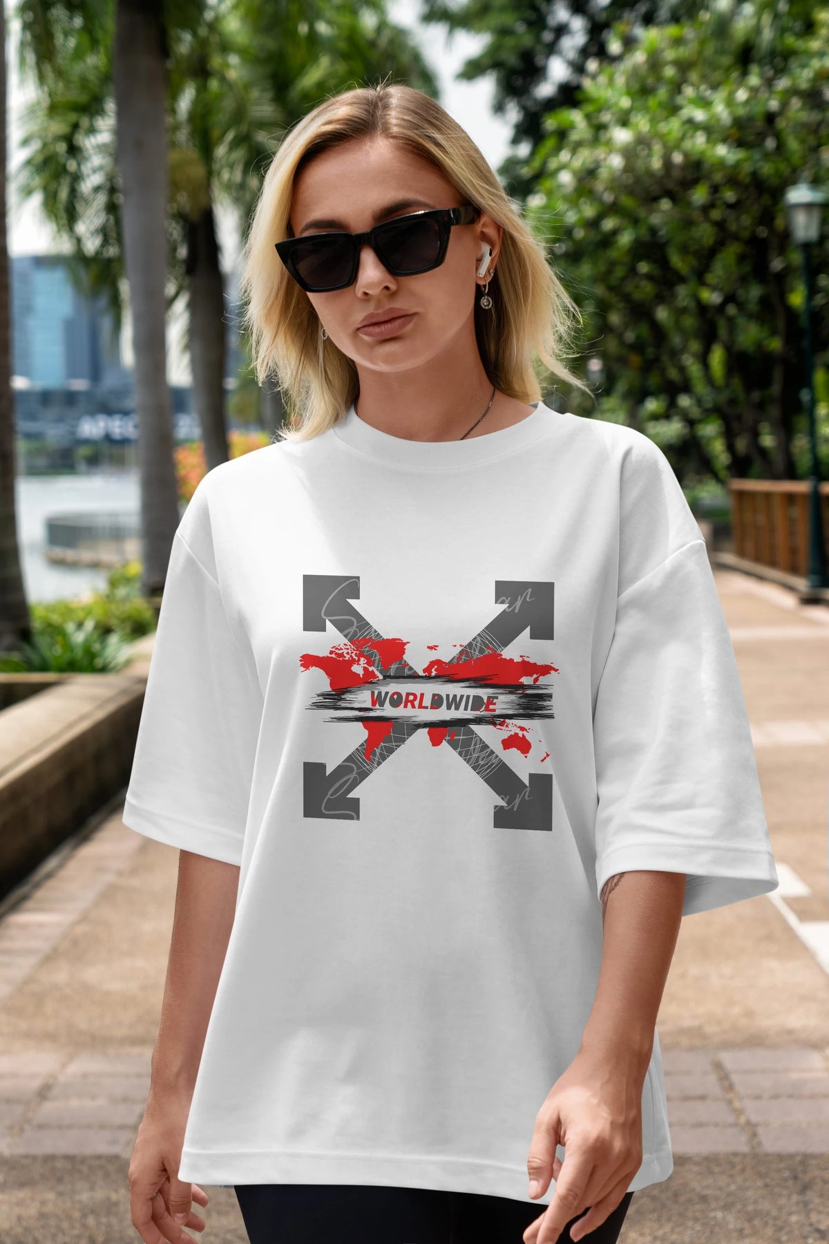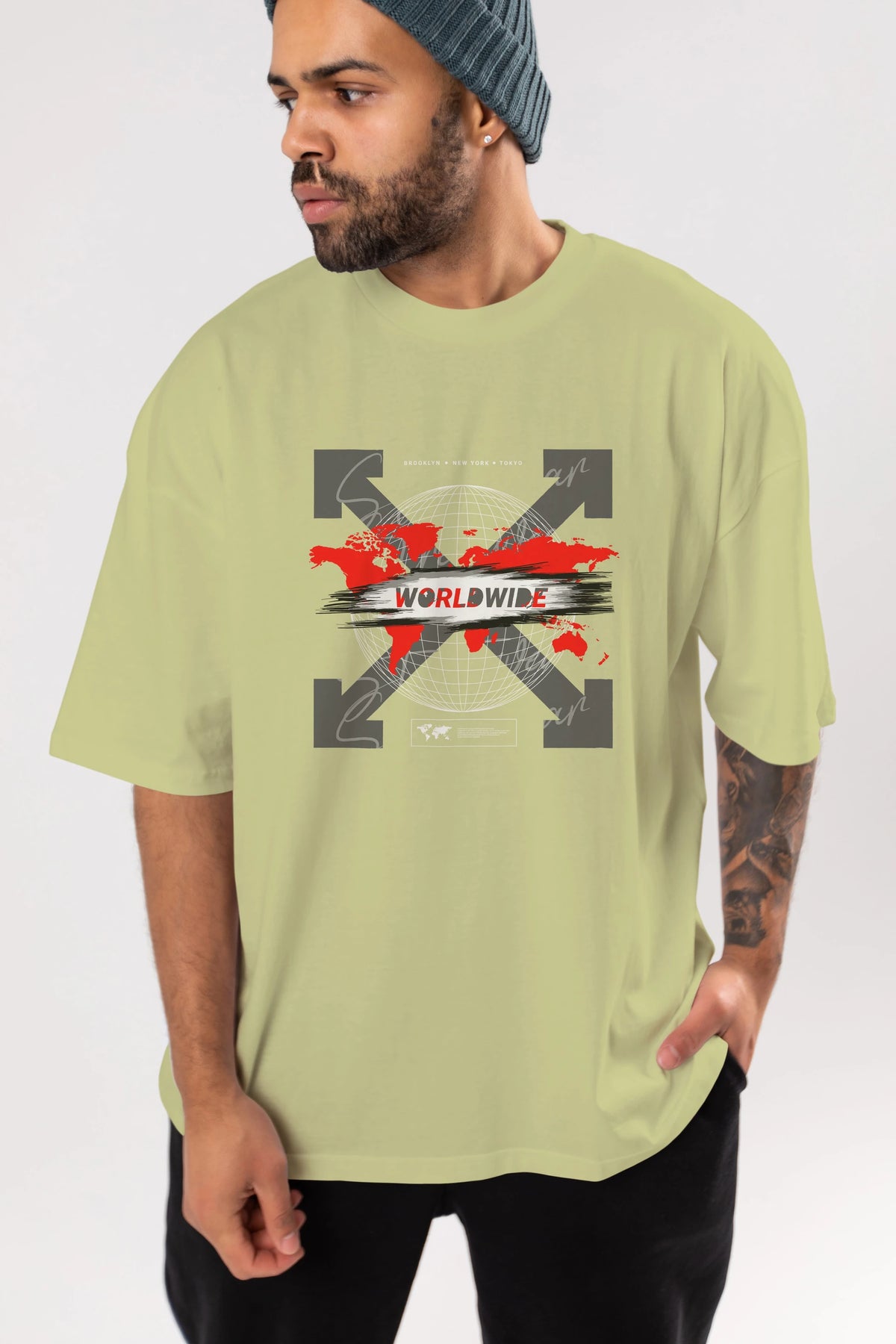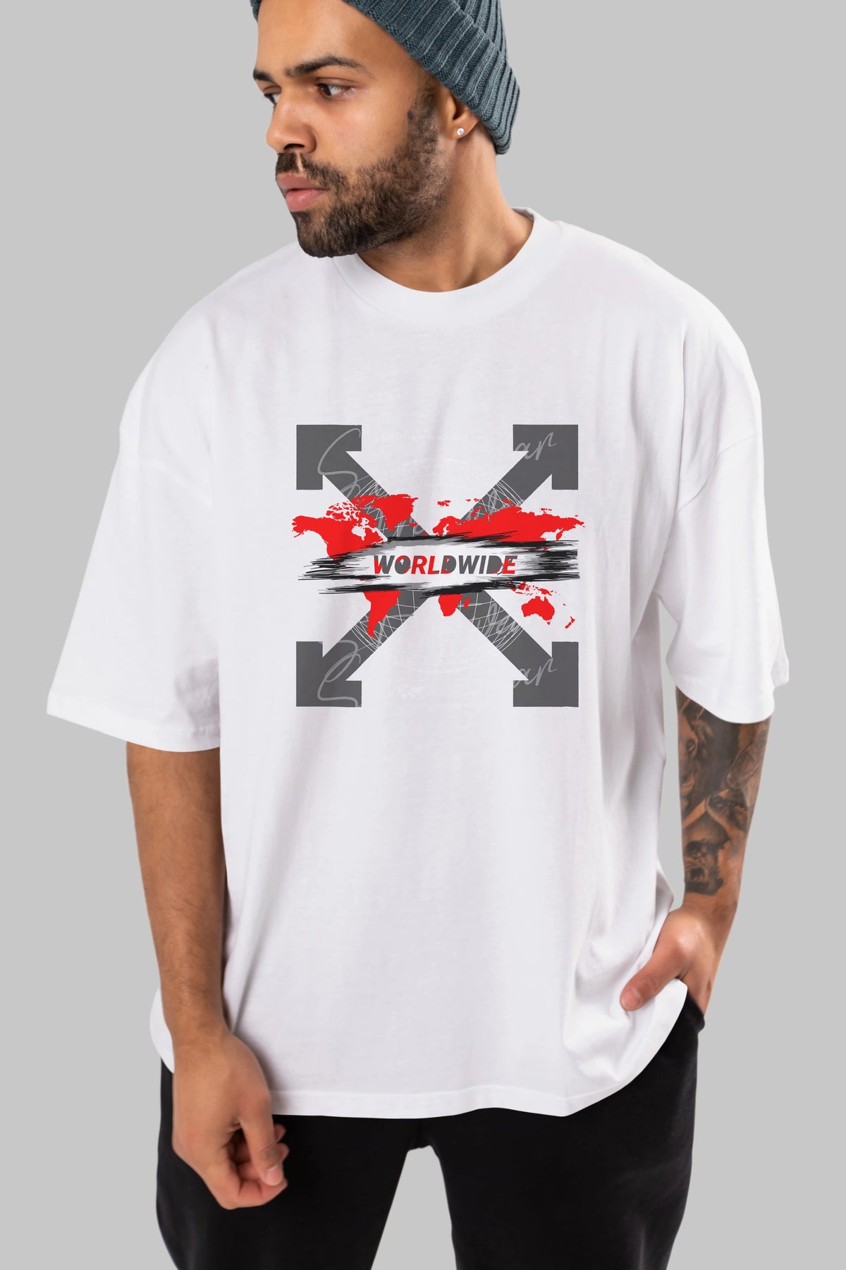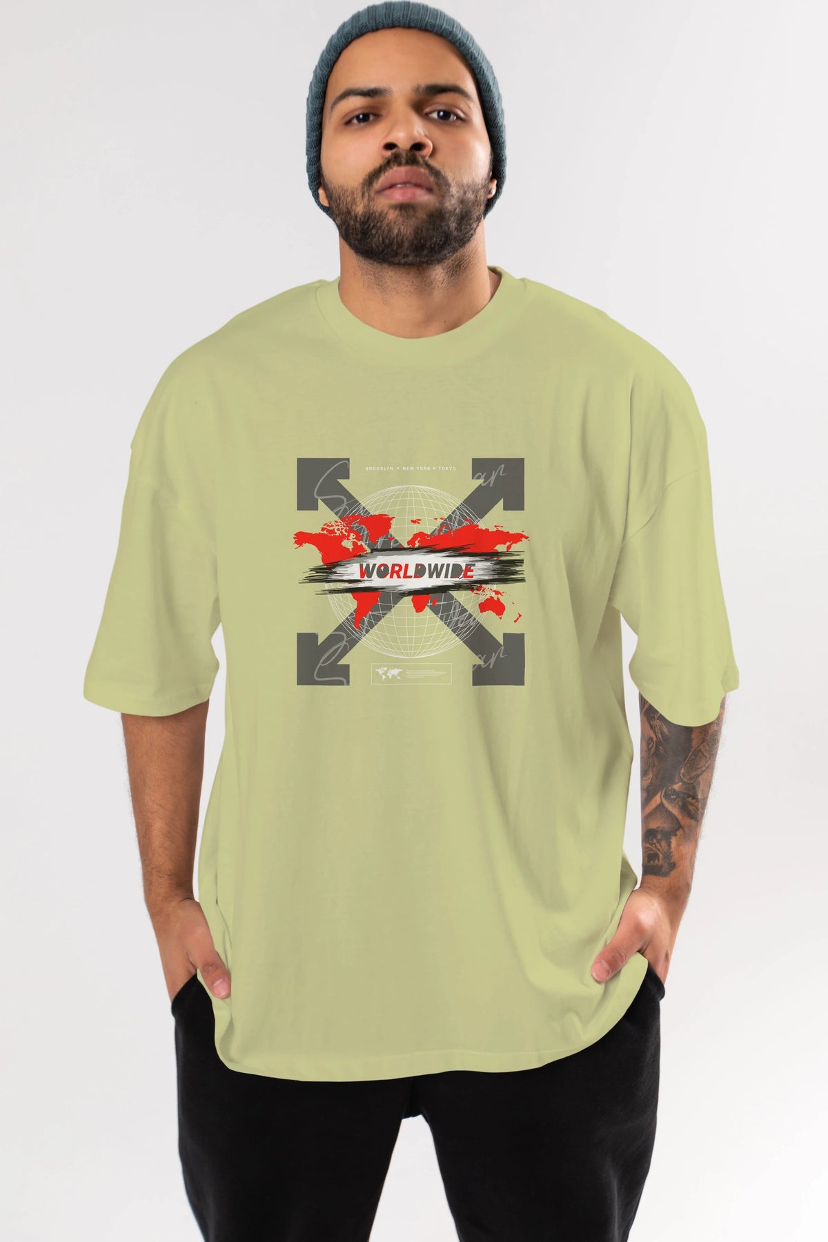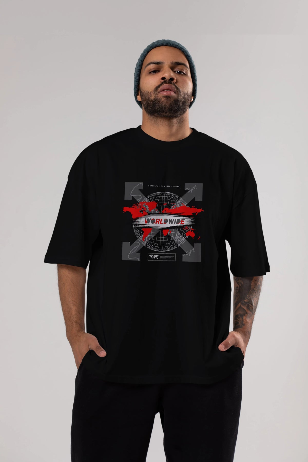 Worldwide Style Ön Baskılı Oversize t-shirt Erkek Kadın Unisex