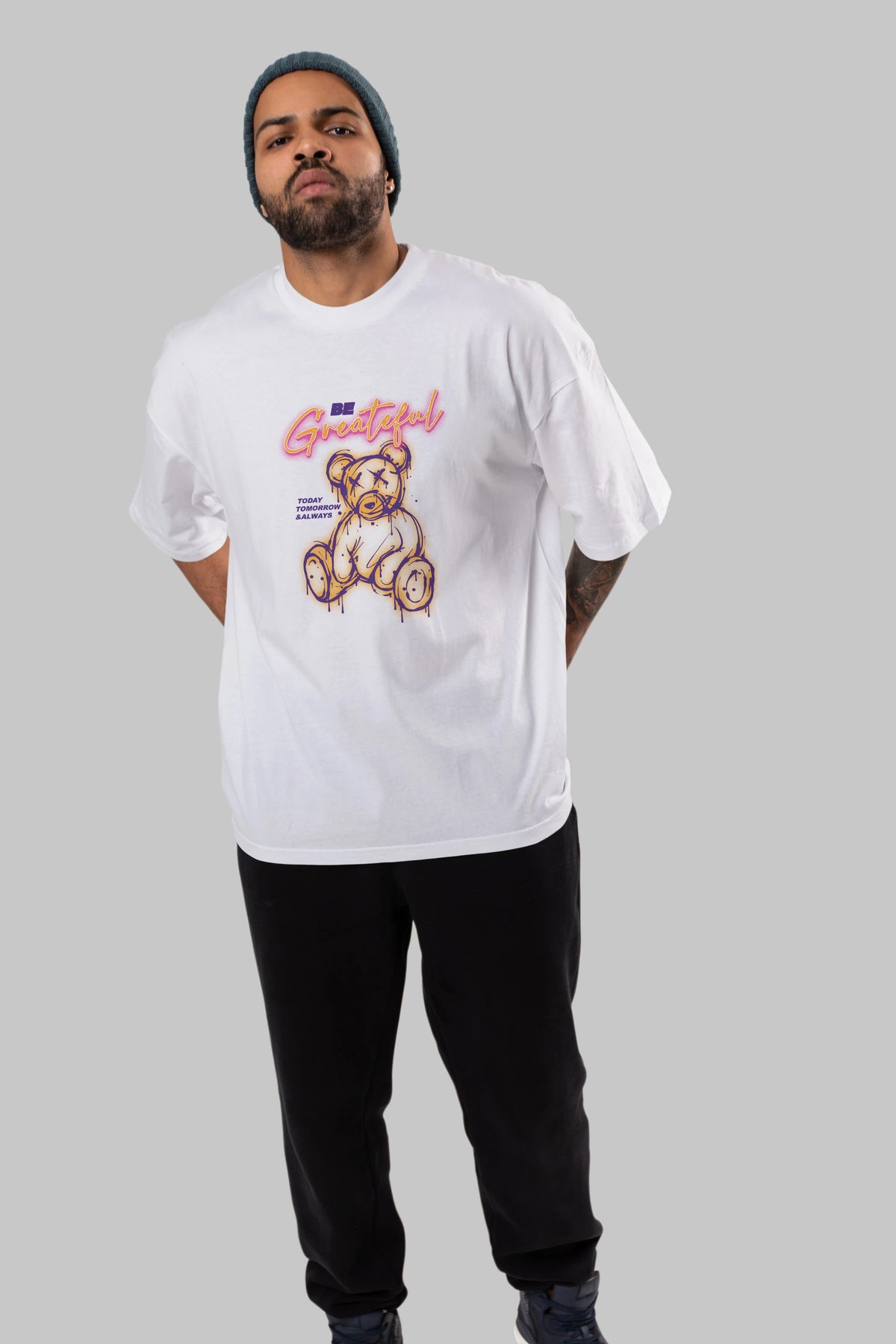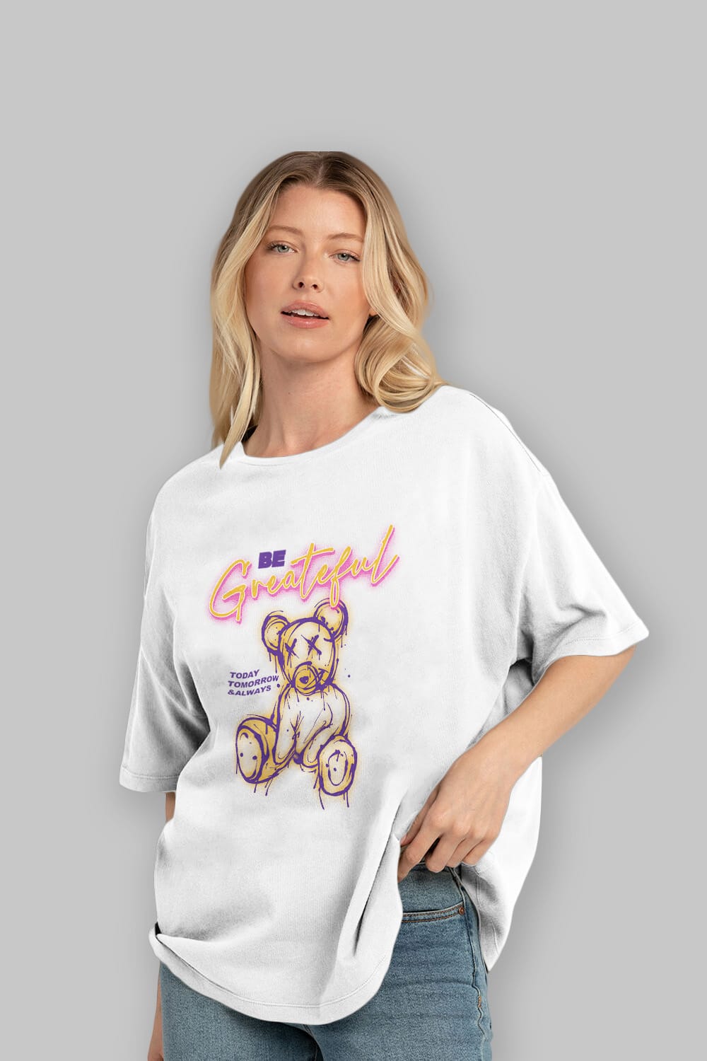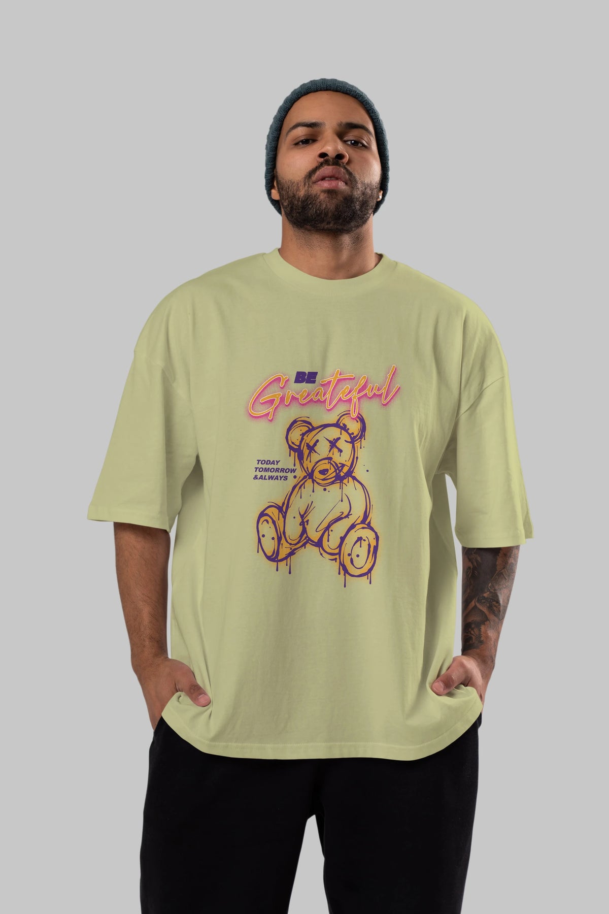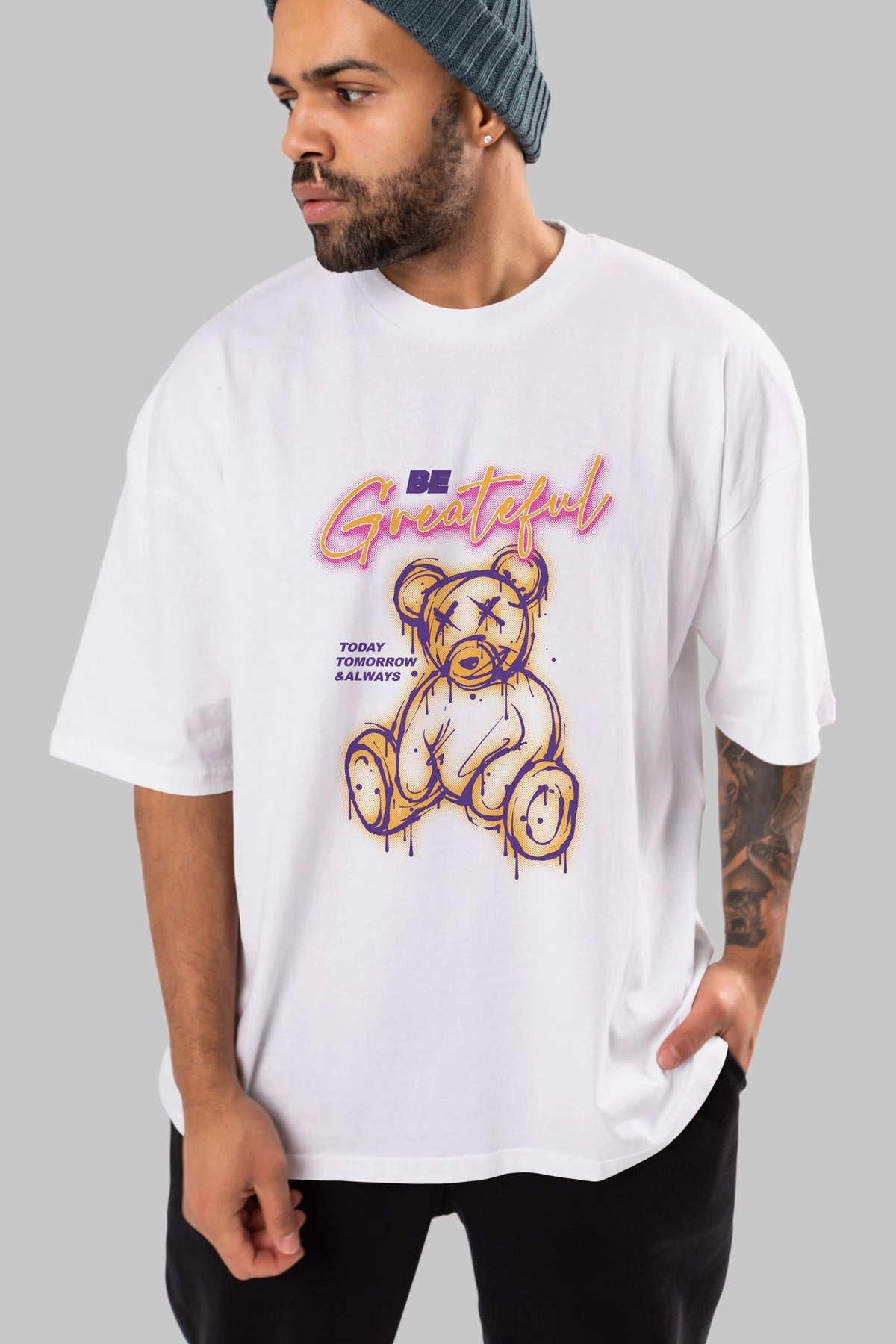 Be Greateful Bear Ön Baskılı Oversize t-shirt Erkek Kadın Unisex
