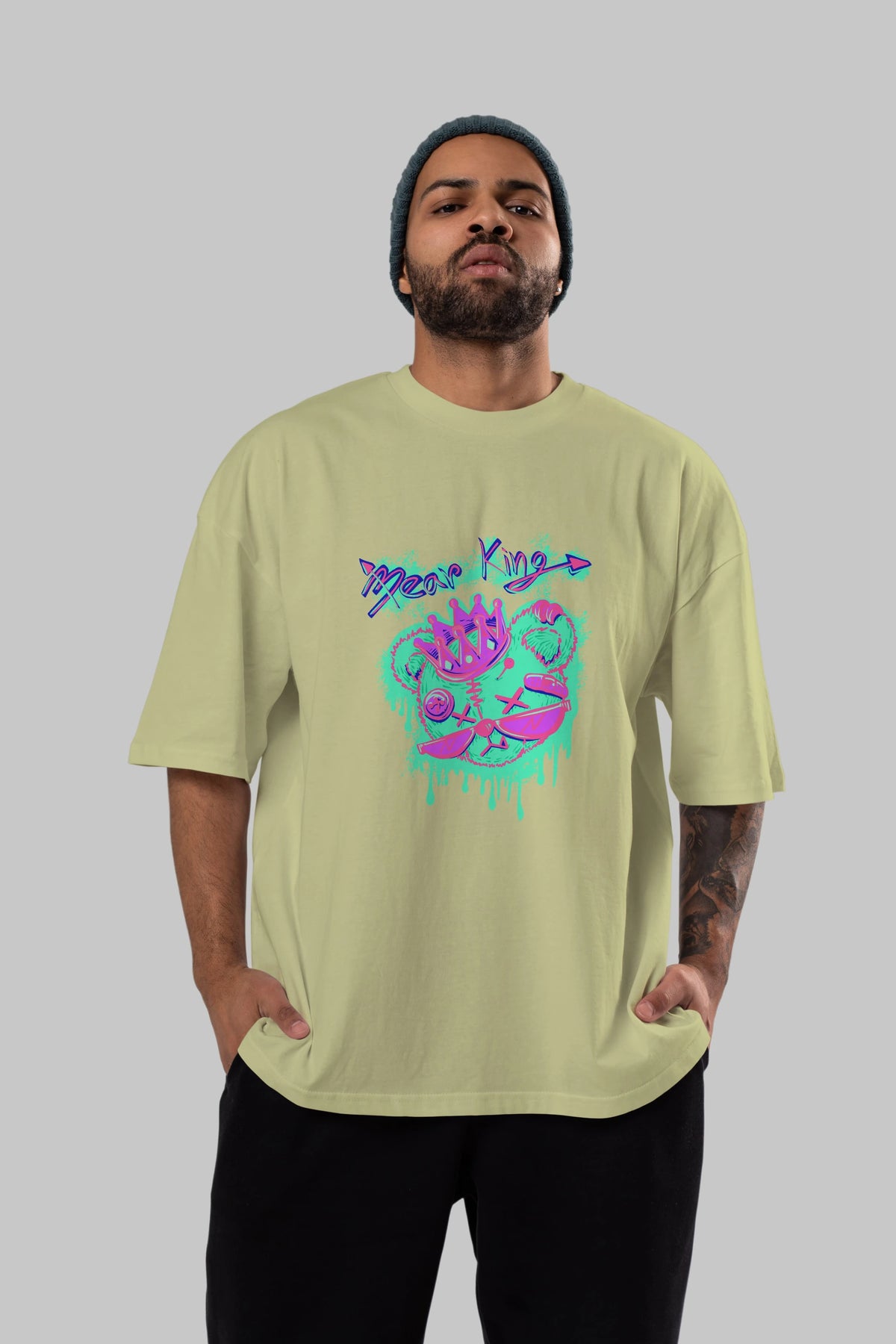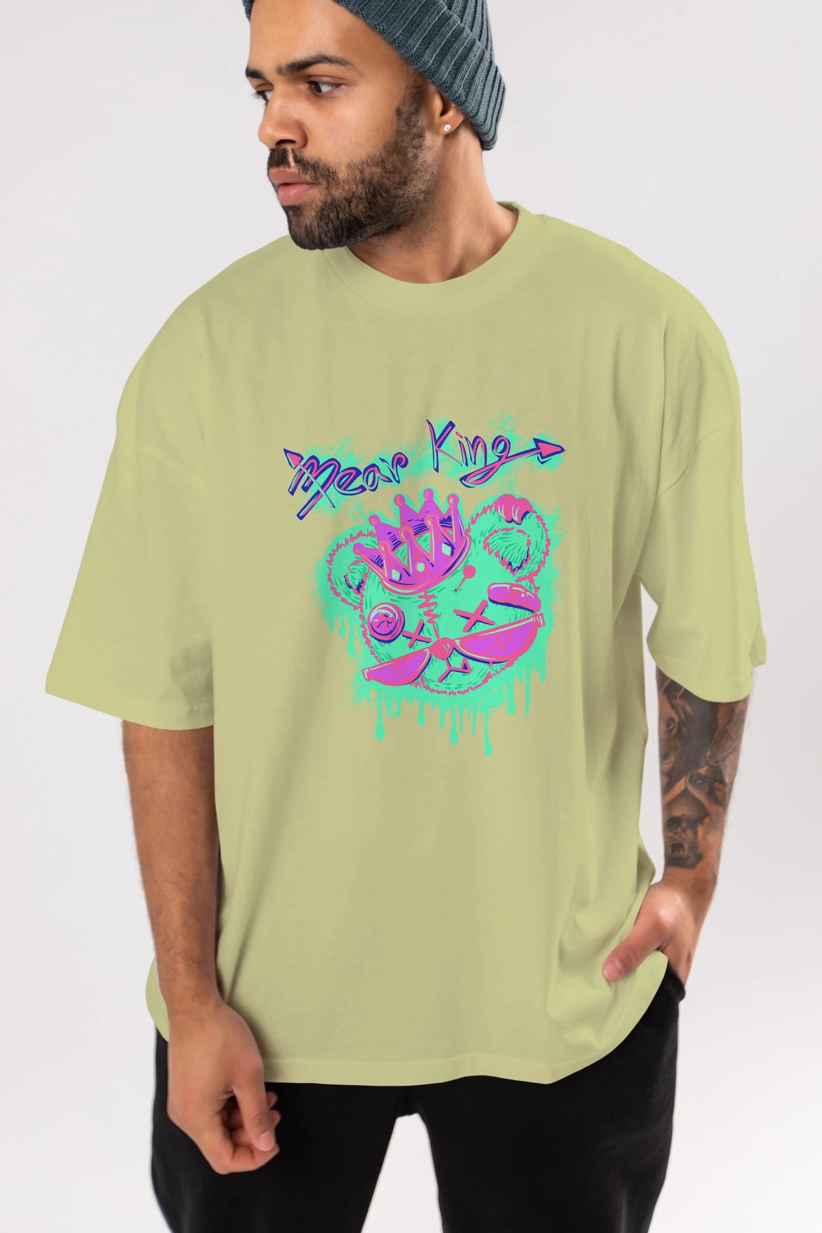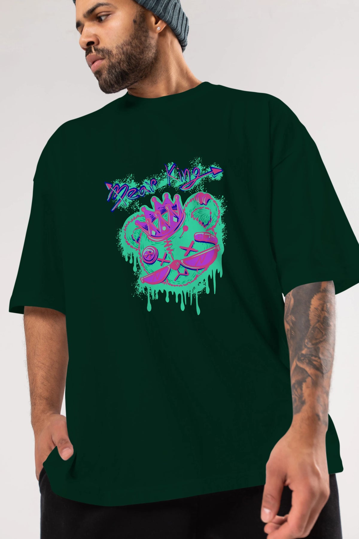 Bear King Ön Baskılı Oversize t-shirt Erkek Kadın Unisex