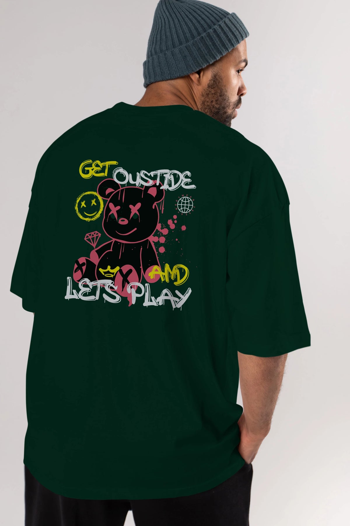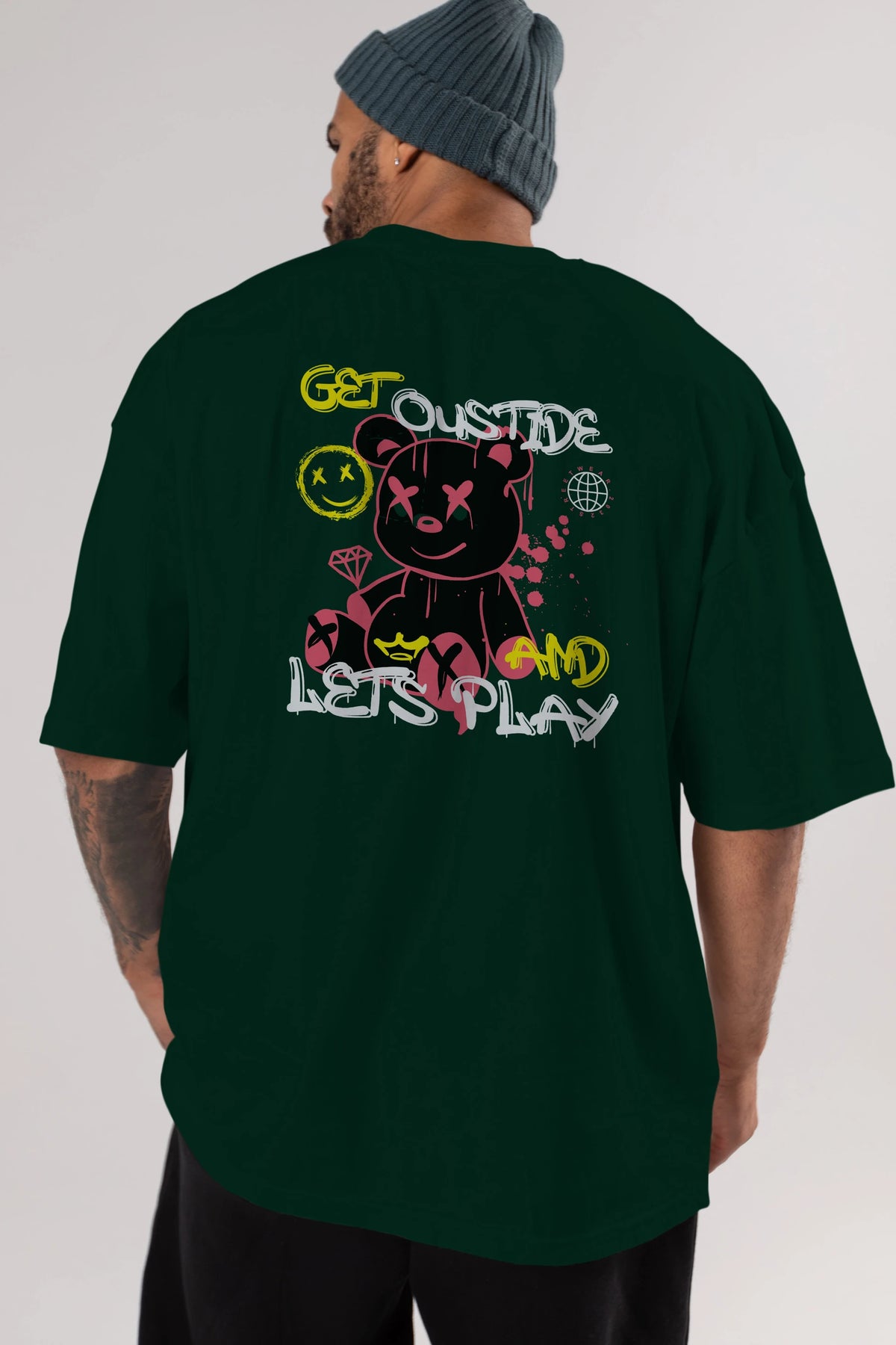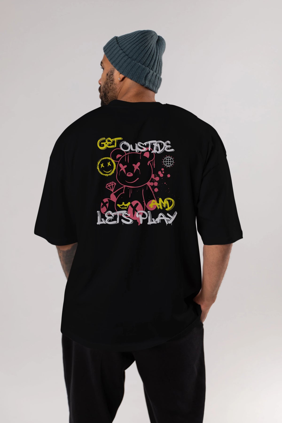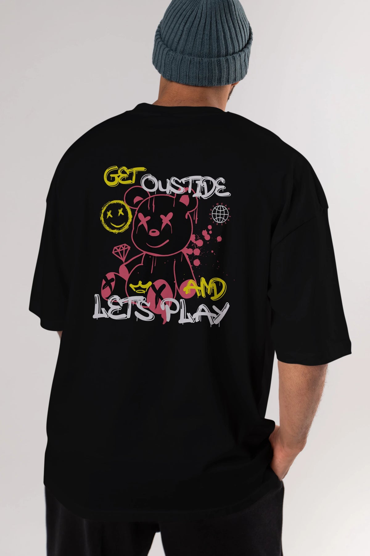 Get Outside Bear Arka Baskılı Oversize t-shirt Erkek Kadın Unisex