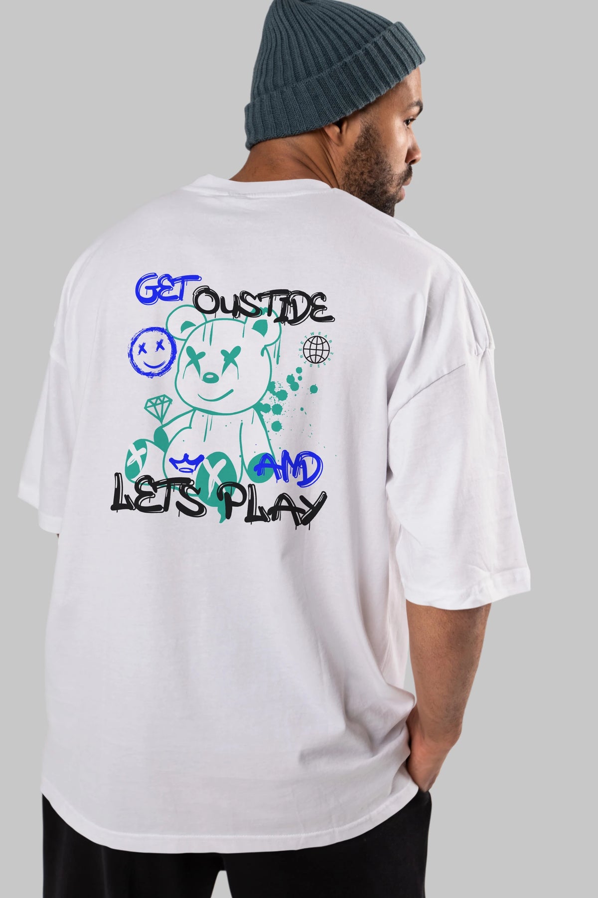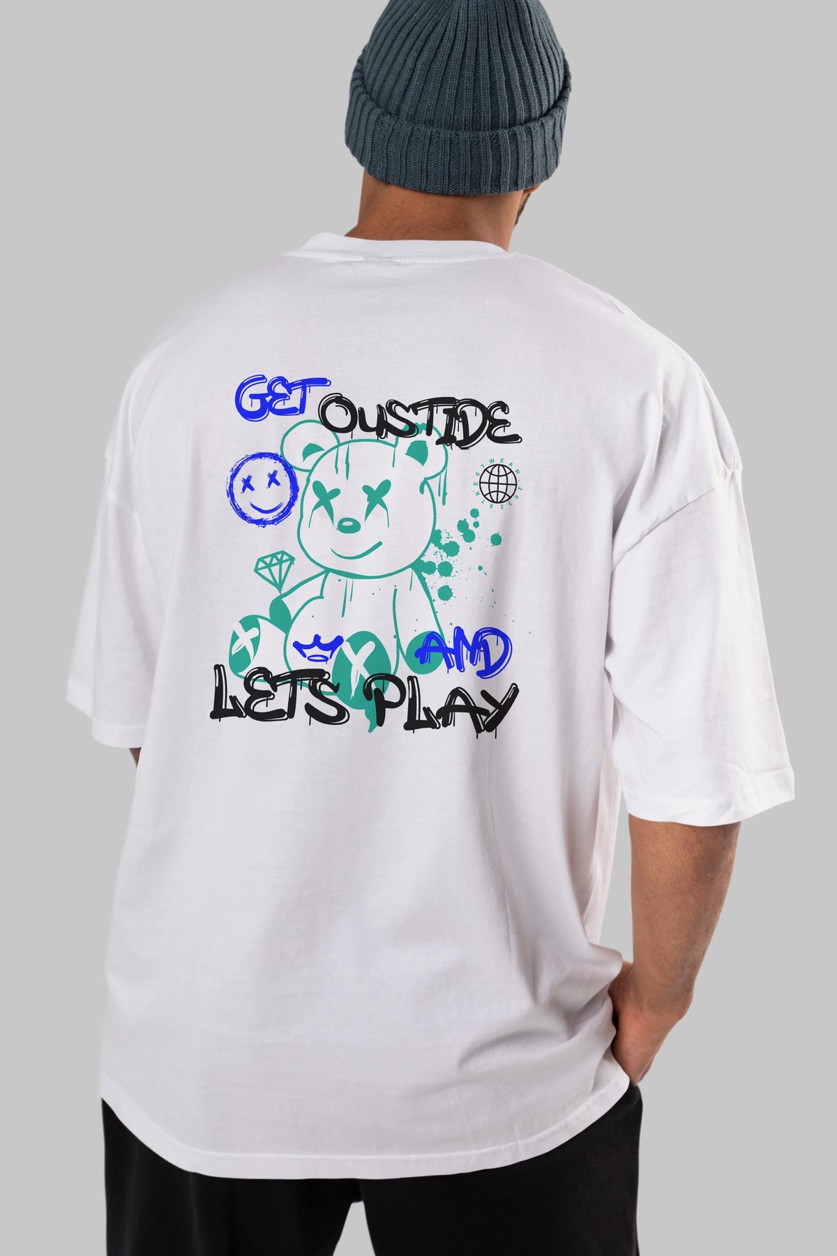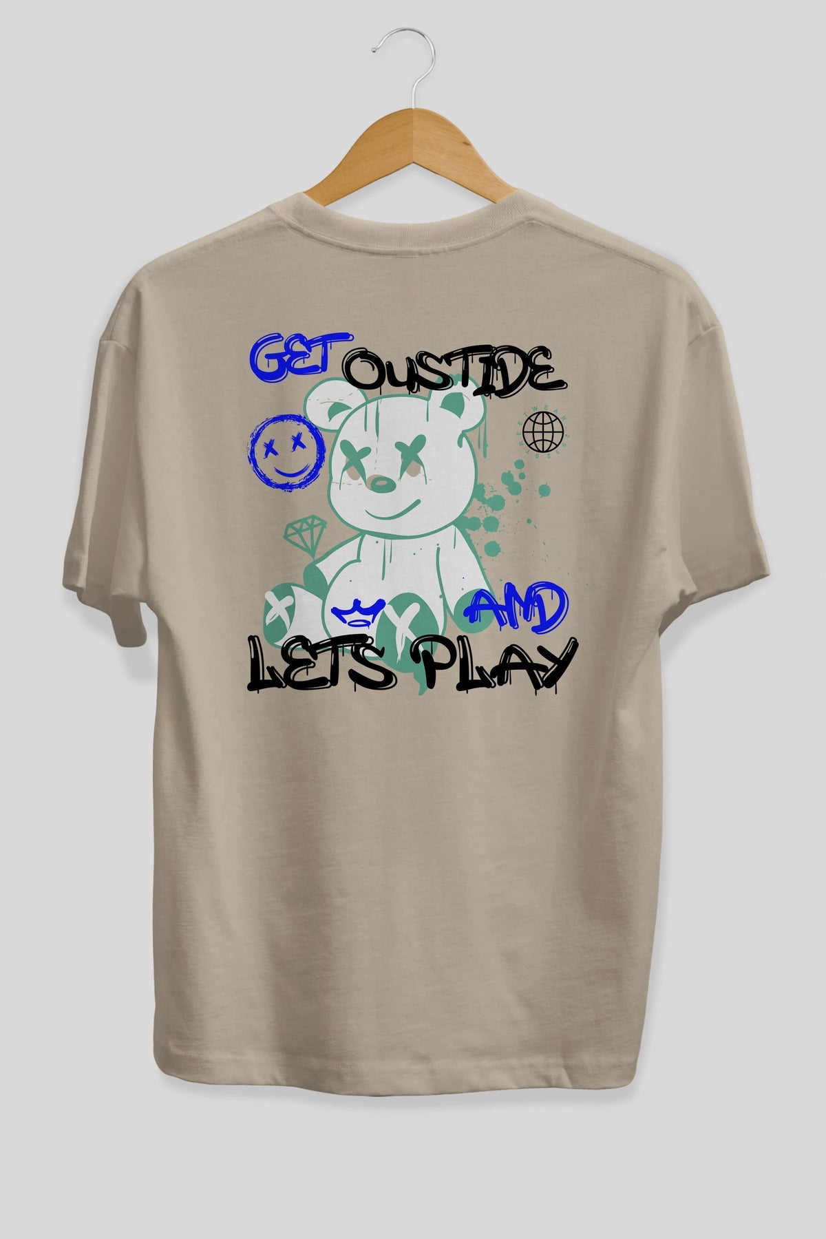 Get Outside Bear Arka Baskılı Oversize t-shirt Erkek Kadın Unisex