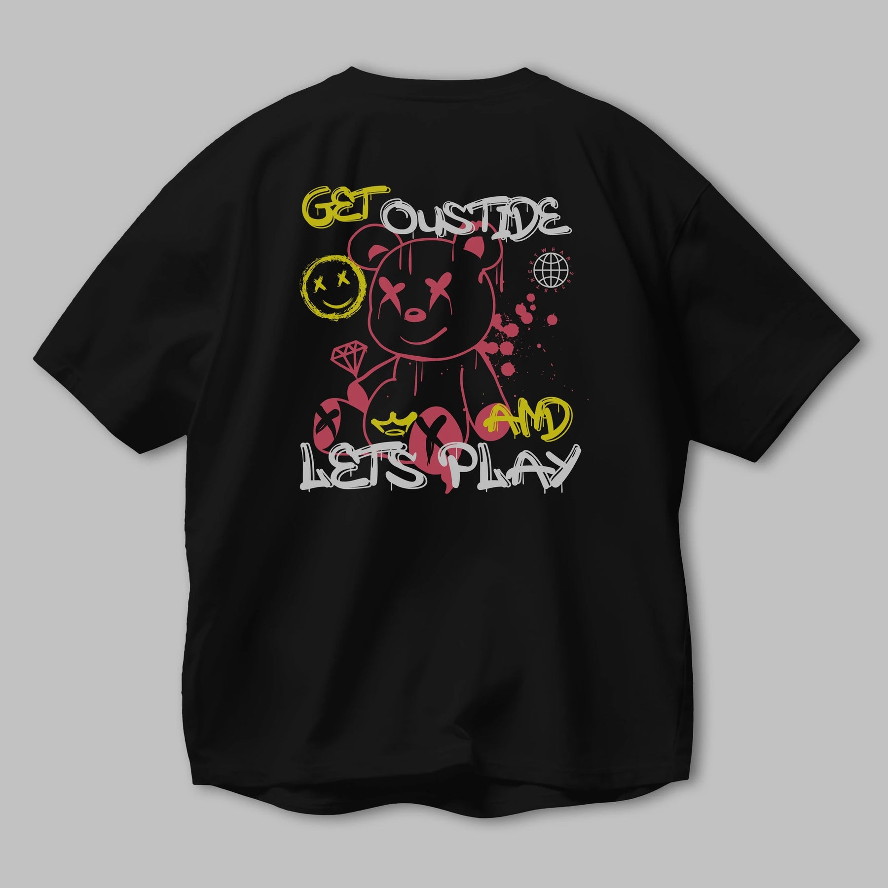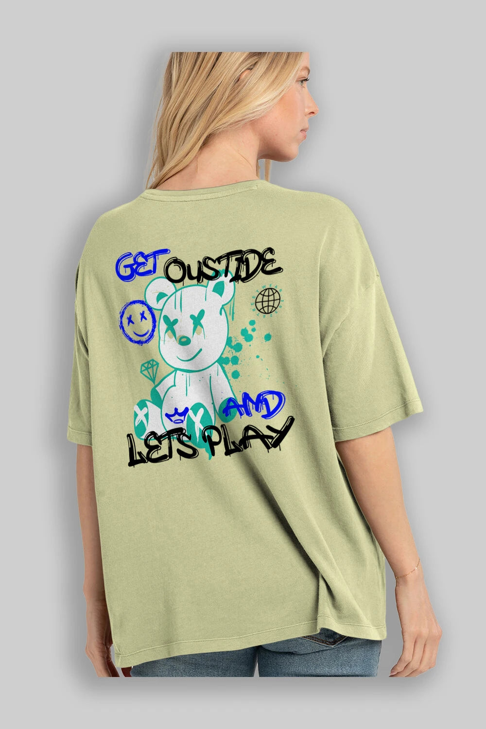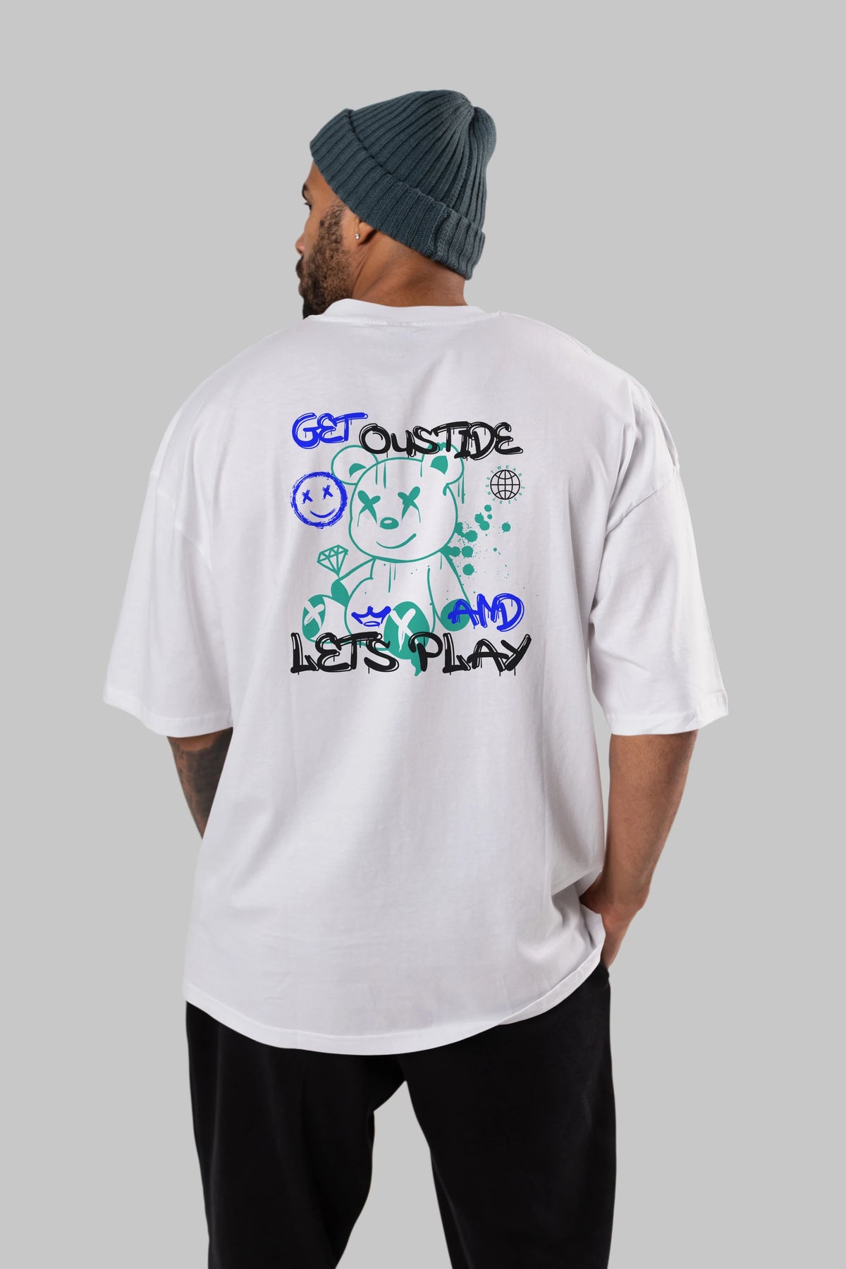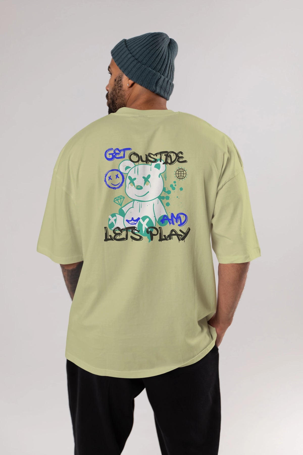 Get Outside Bear Arka Baskılı Oversize t-shirt Erkek Kadın Unisex