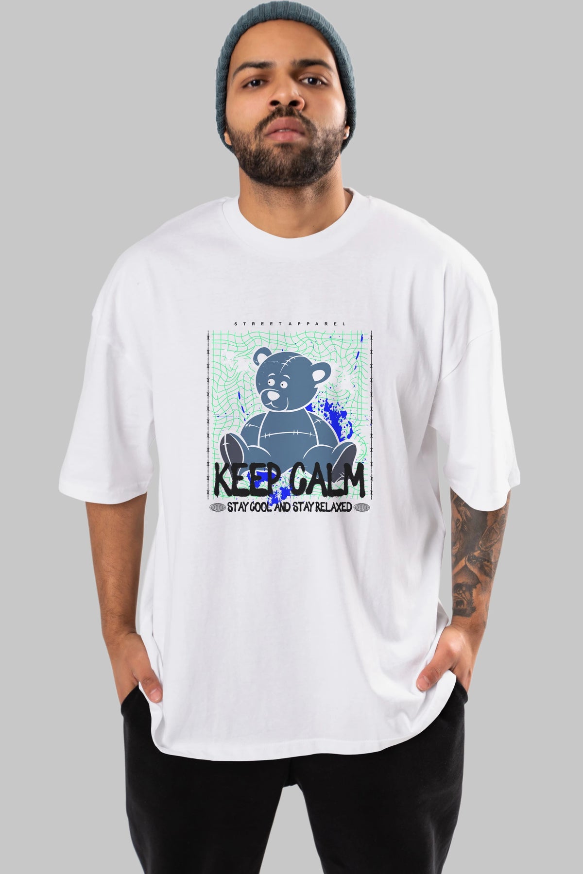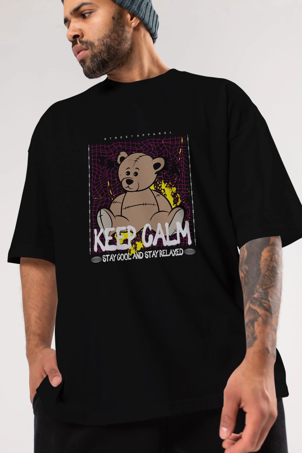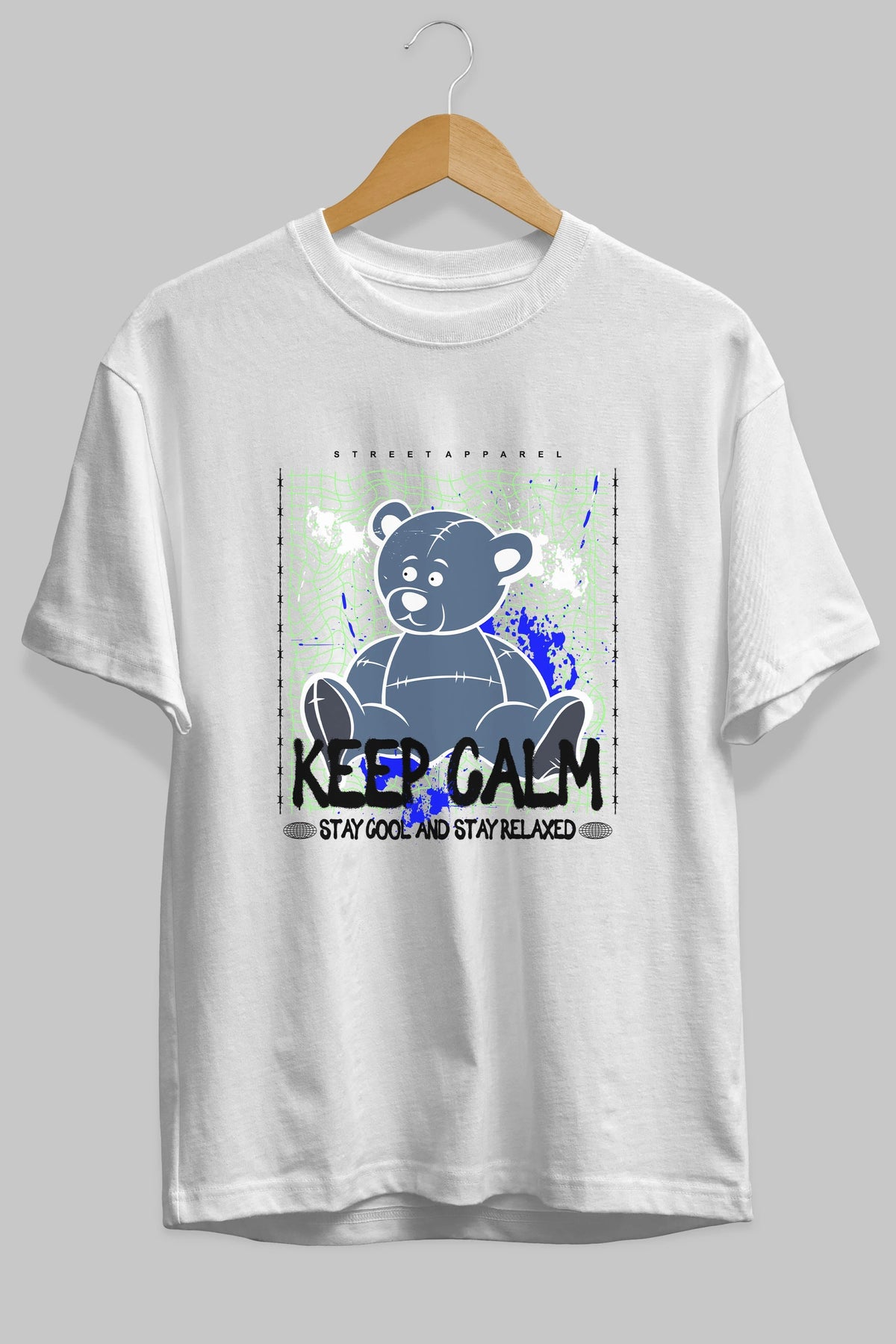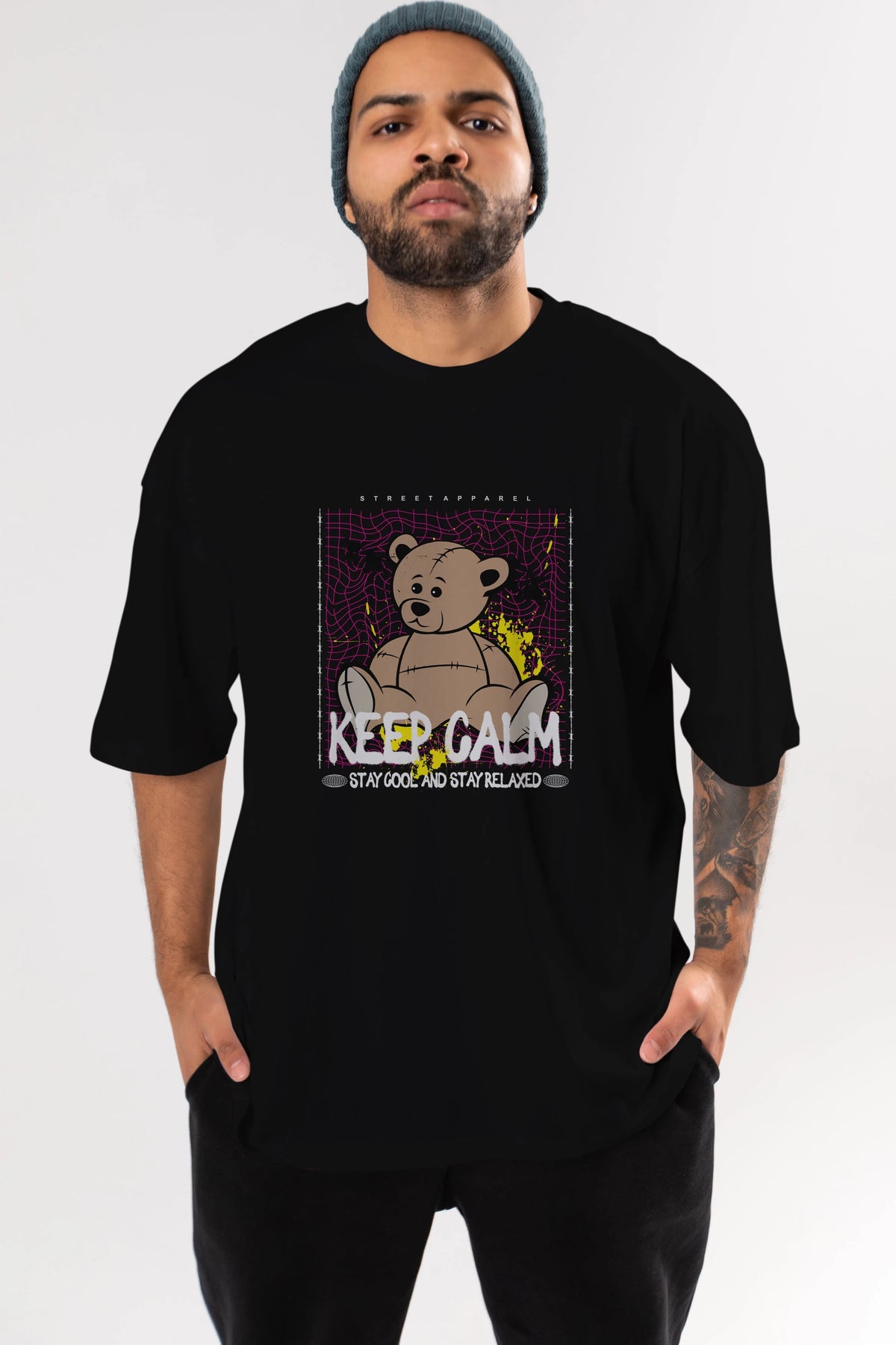 Keep Calm Bear Ön Baskılı Oversize t-shirt Erkek Kadın Unisex