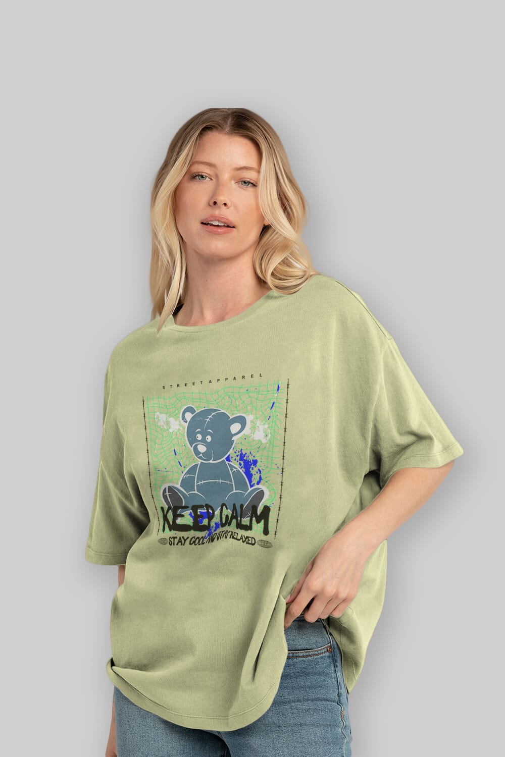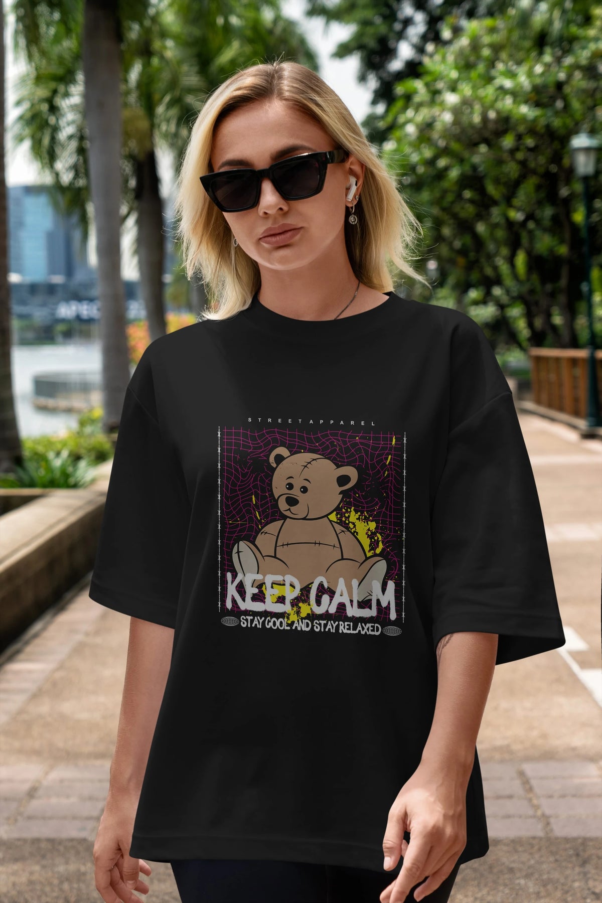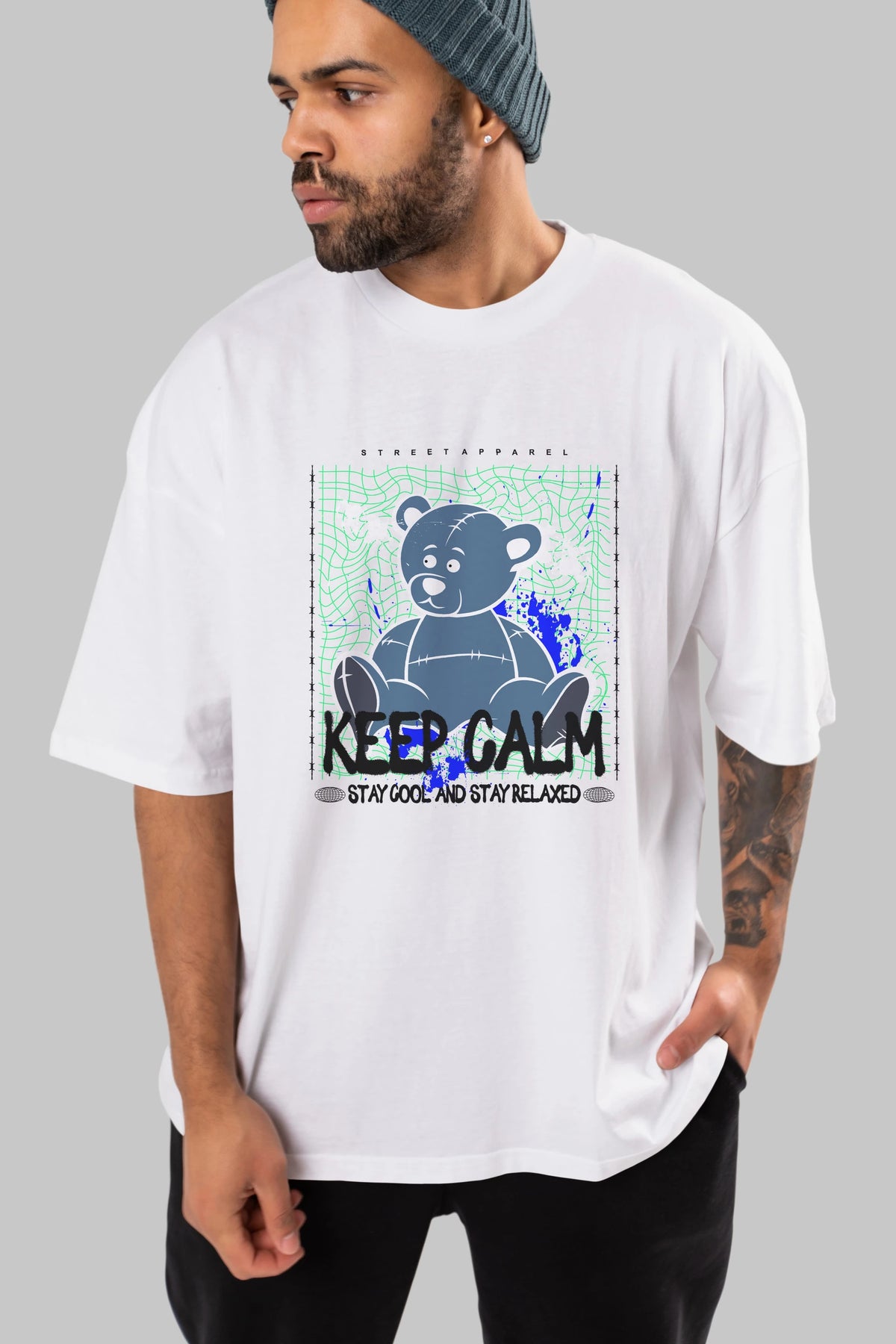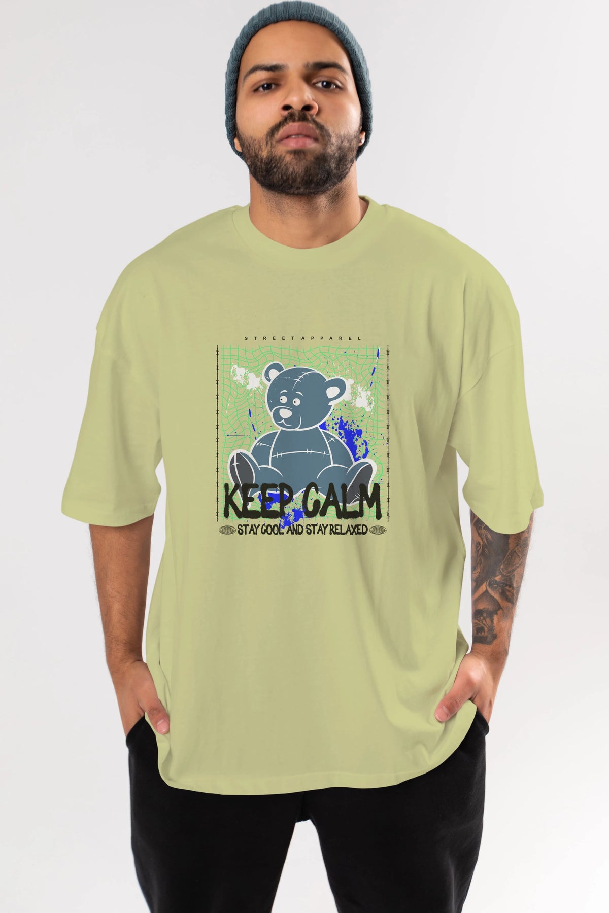 Keep Calm Bear Ön Baskılı Oversize t-shirt Erkek Kadın Unisex