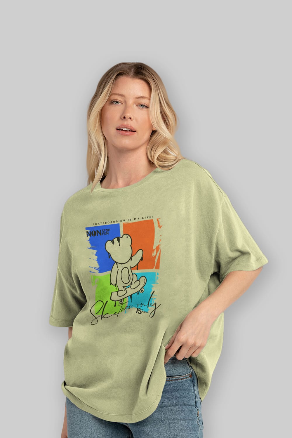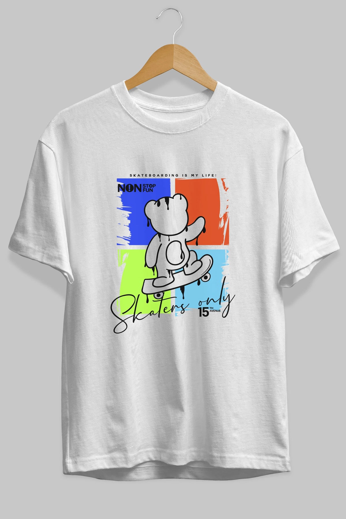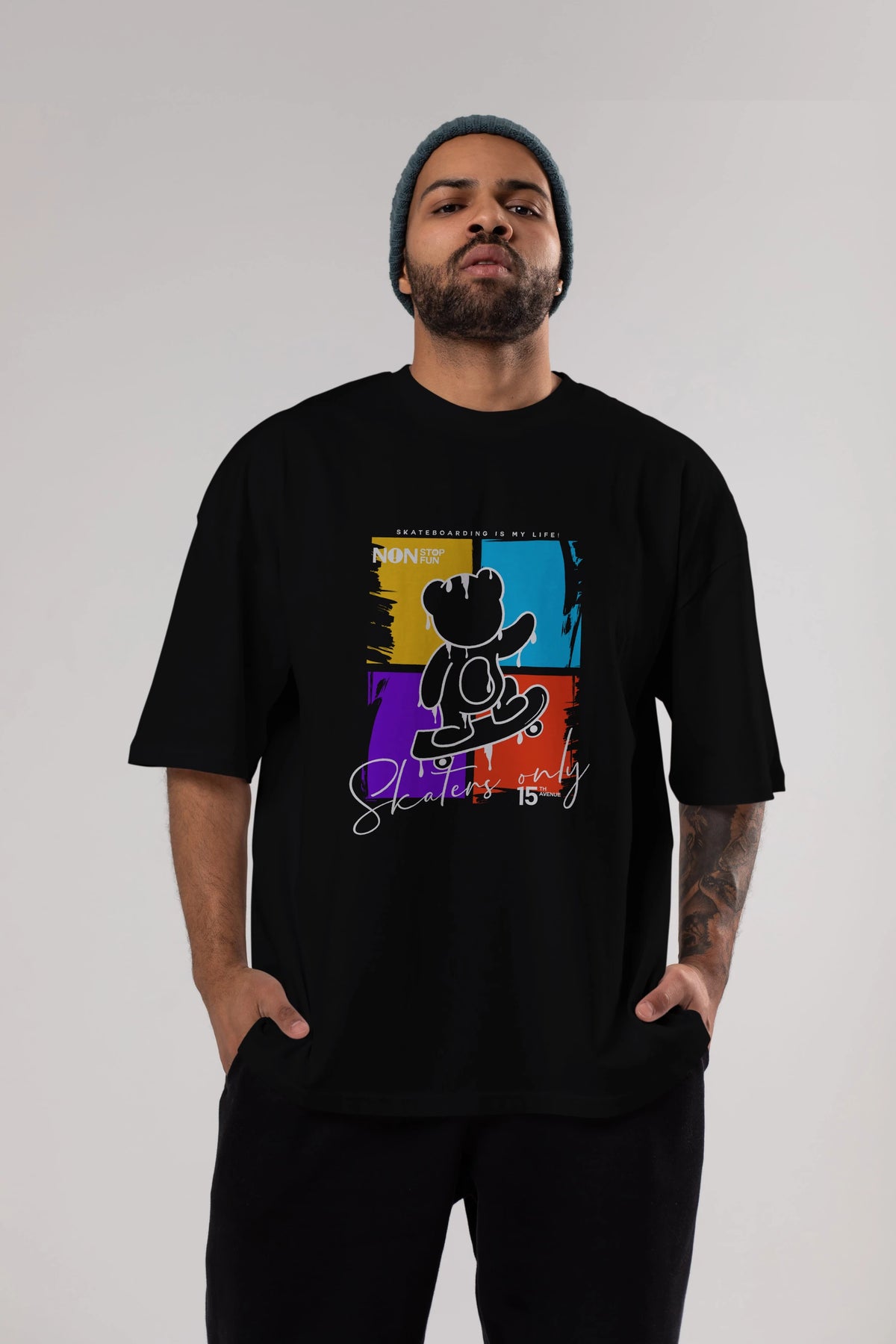 Skaters Only Bear Ön Baskılı Oversize t-shirt Erkek Kadın Unisex