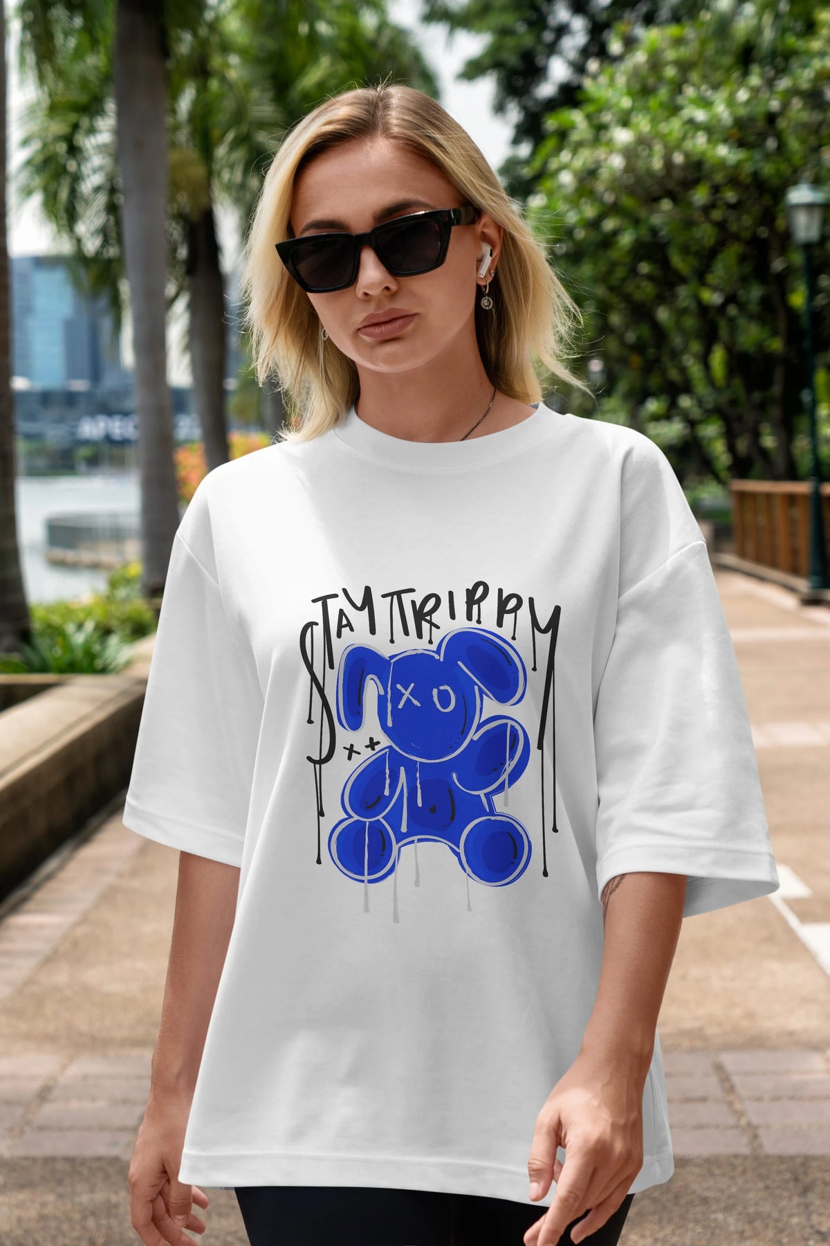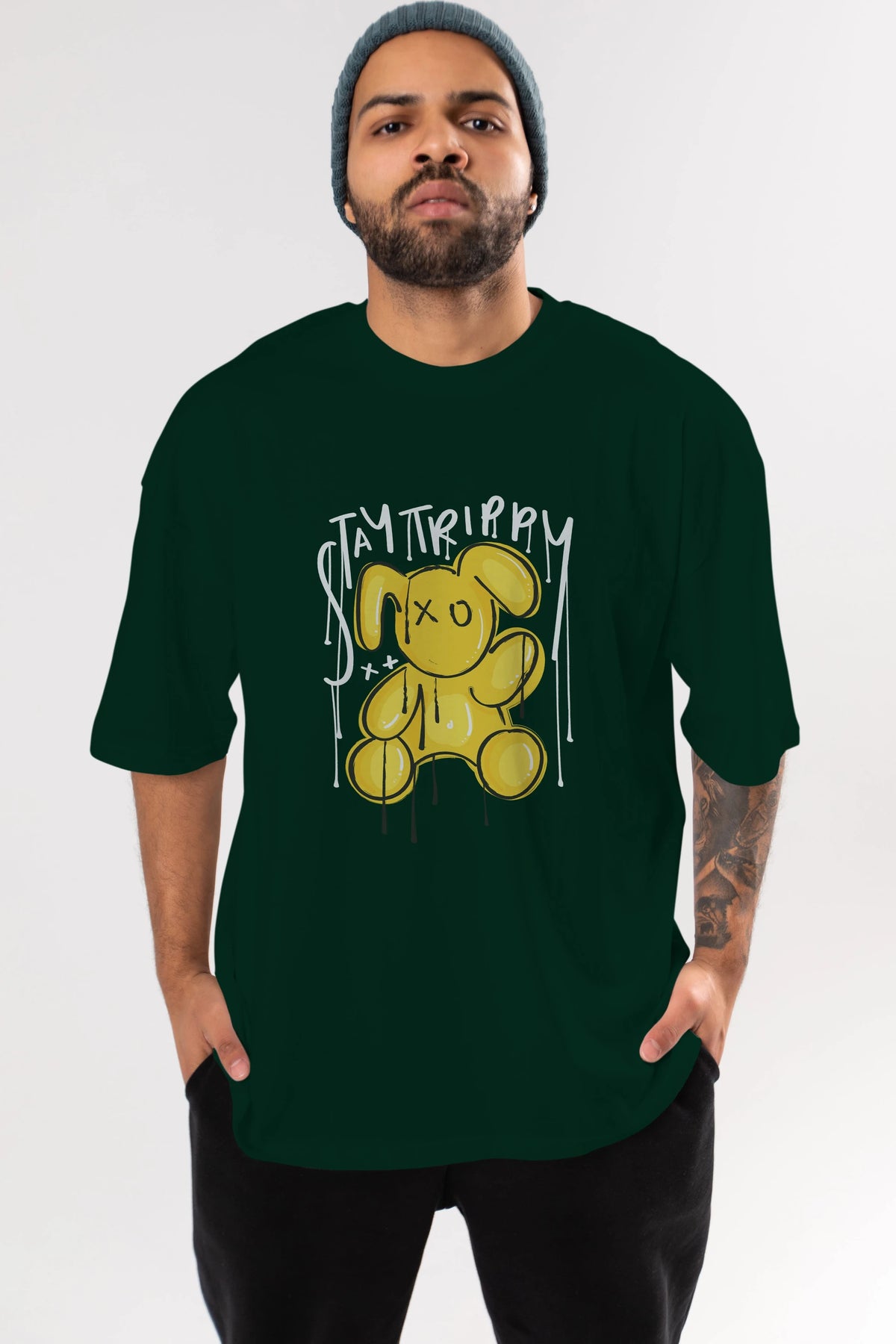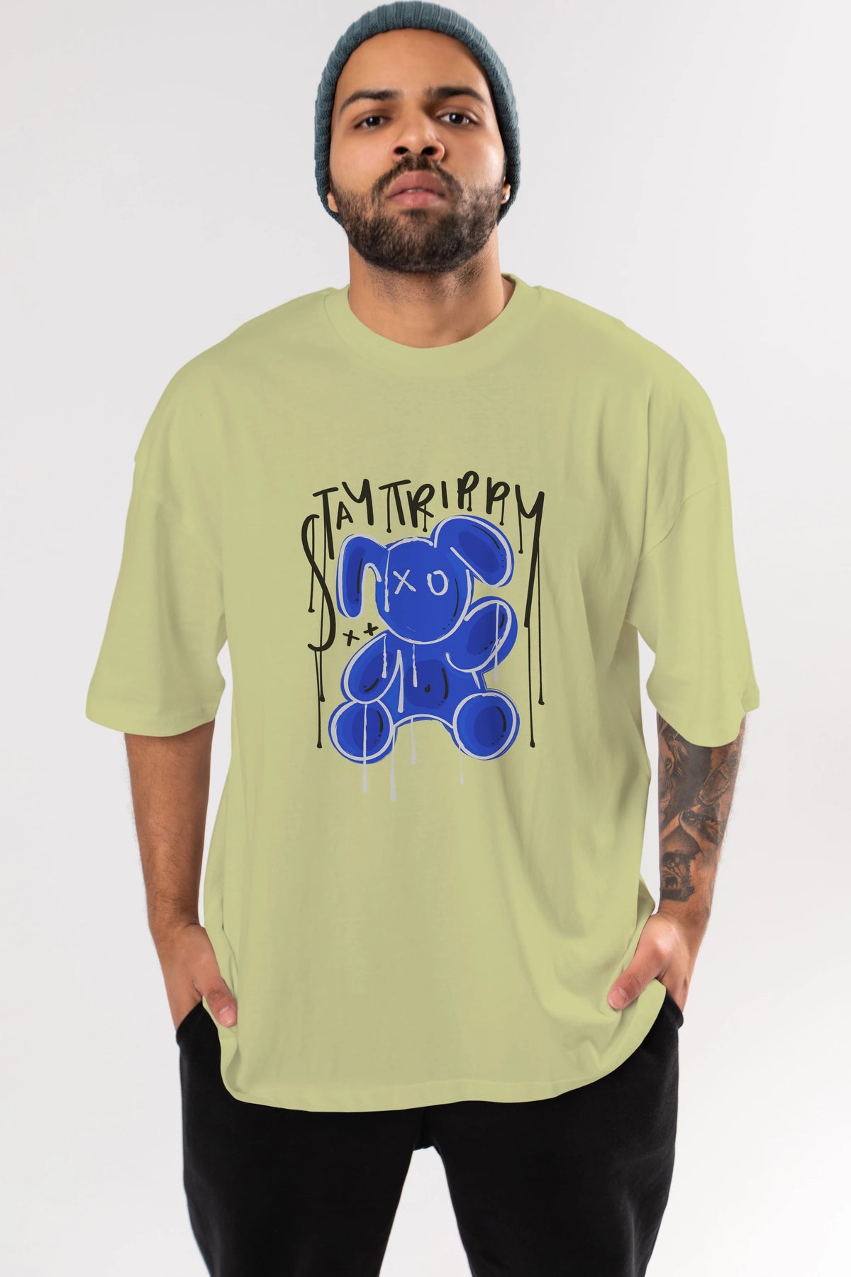 Stay Trippy Bear Ön Baskılı Oversize t-shirt Erkek Kadın Unisex