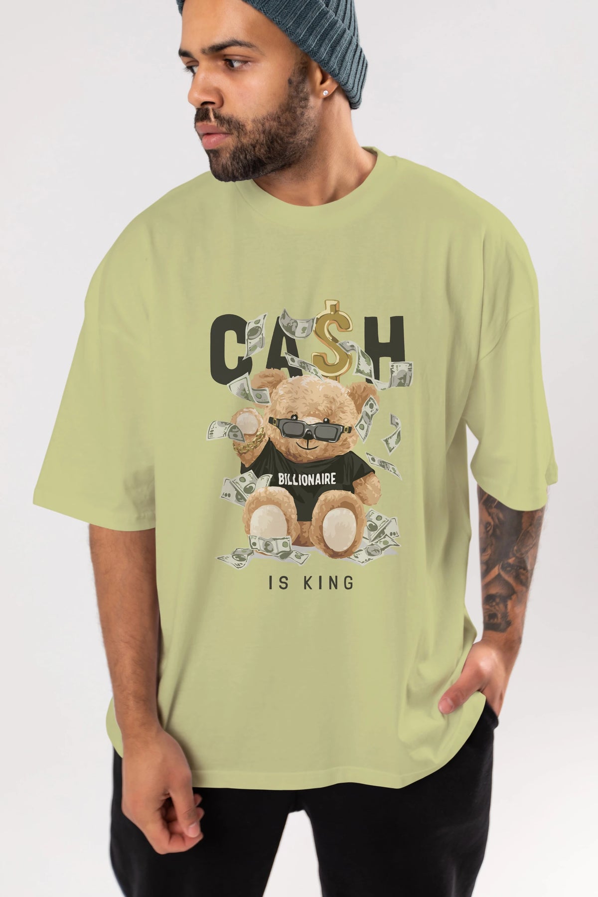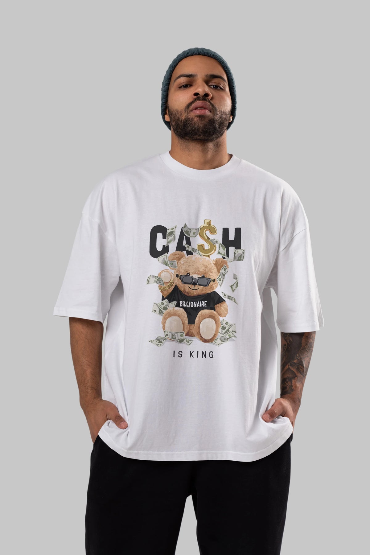 Teddy Bear Billionaire Ön Baskılı Oversize t-shirt Erkek Kadın Unisex %100 Pamuk