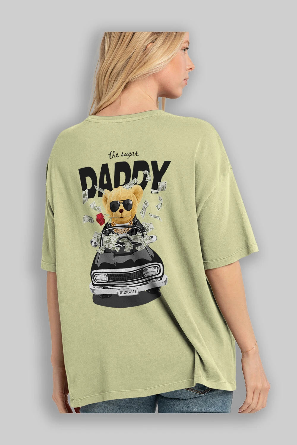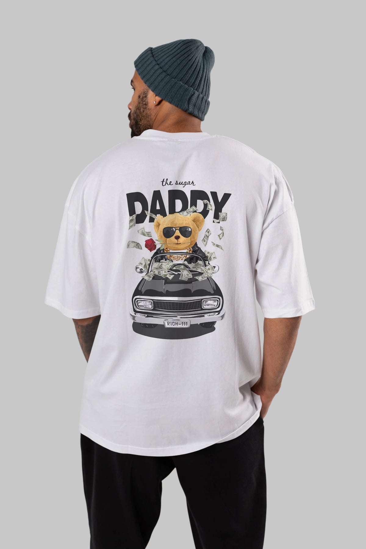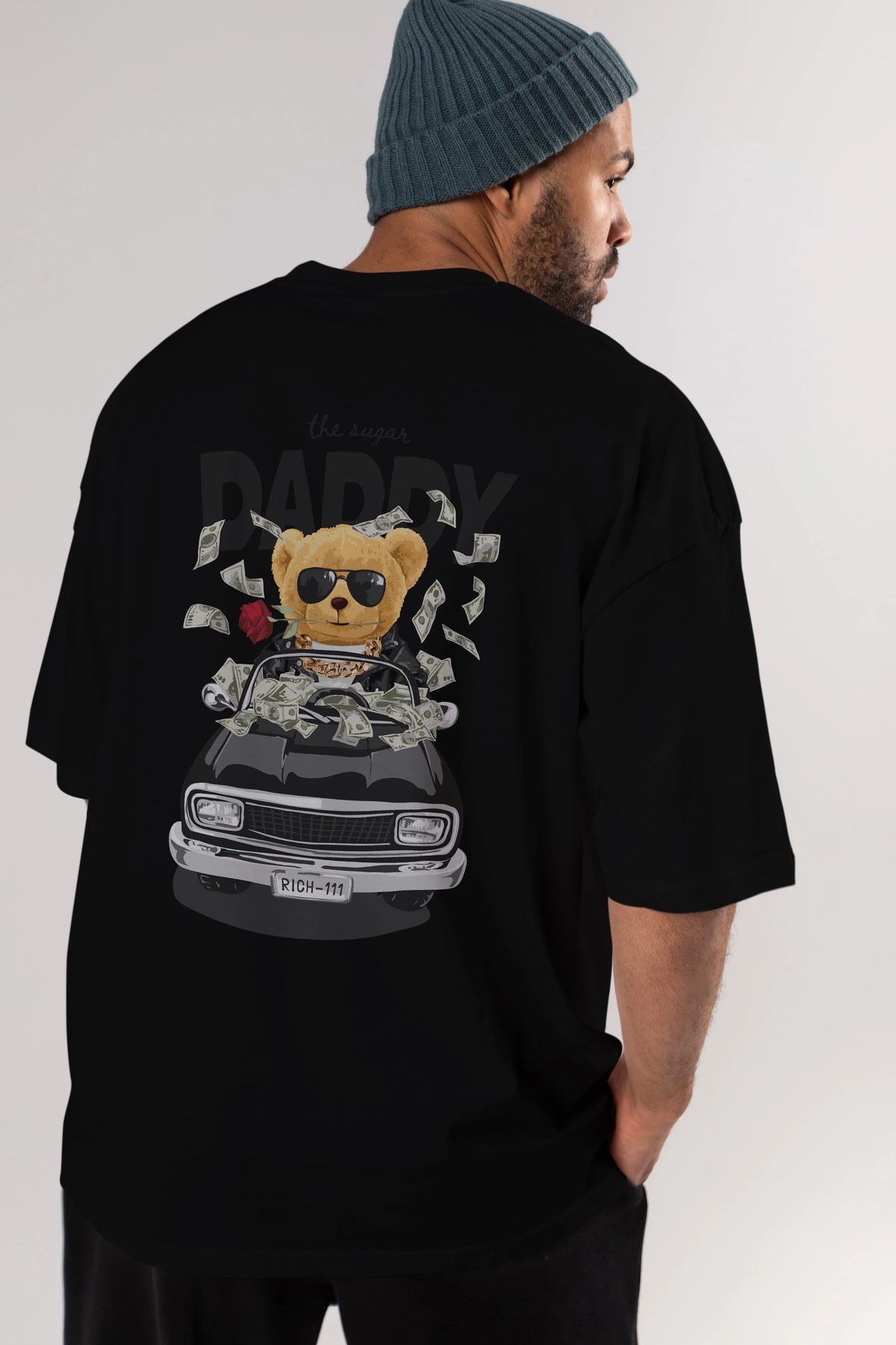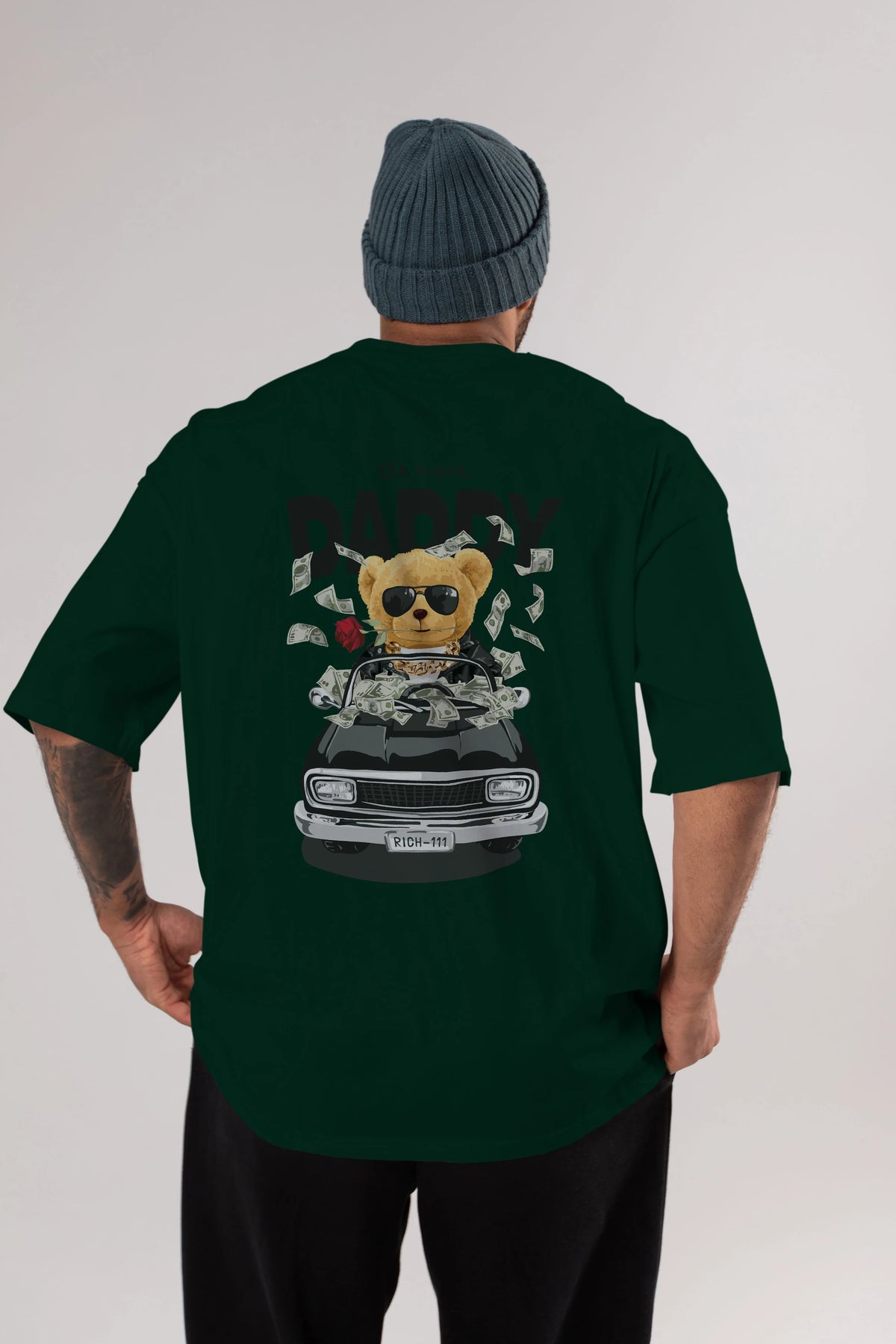 Teddy Bear Daddy Arka Baskılı Oversize t-shirt Erkek Kadın Unisex %100 Pamuk