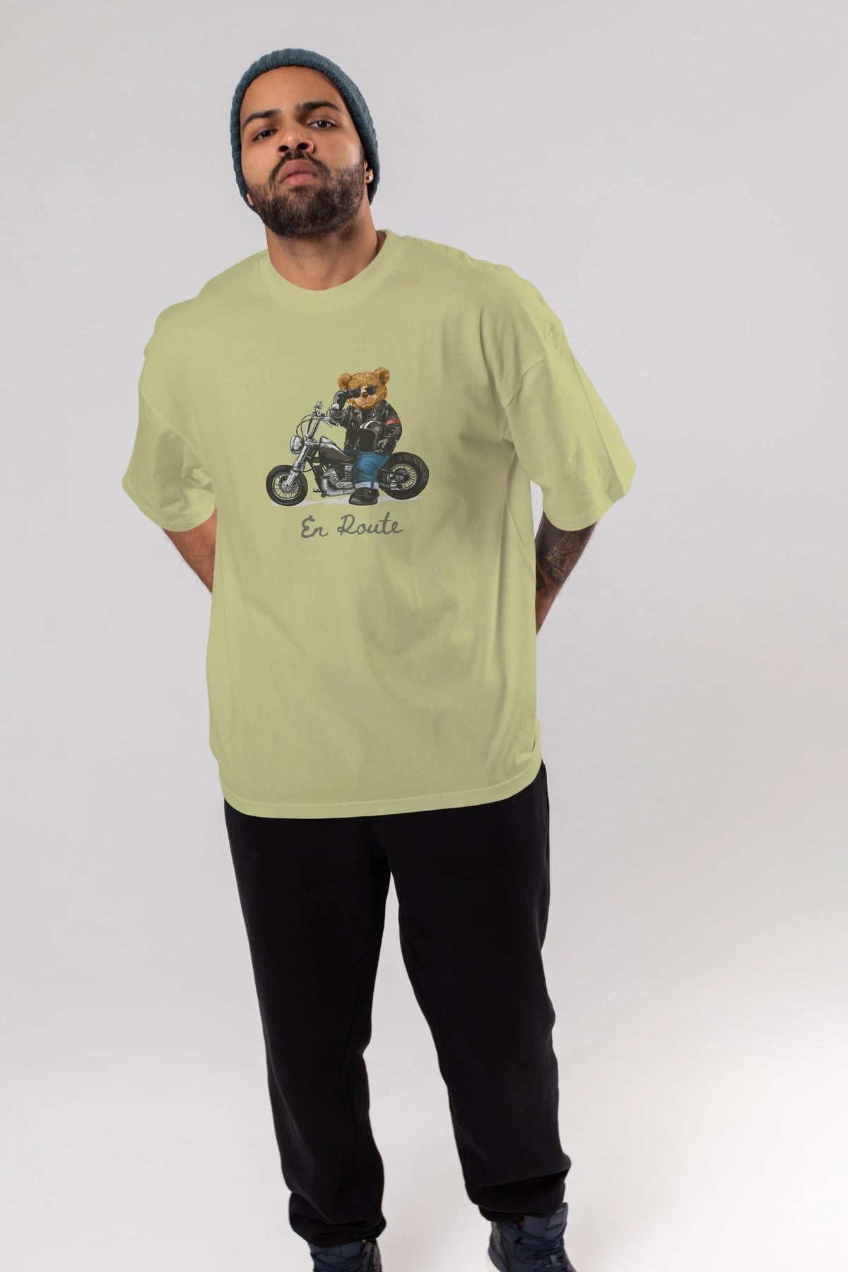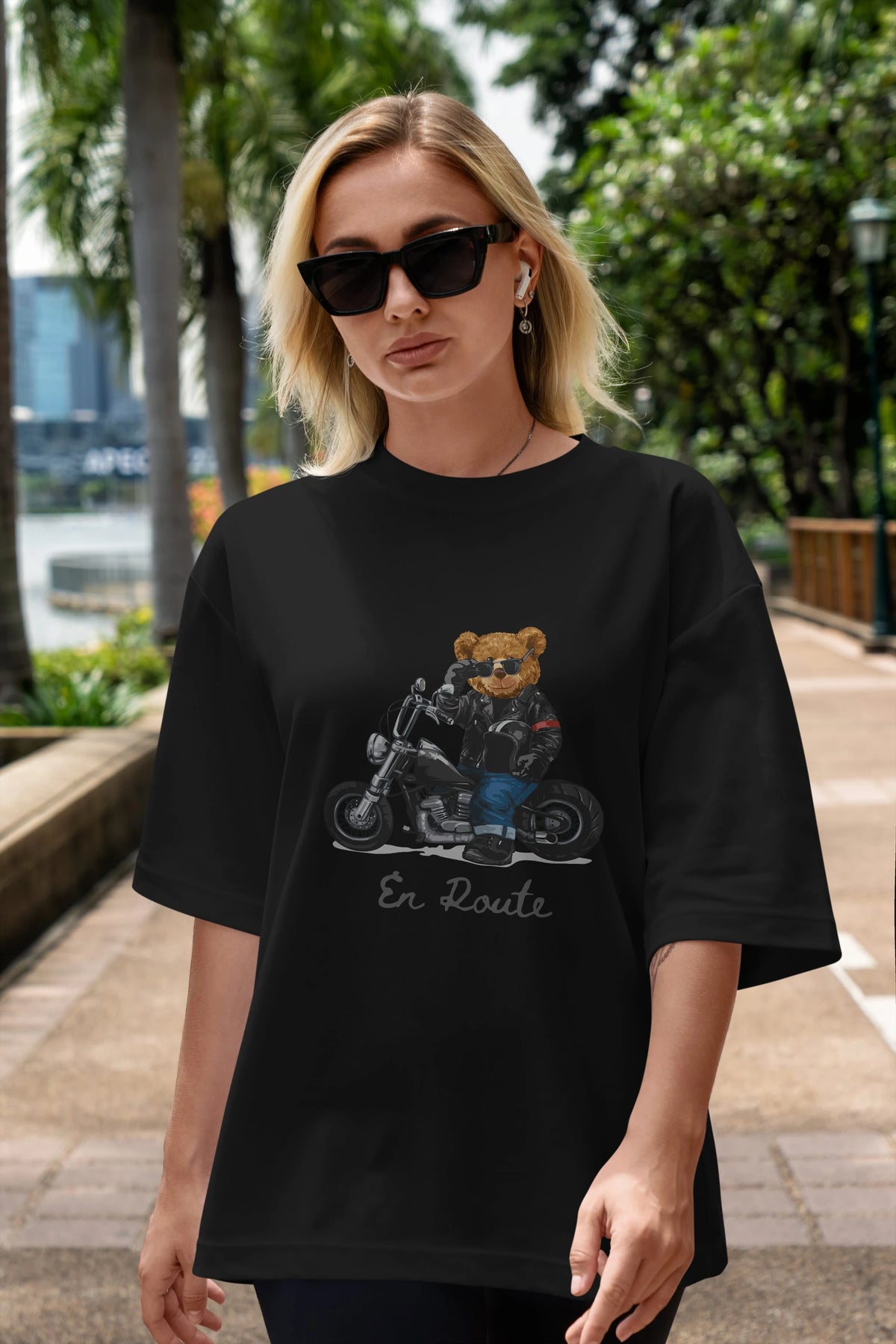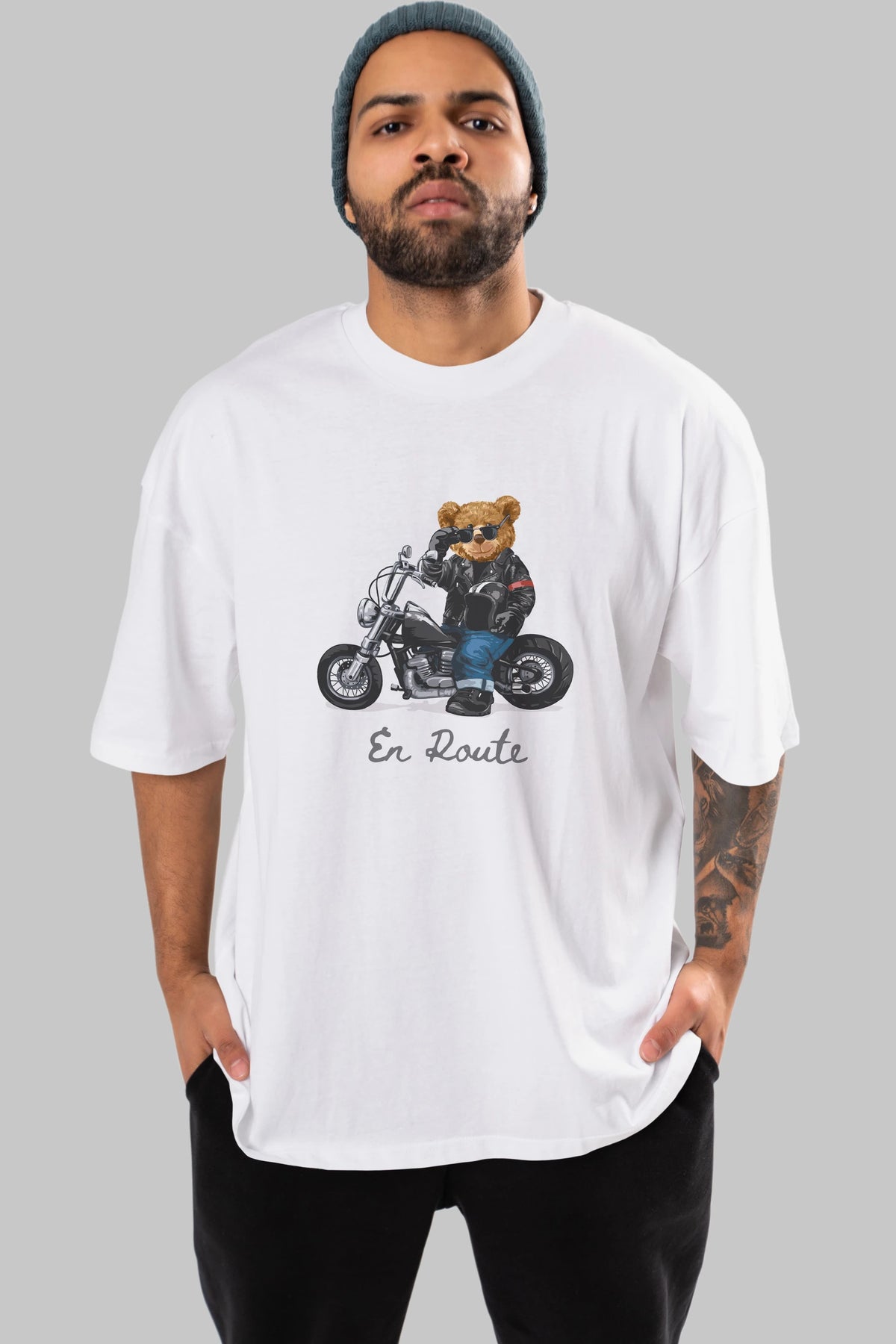 Teddy Bear En Route Ön Baskılı Oversize t-shirt Erkek Kadın Unisex %100 Pamuk